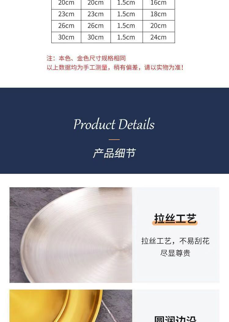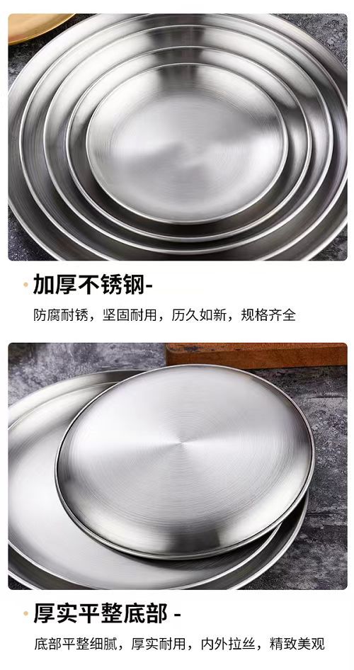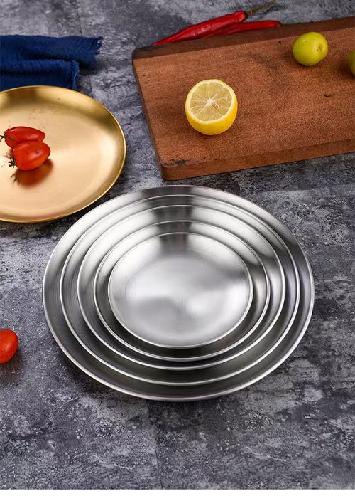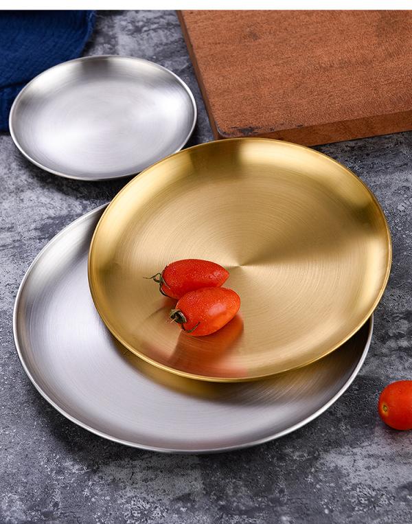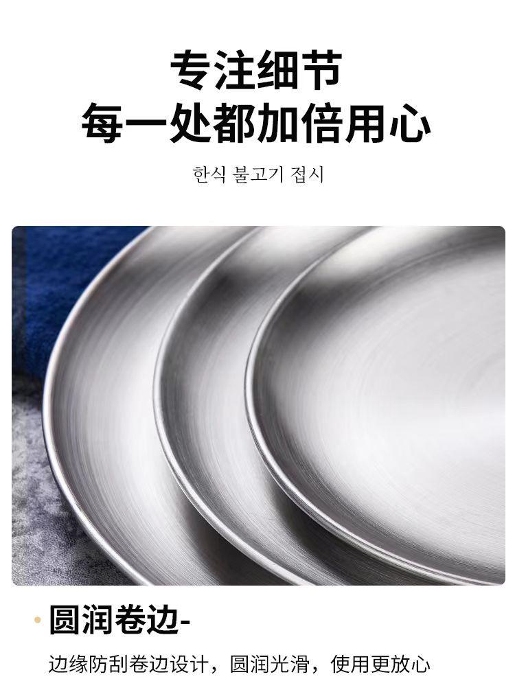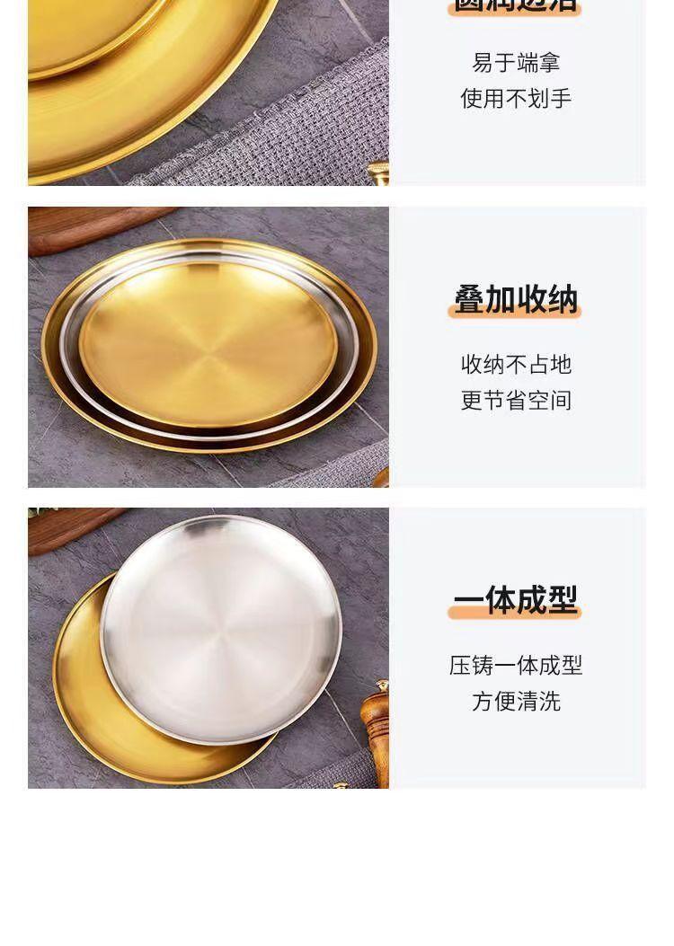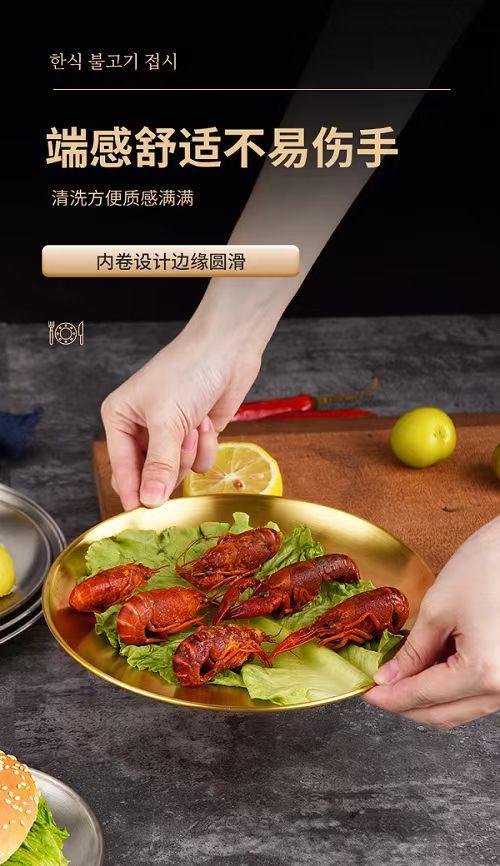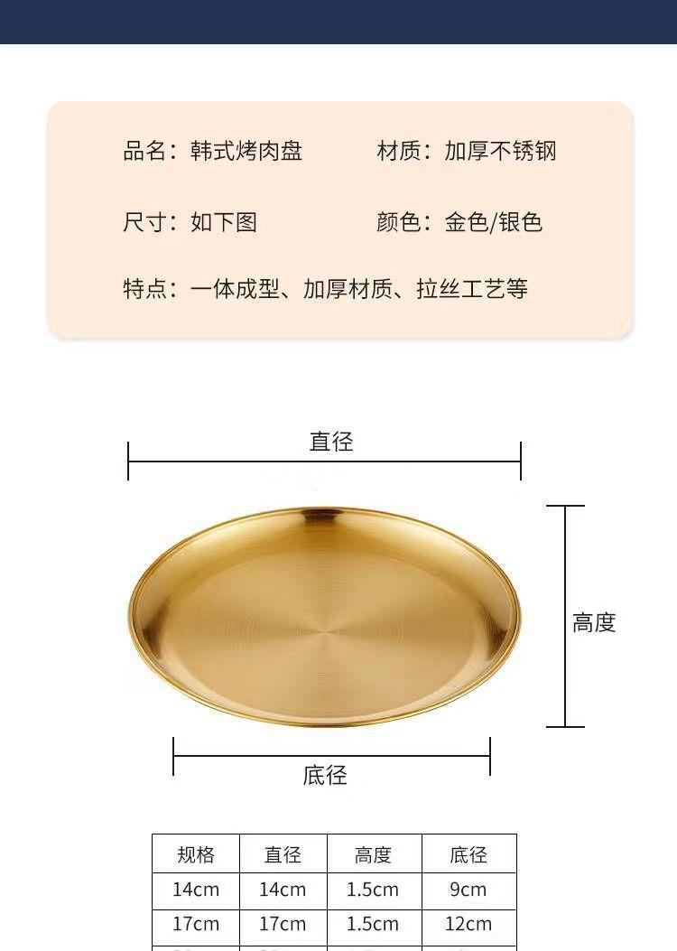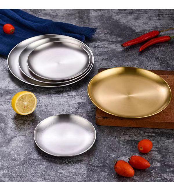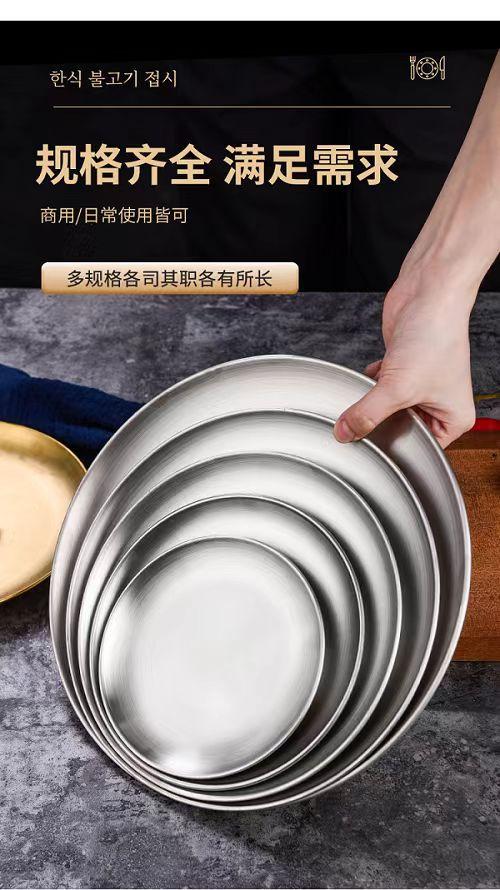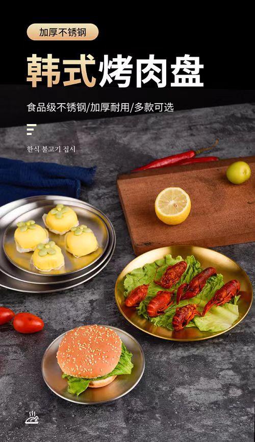 Plato de barbacoa de estilo coreano con disco de acero inoxidable 304 engrosado, plato redondo dorado para hotel, plato para barbacoa, plato para escupir huesos