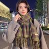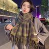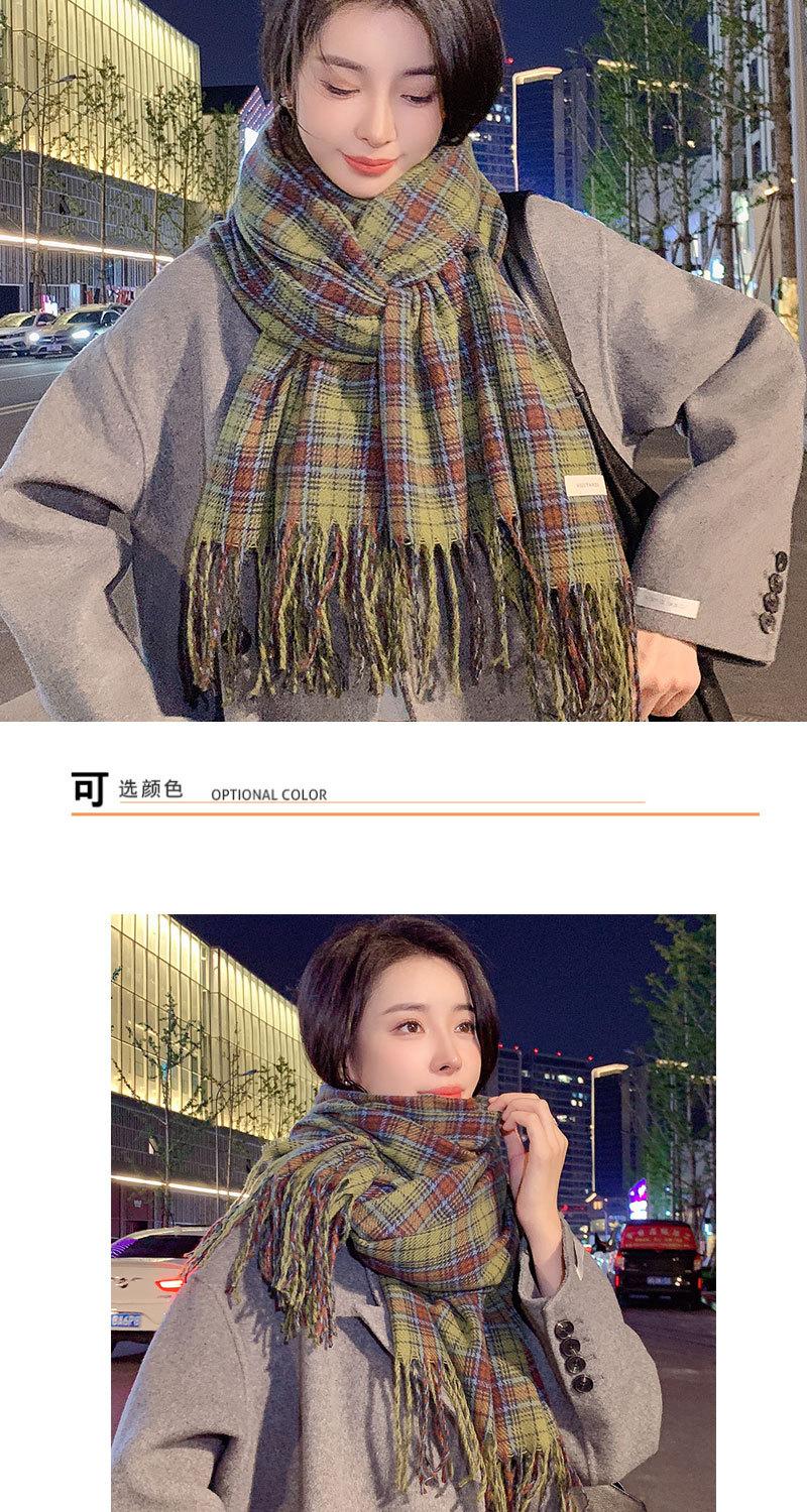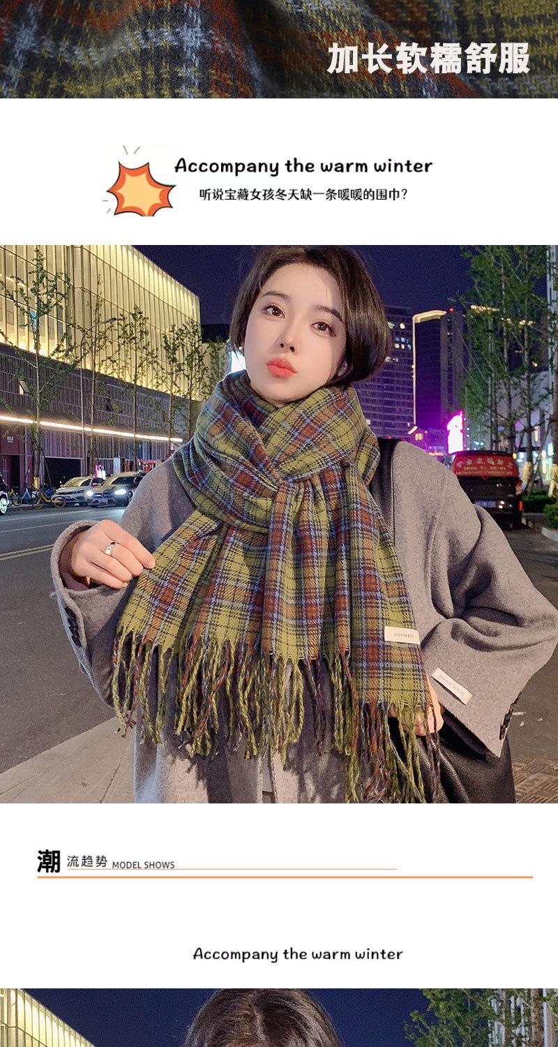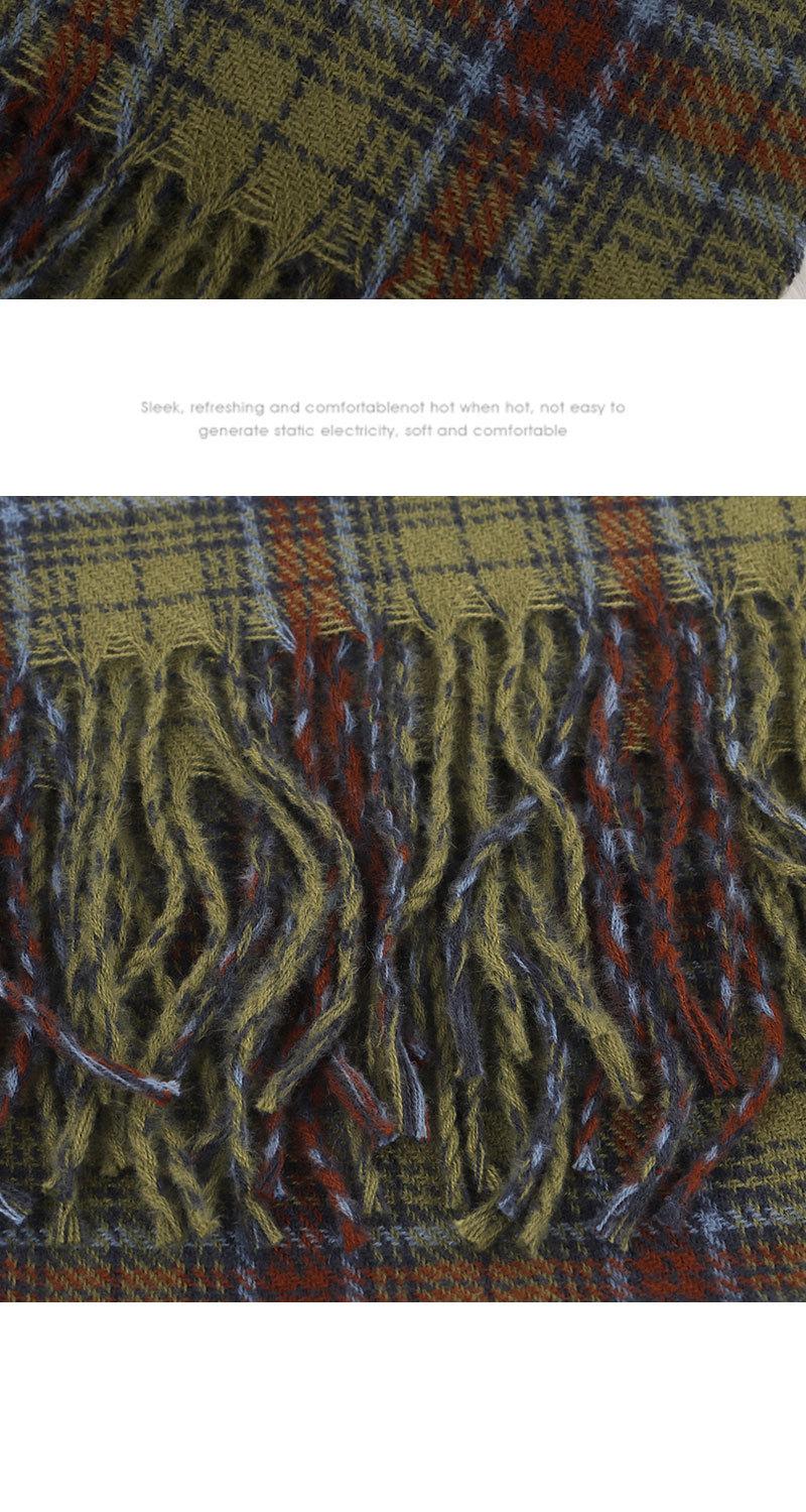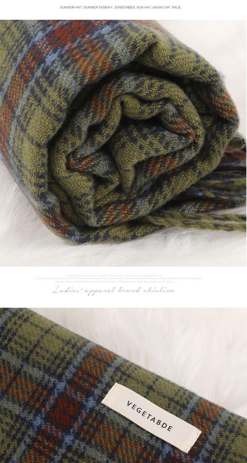 Bufanda a cuadros verde retro para mujer, personalidad que combina con todo, otoño e invierno, bufanda tipo chal cálida de alta calidad americana, estilo coreano