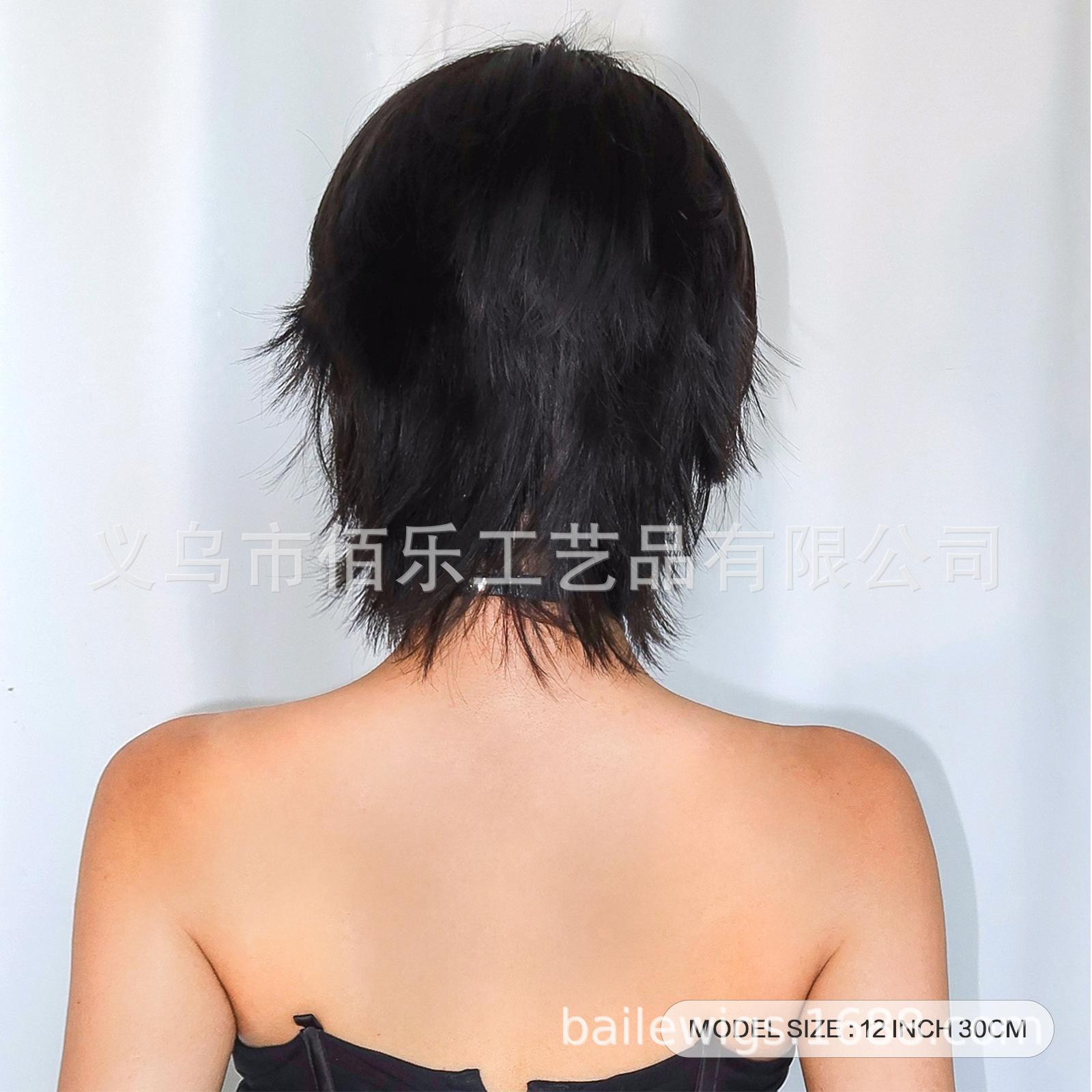 Nueva peluca en capas con flequillo de ocho caracteres cabello corto lacio seda de alta temperatura cabello de fibra química Halloween cos en stock venta al por mayor