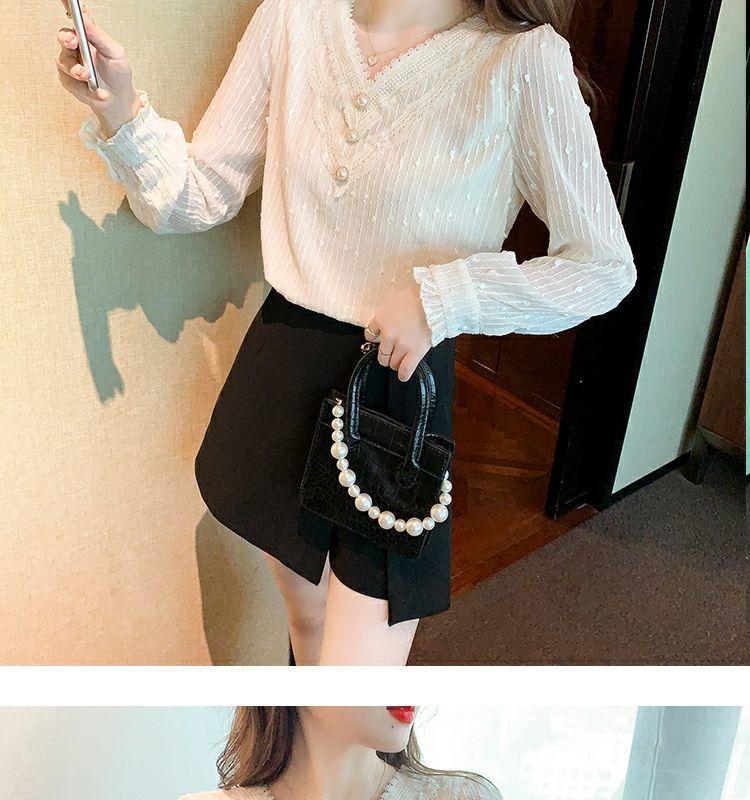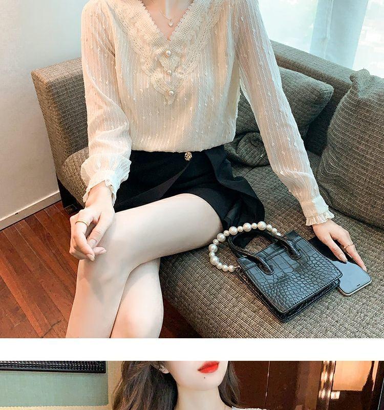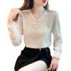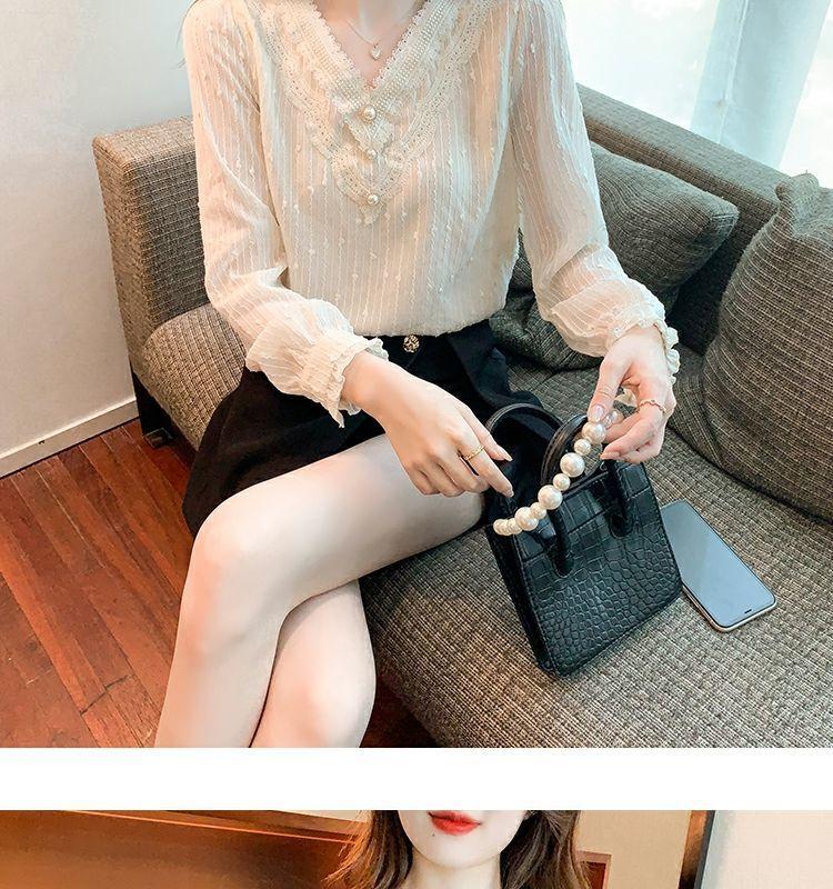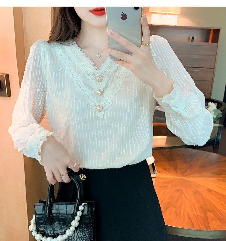 Compra Camisa de encaje para mujer, otoño e invierno 2023, nueva camisa con escote en V, ropa interior de moda, top estilo Chanel, camisa elegante de gasa al por mayor en Joom.pro
