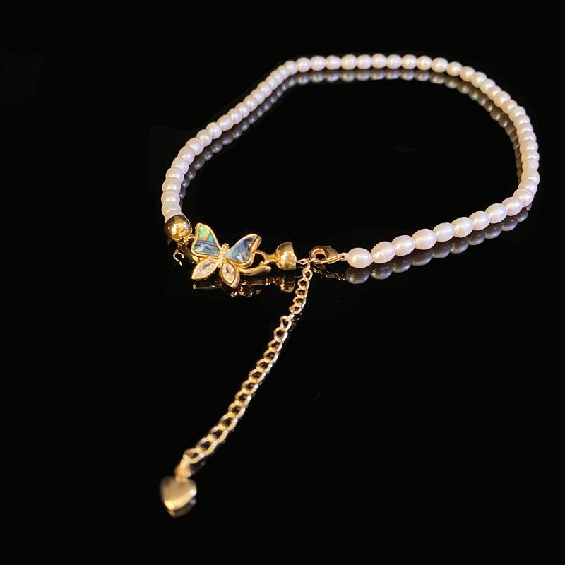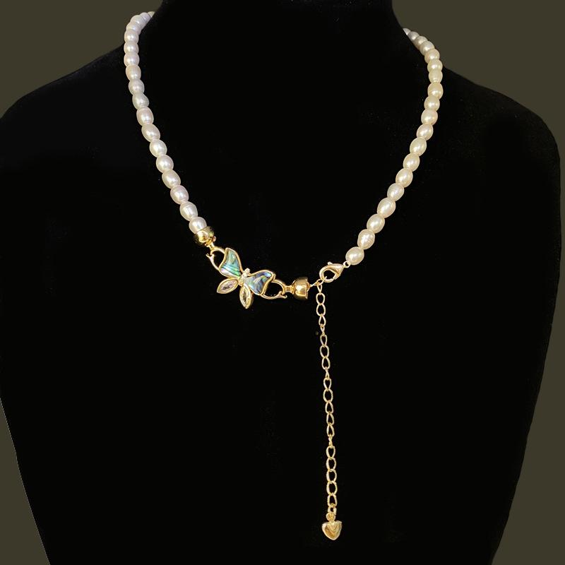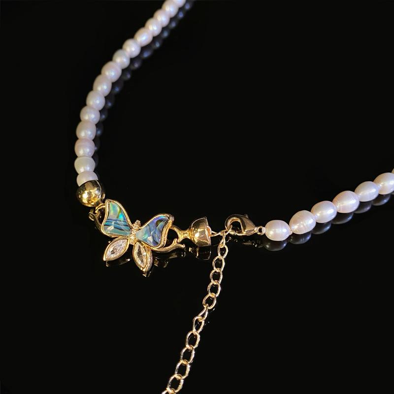 Compra Diseño transfronterizo de perla natural de agua dulce, collar con elemento de mariposa pequeña, temperamento de socialité, cadena para suéter, suministro directo de fábrica al por mayor en Joom.pro