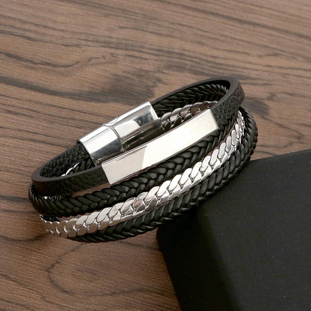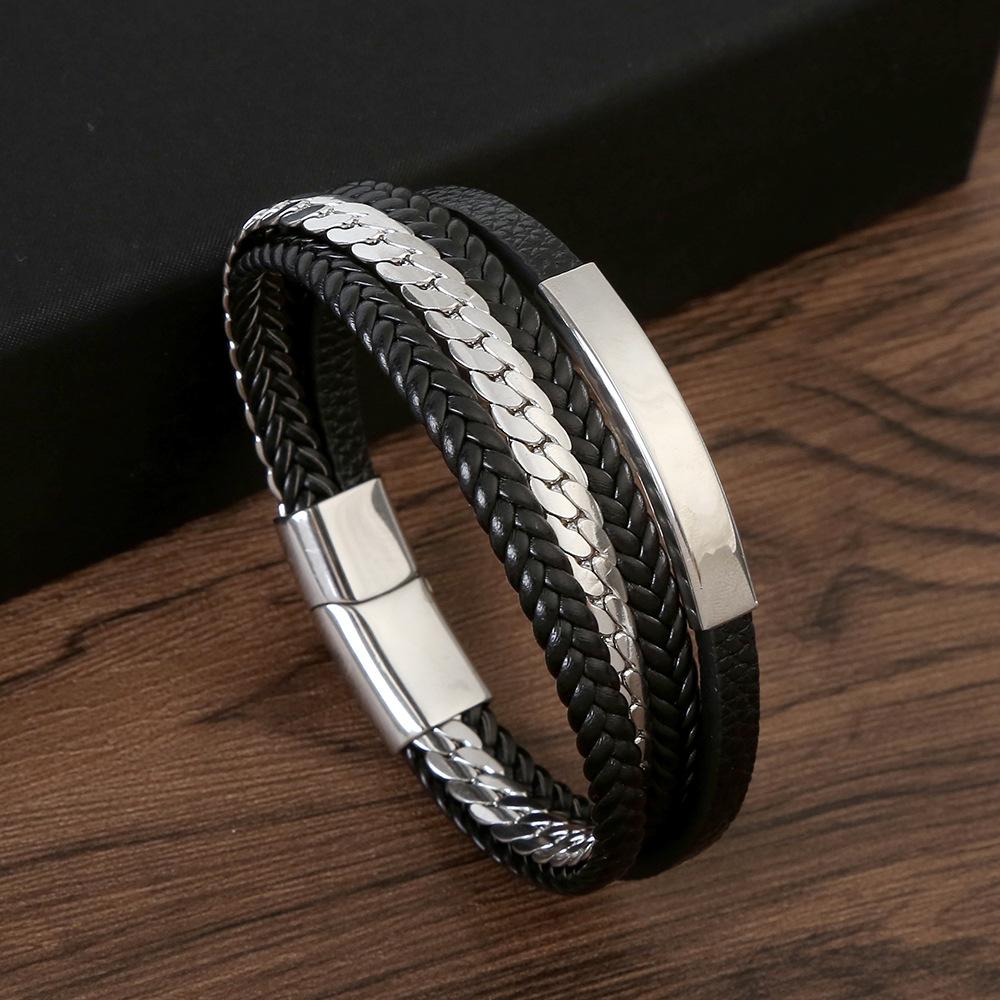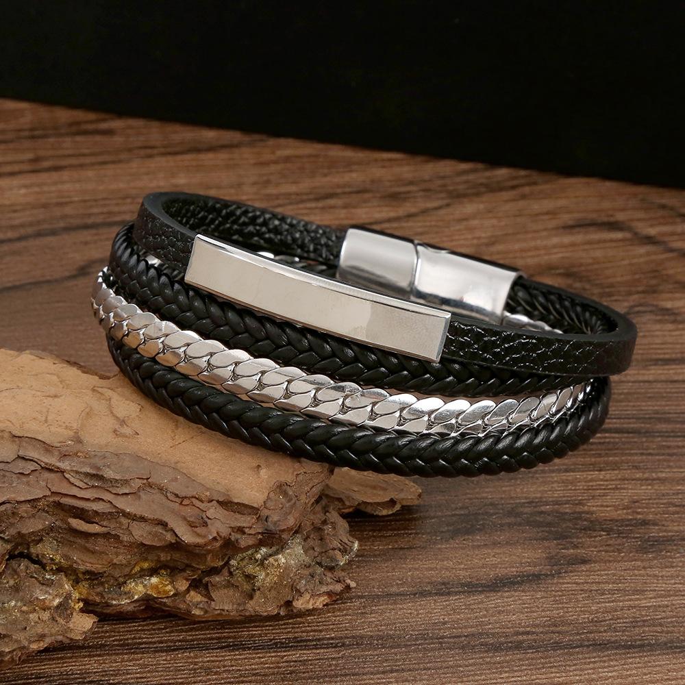 Pulsera Europea y Americana Retro Simple Moda Popular para Hombre Hebilla de Acero Inoxidable Tejida a Mano Personalizada Versátil Hebilla Magnética Pulsera