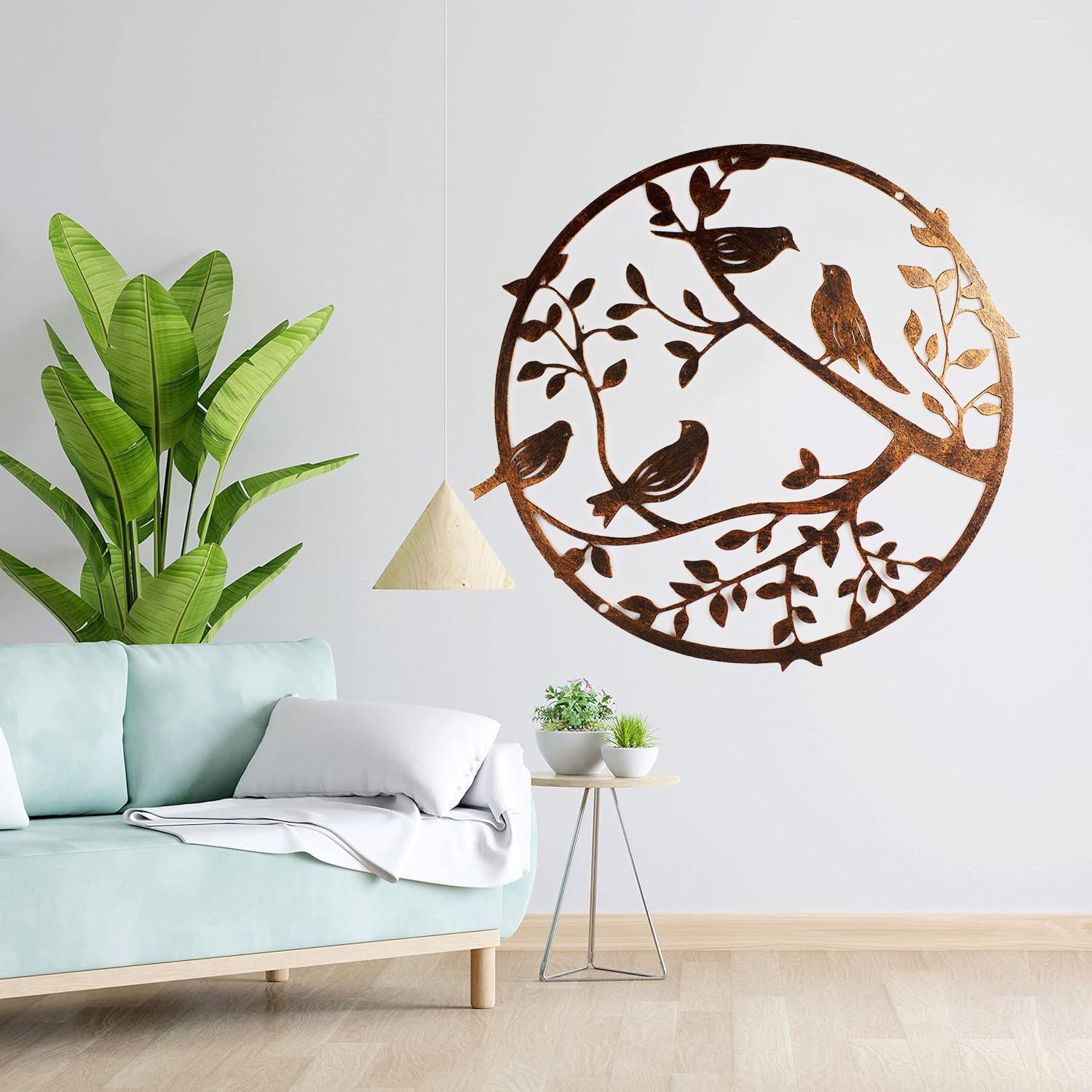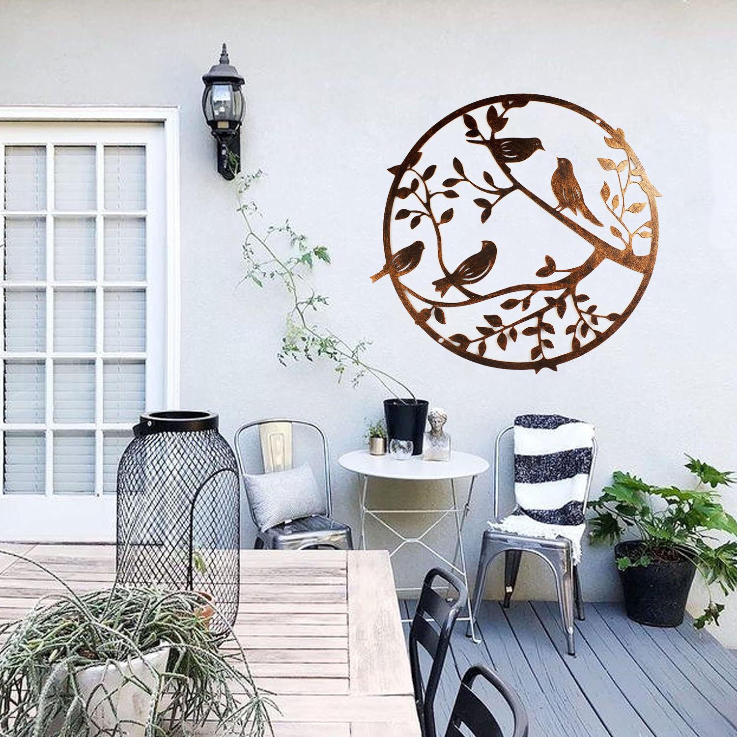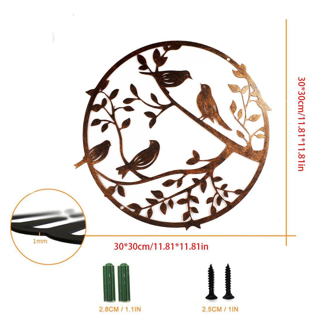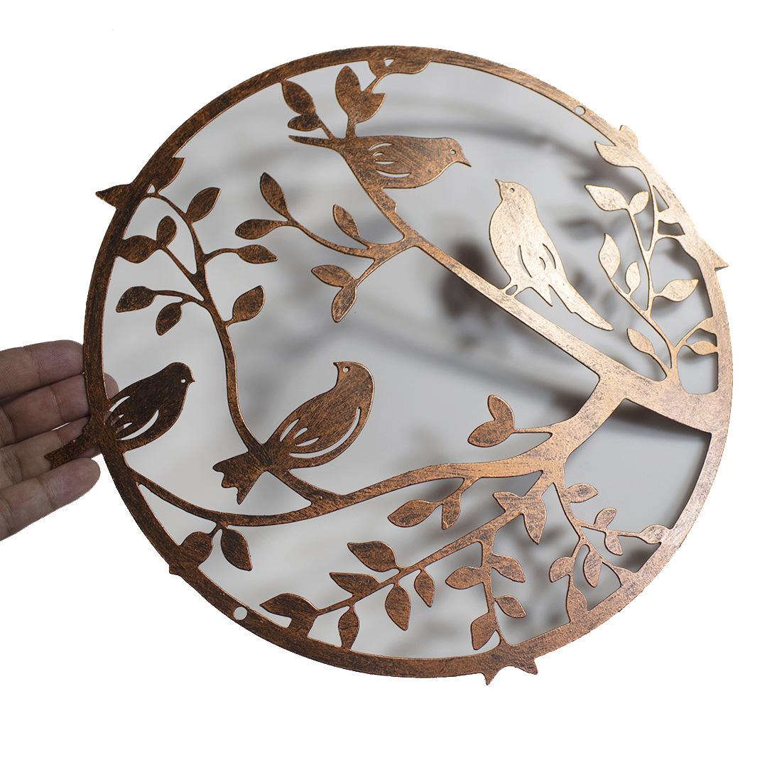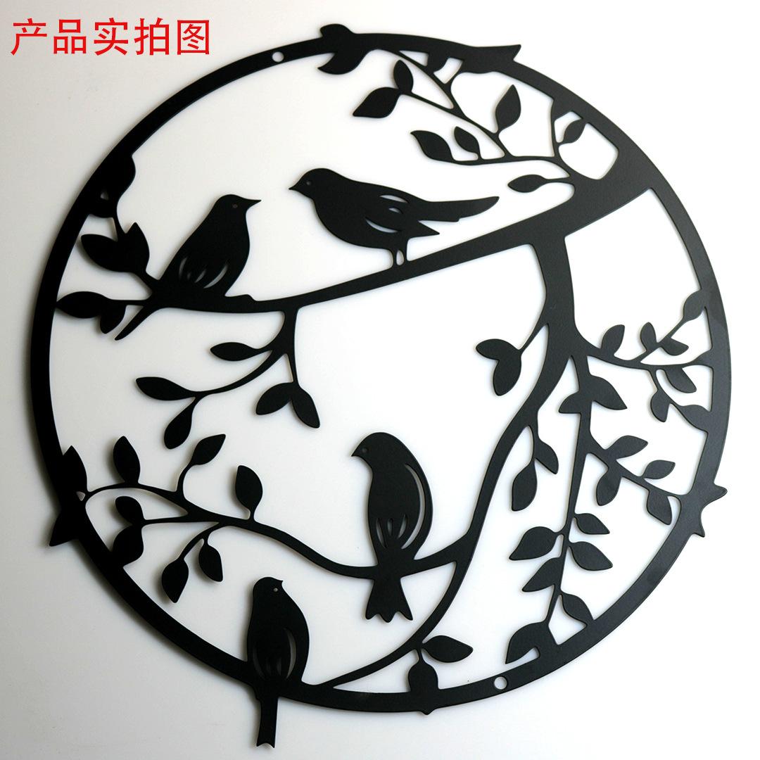 Estación independiente transfronteriza SHEIN Artesanía de hierro Rama Pájaro Decoración de pared Redonda Metal Decoración de pared interior y exterior