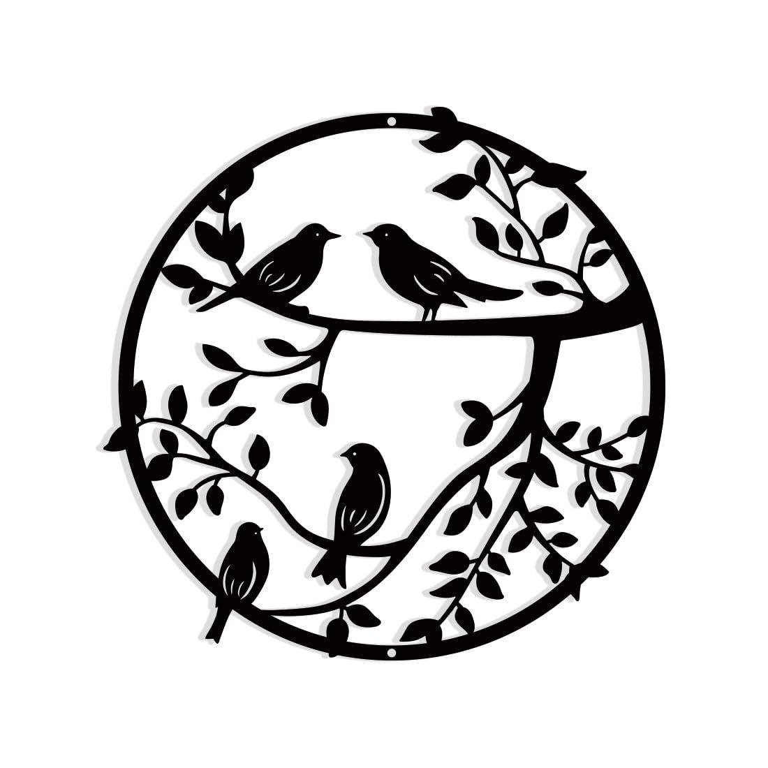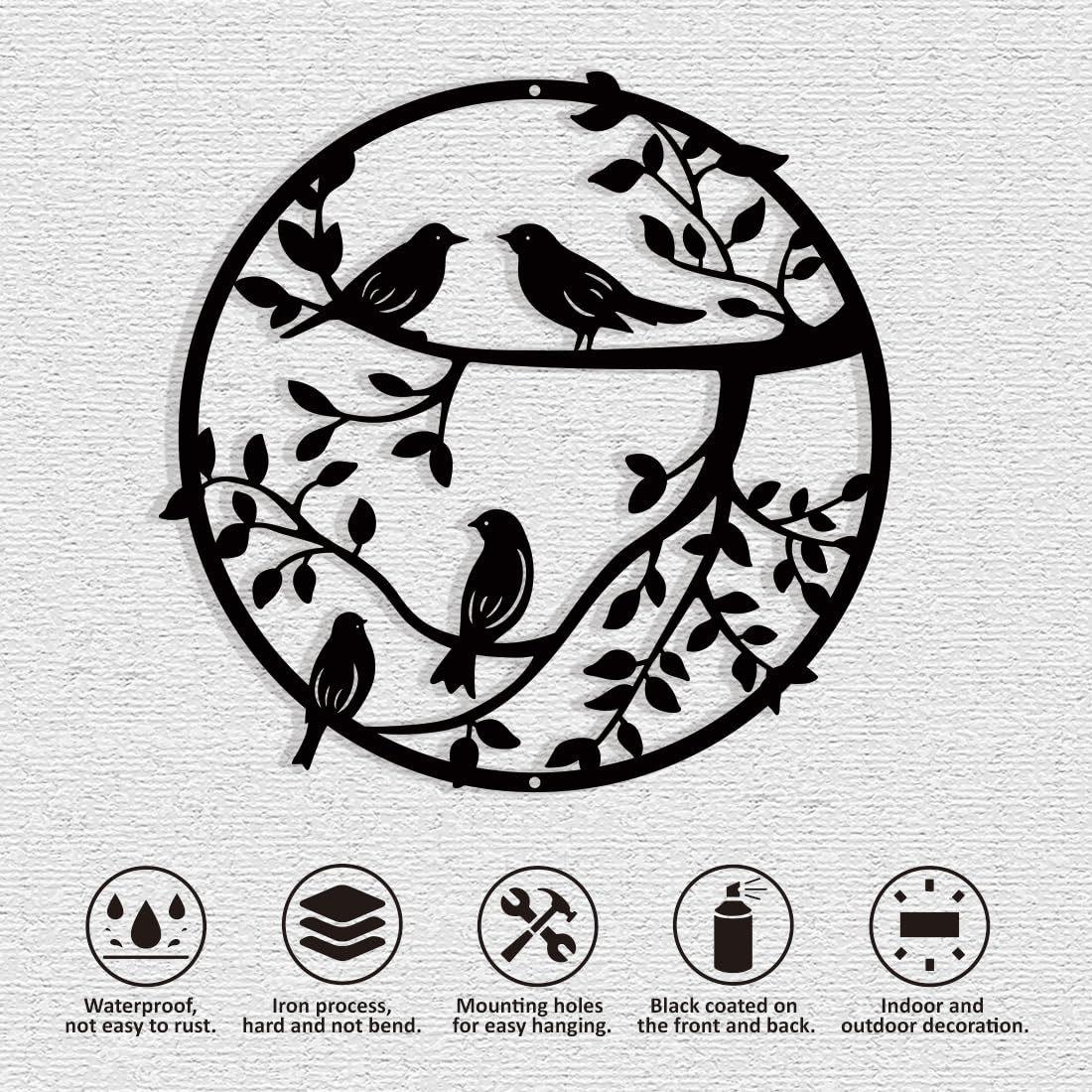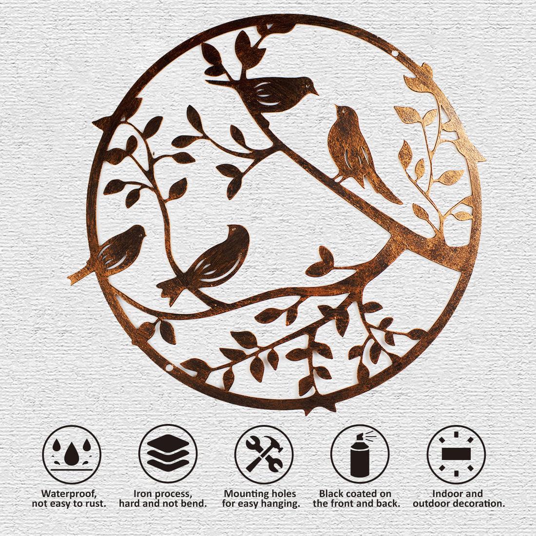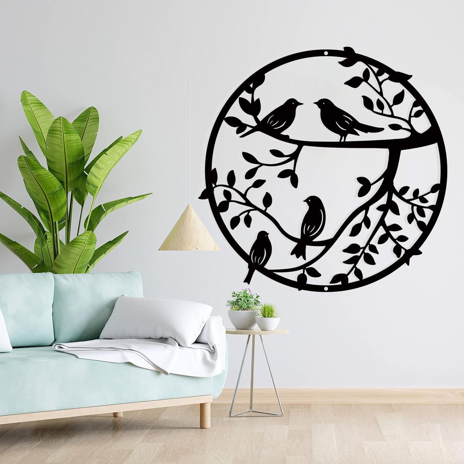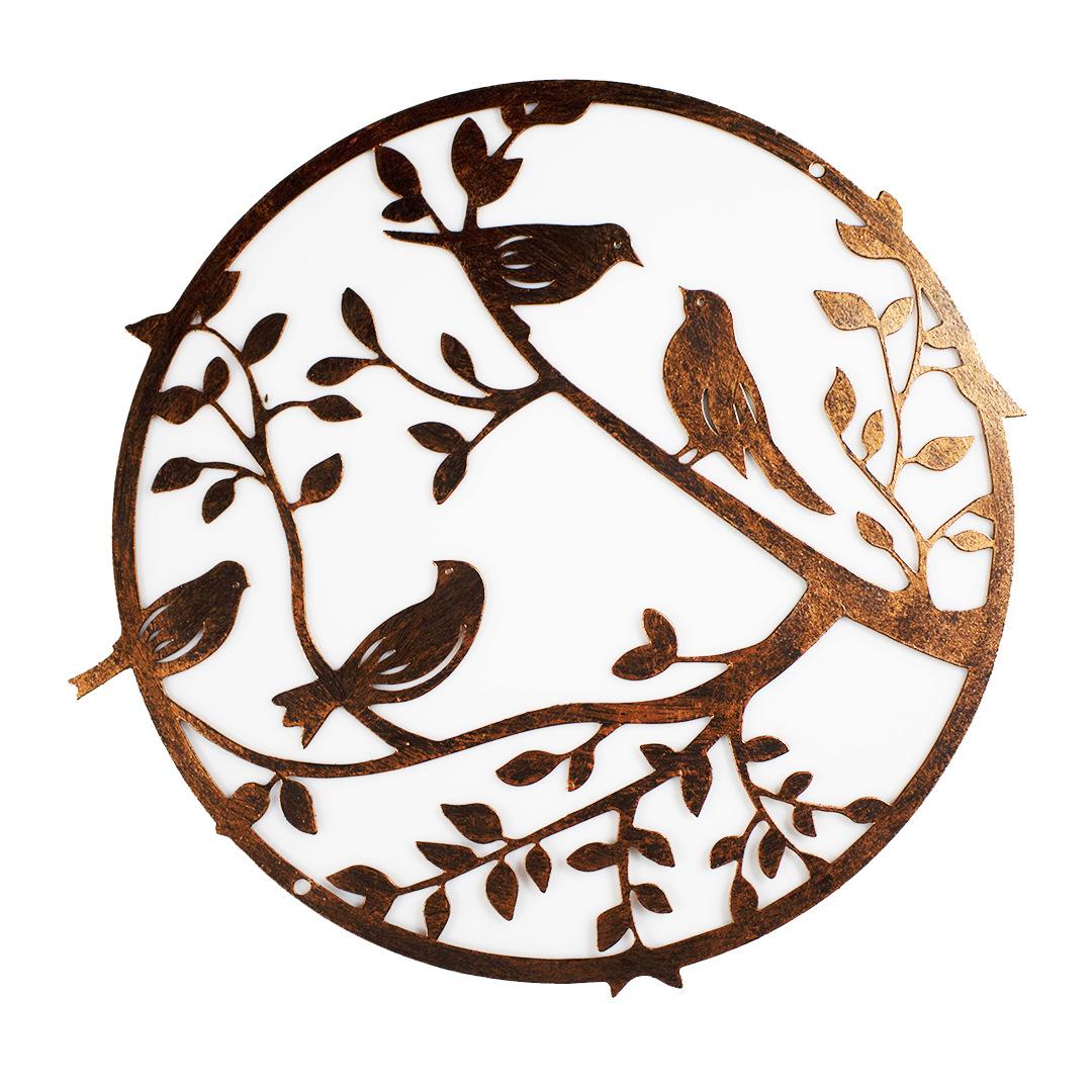 Estación independiente transfronteriza SHEIN Artesanía de hierro Rama Pájaro Decoración de pared Redonda Metal Decoración de pared interior y exterior