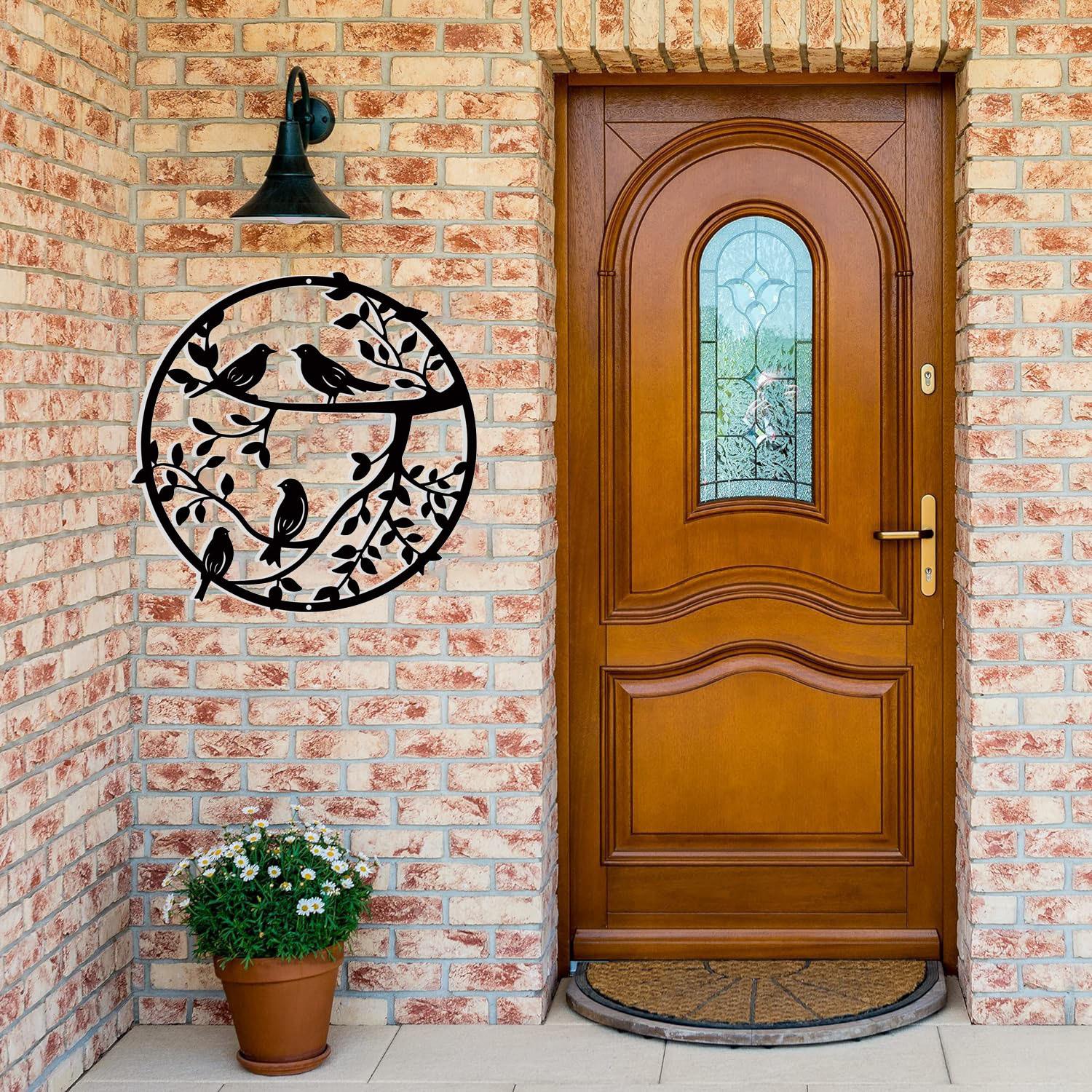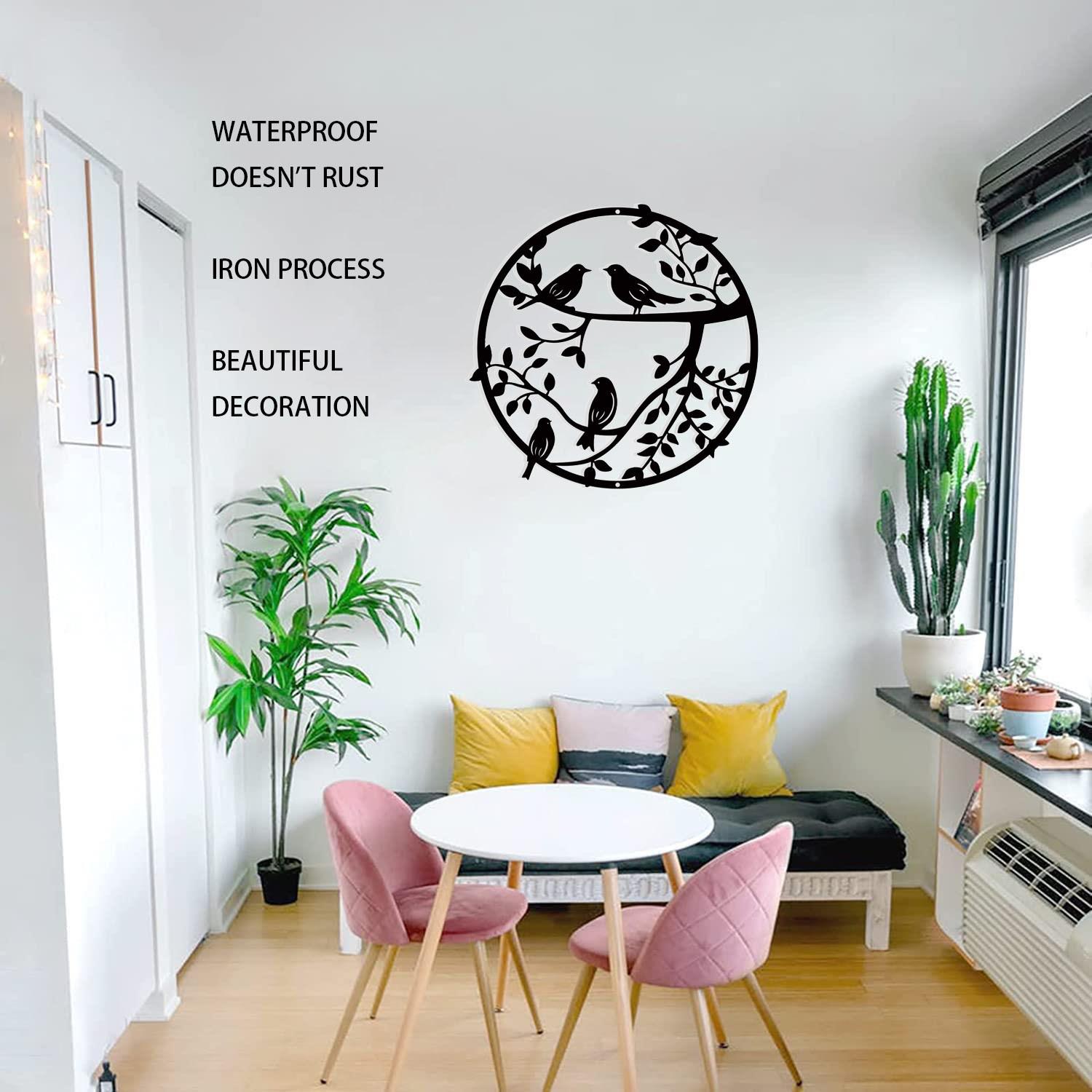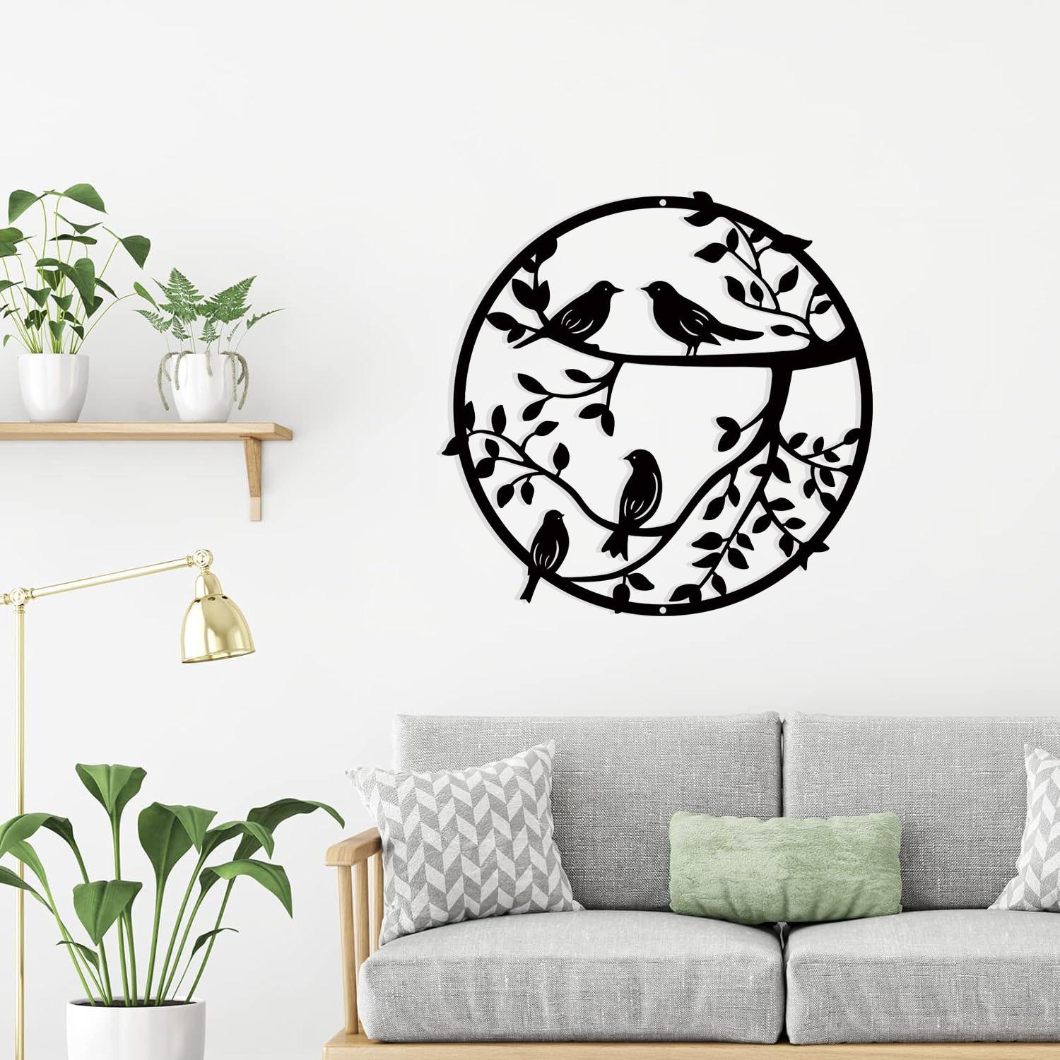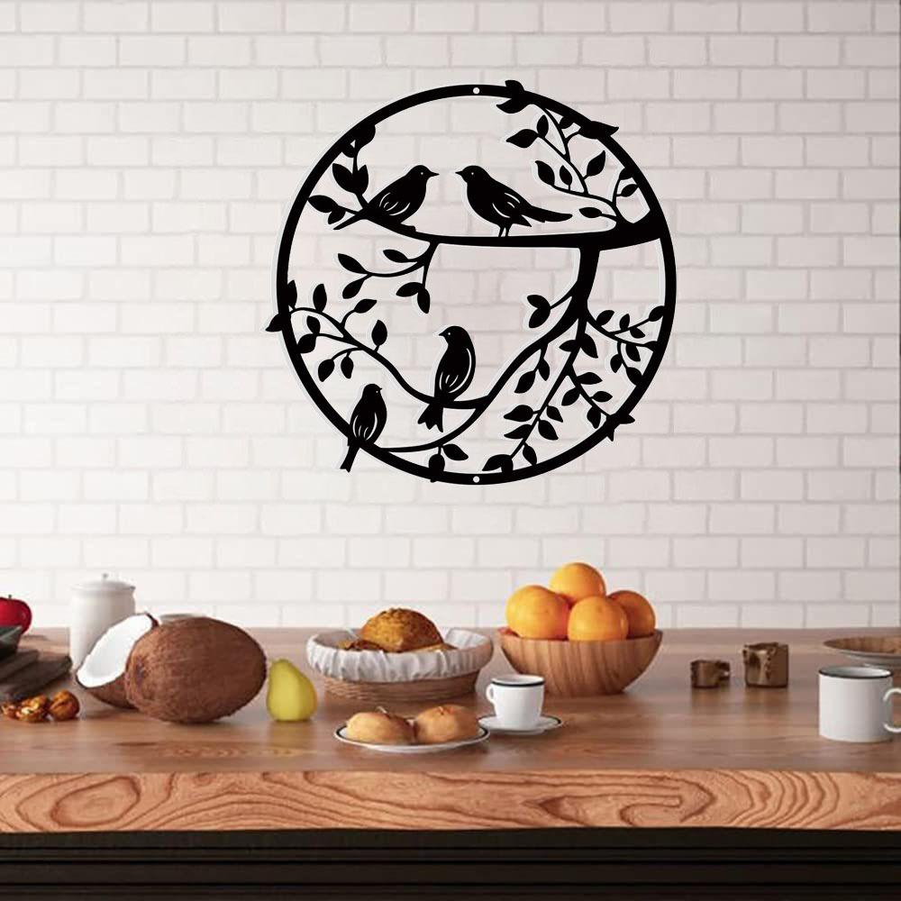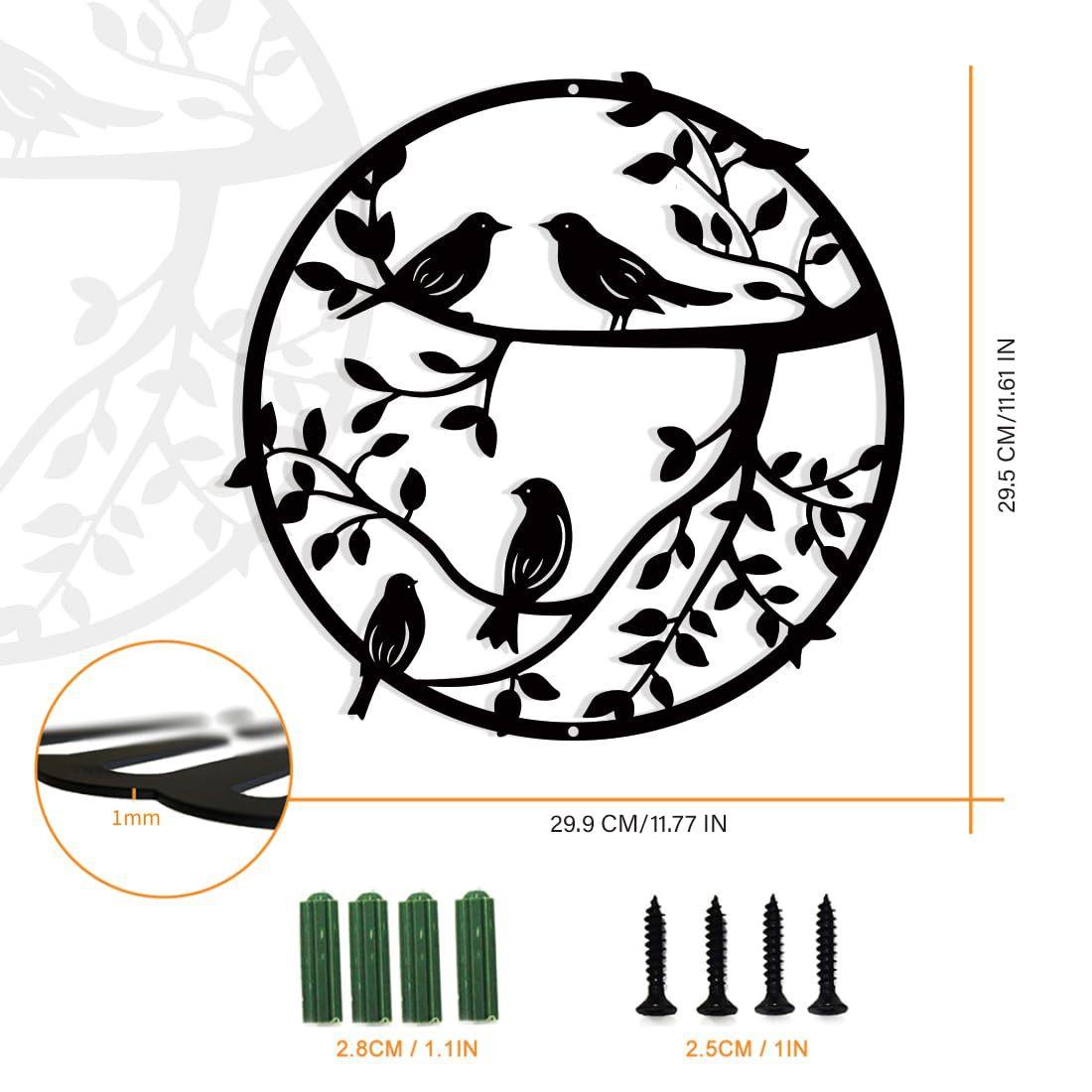 Estación independiente transfronteriza SHEIN Artesanía de hierro Rama Pájaro Decoración de pared Redonda Metal Decoración de pared interior y exterior