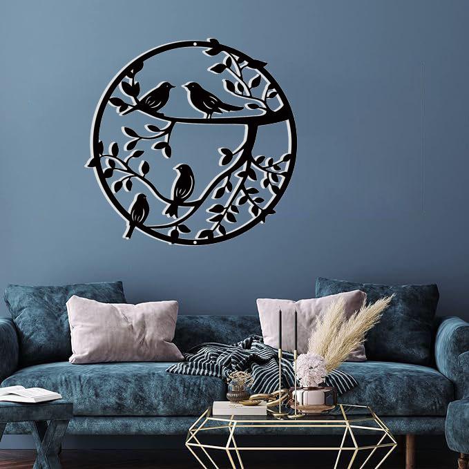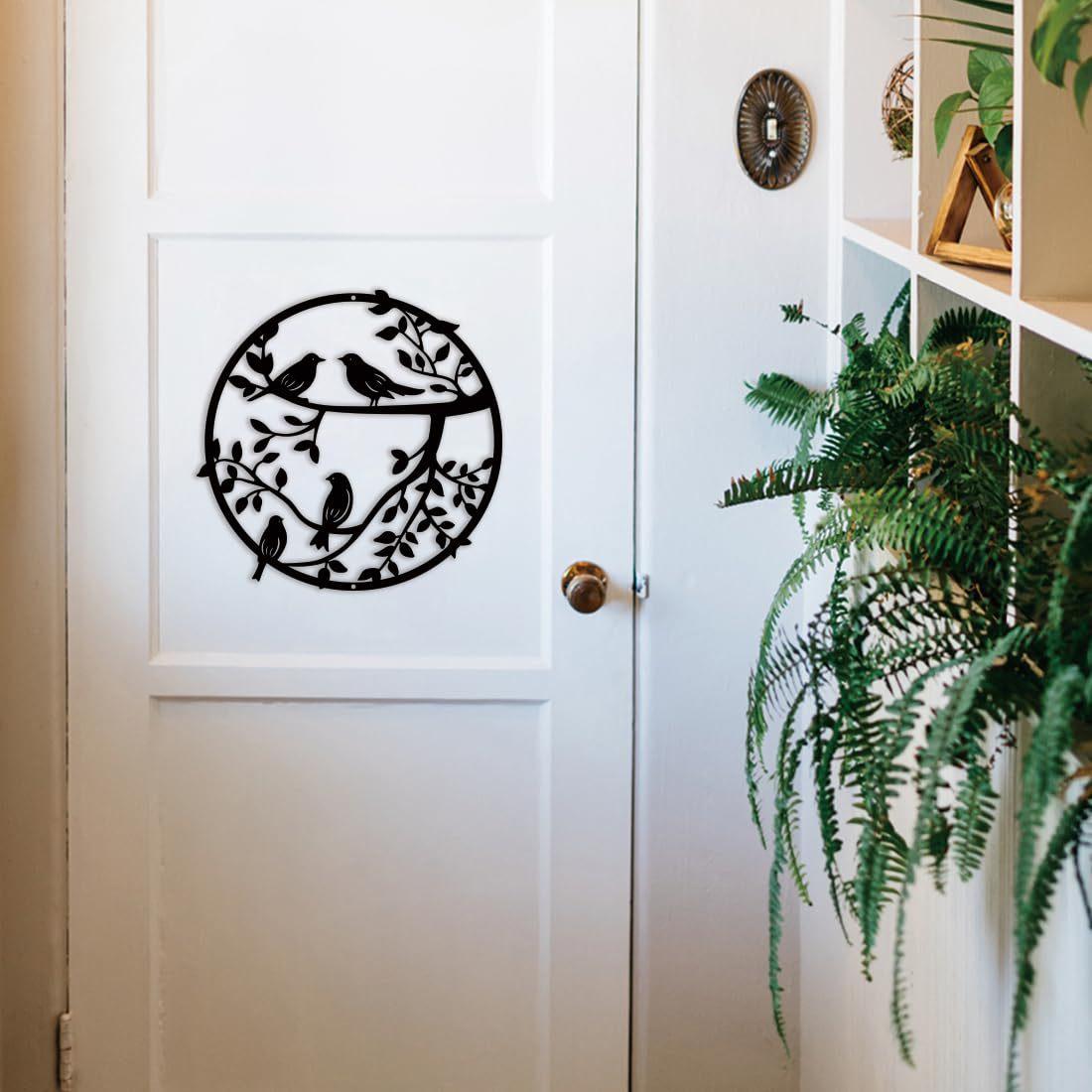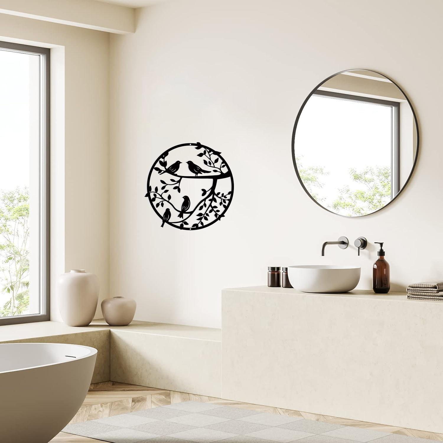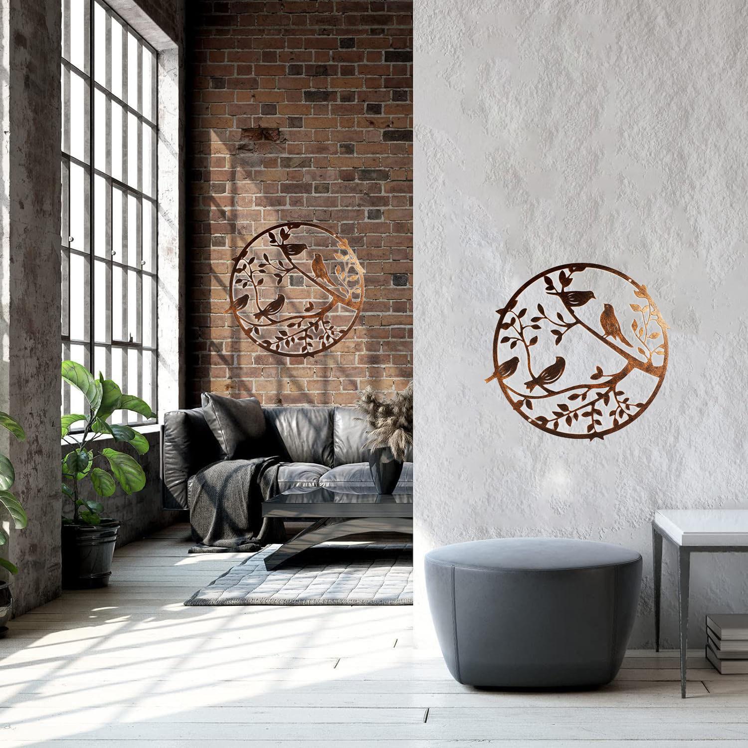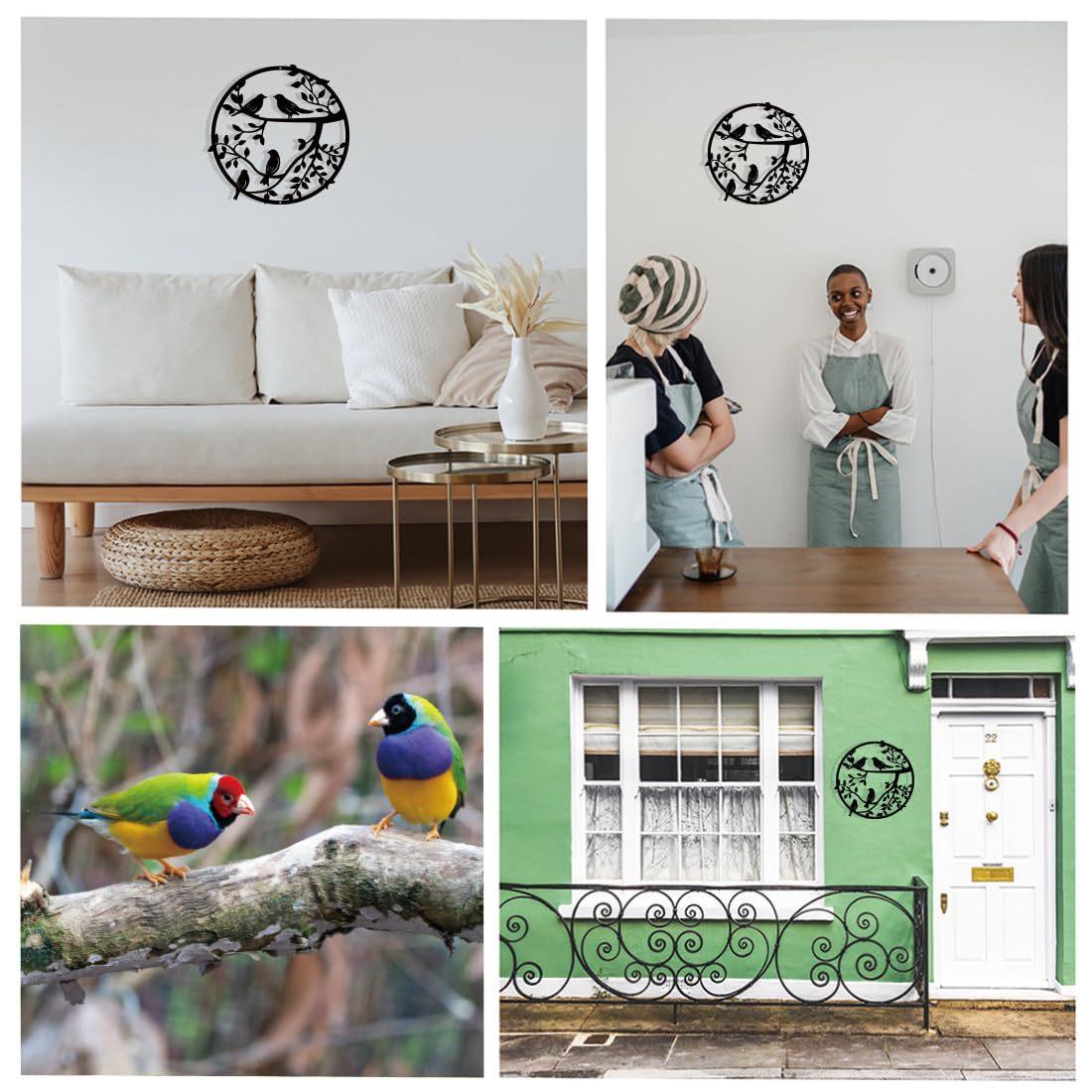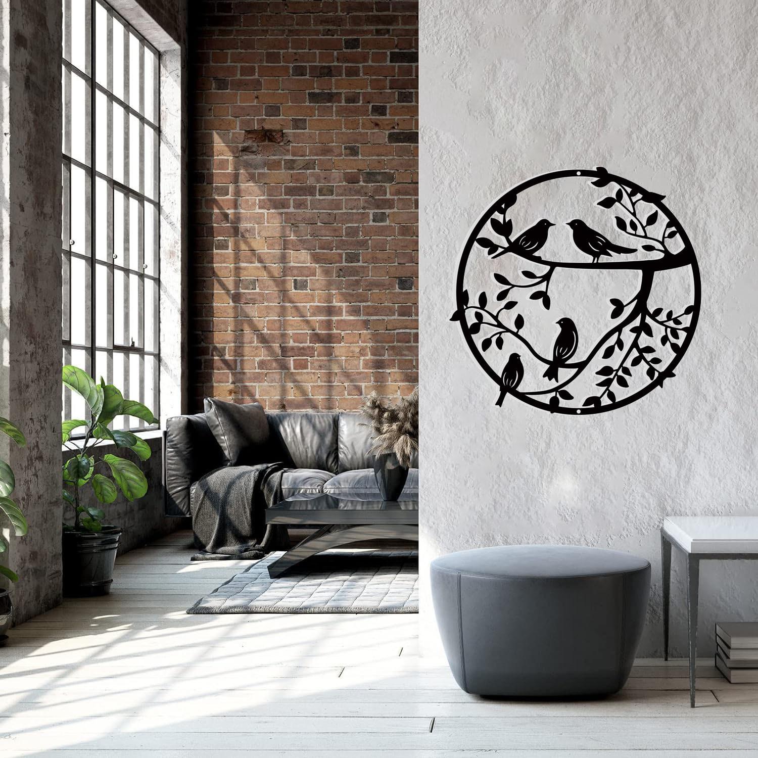 Estación independiente transfronteriza SHEIN Artesanía de hierro Rama Pájaro Decoración de pared Redonda Metal Decoración de pared interior y exterior