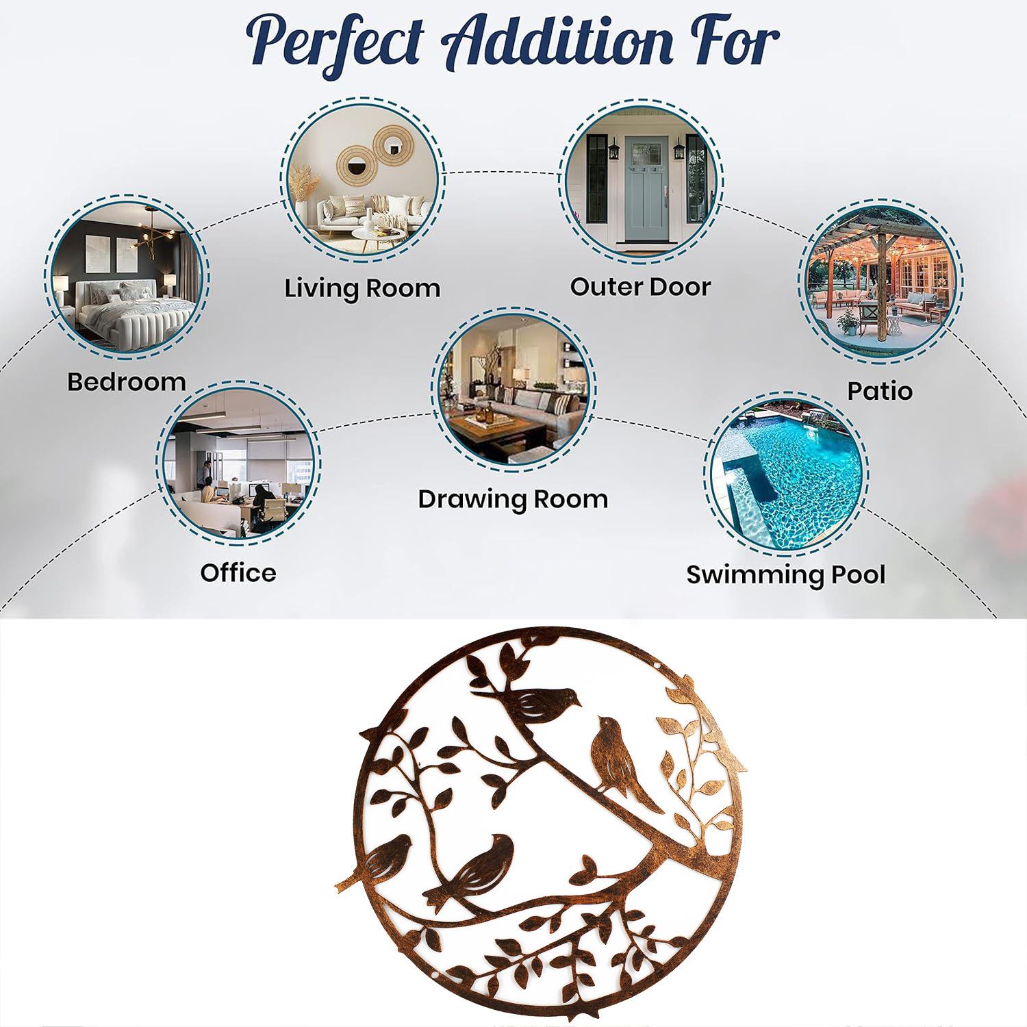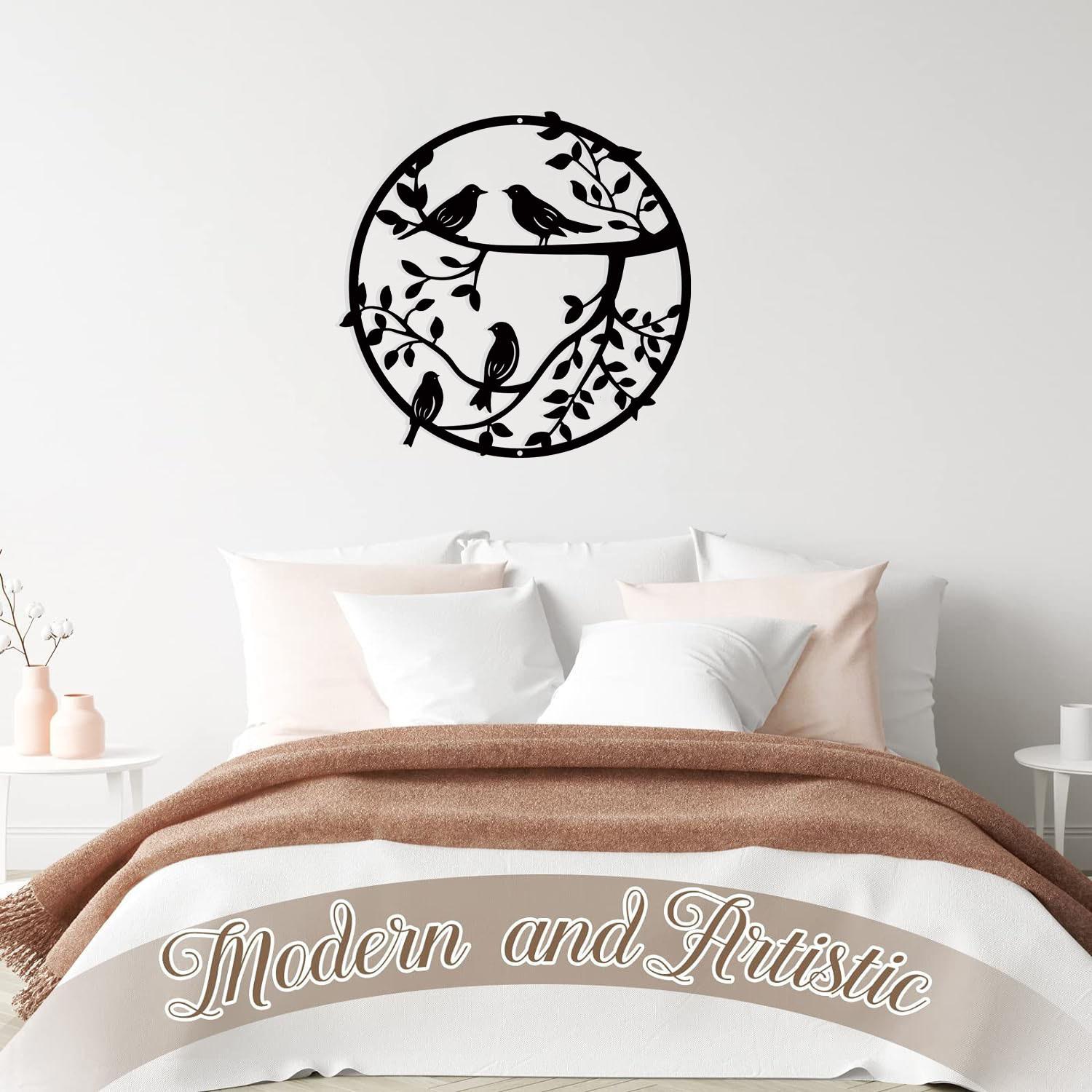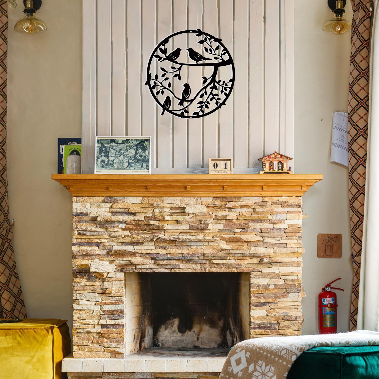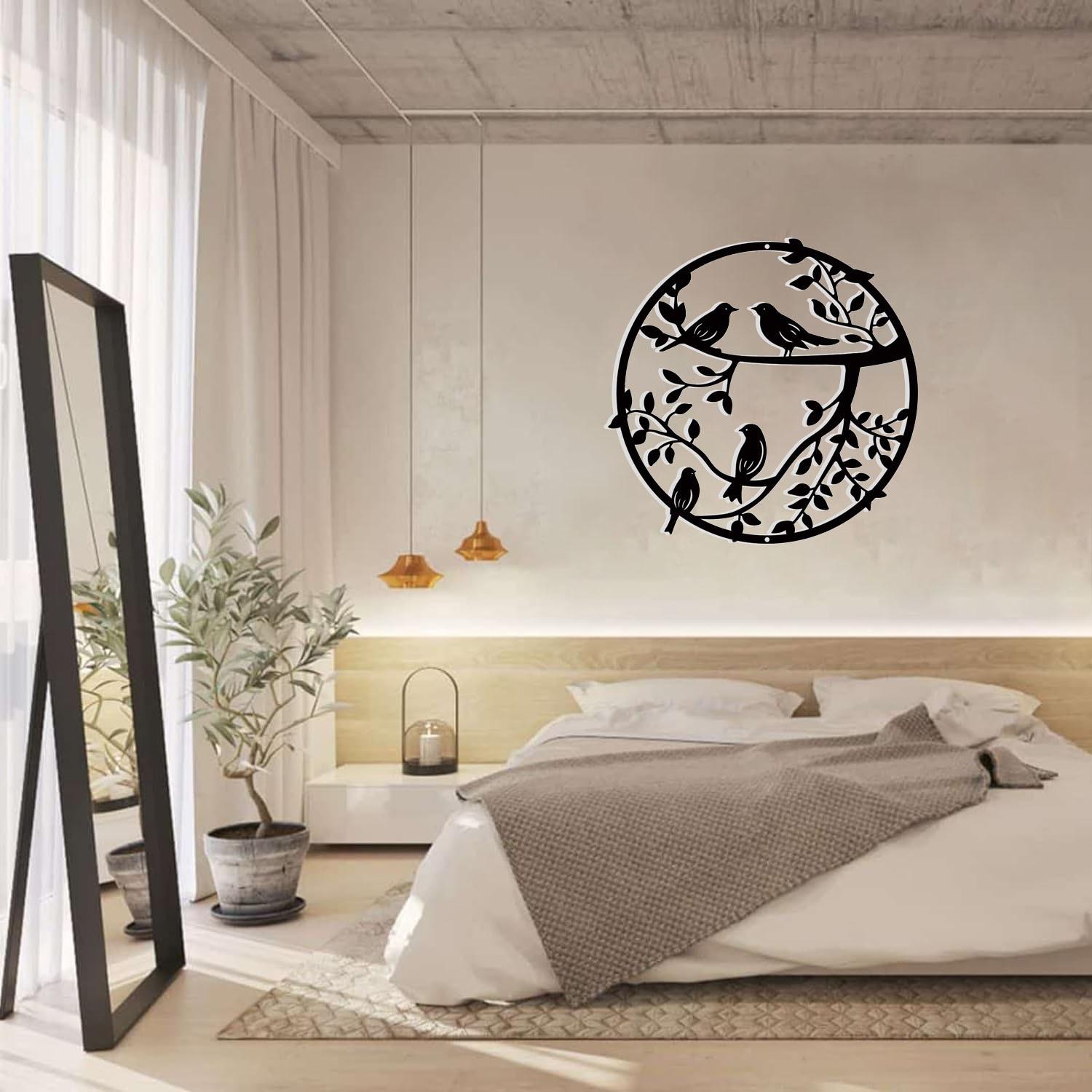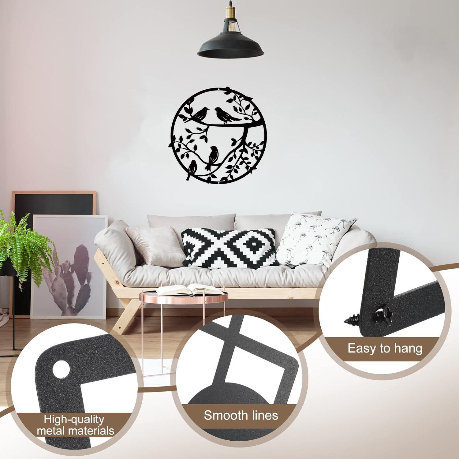 Estación independiente transfronteriza SHEIN Artesanía de hierro Rama Pájaro Decoración de pared Redonda Metal Decoración de pared interior y exterior