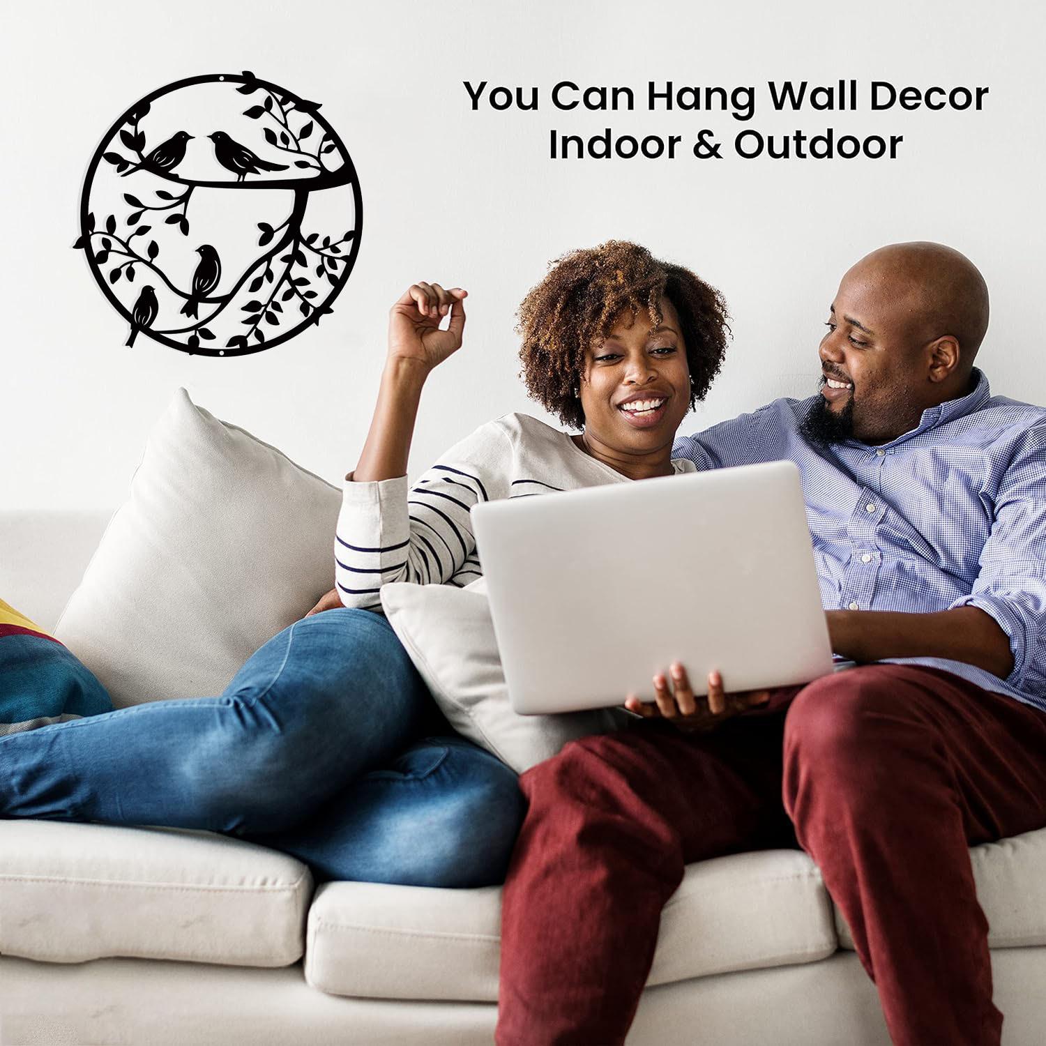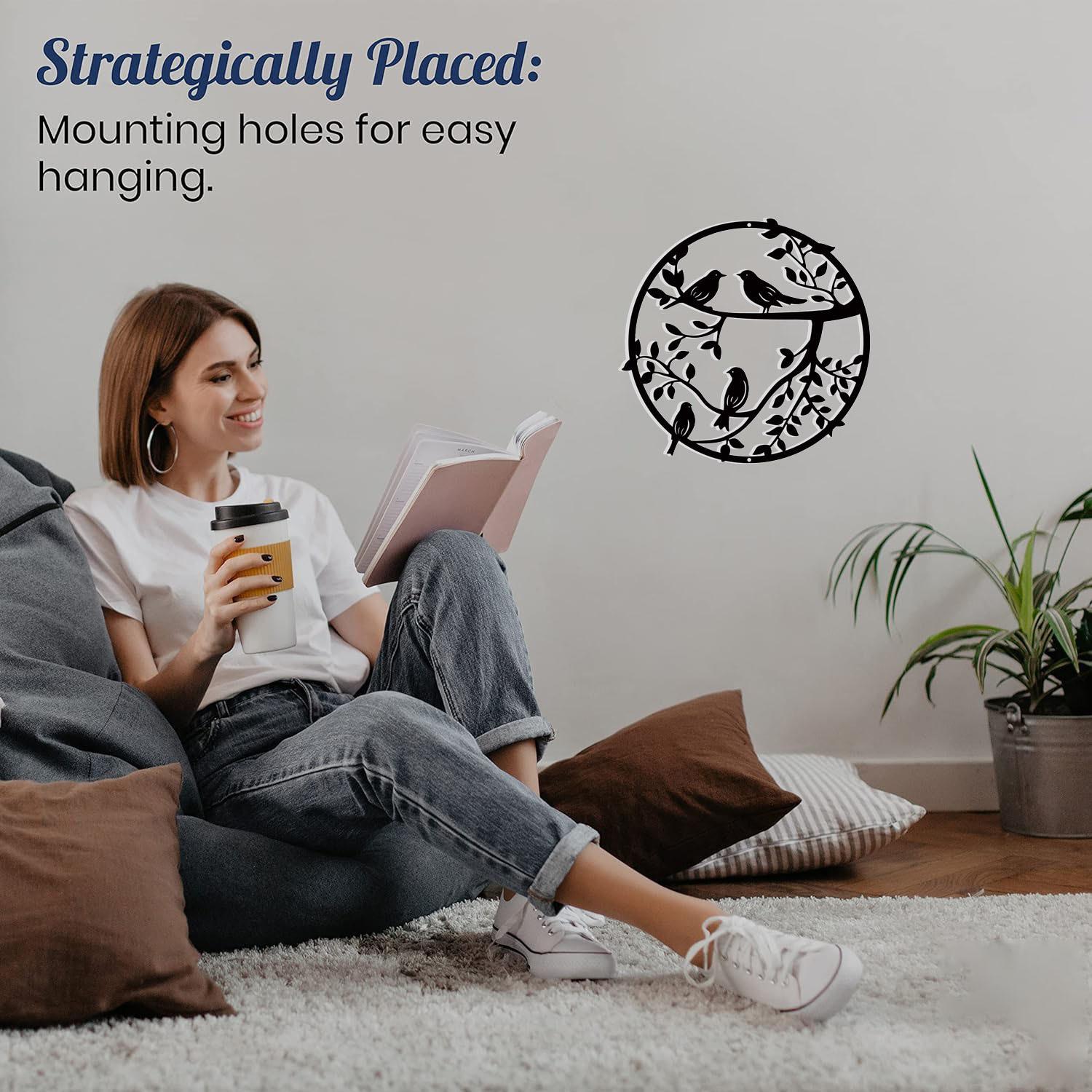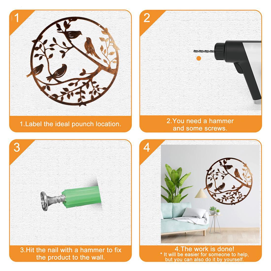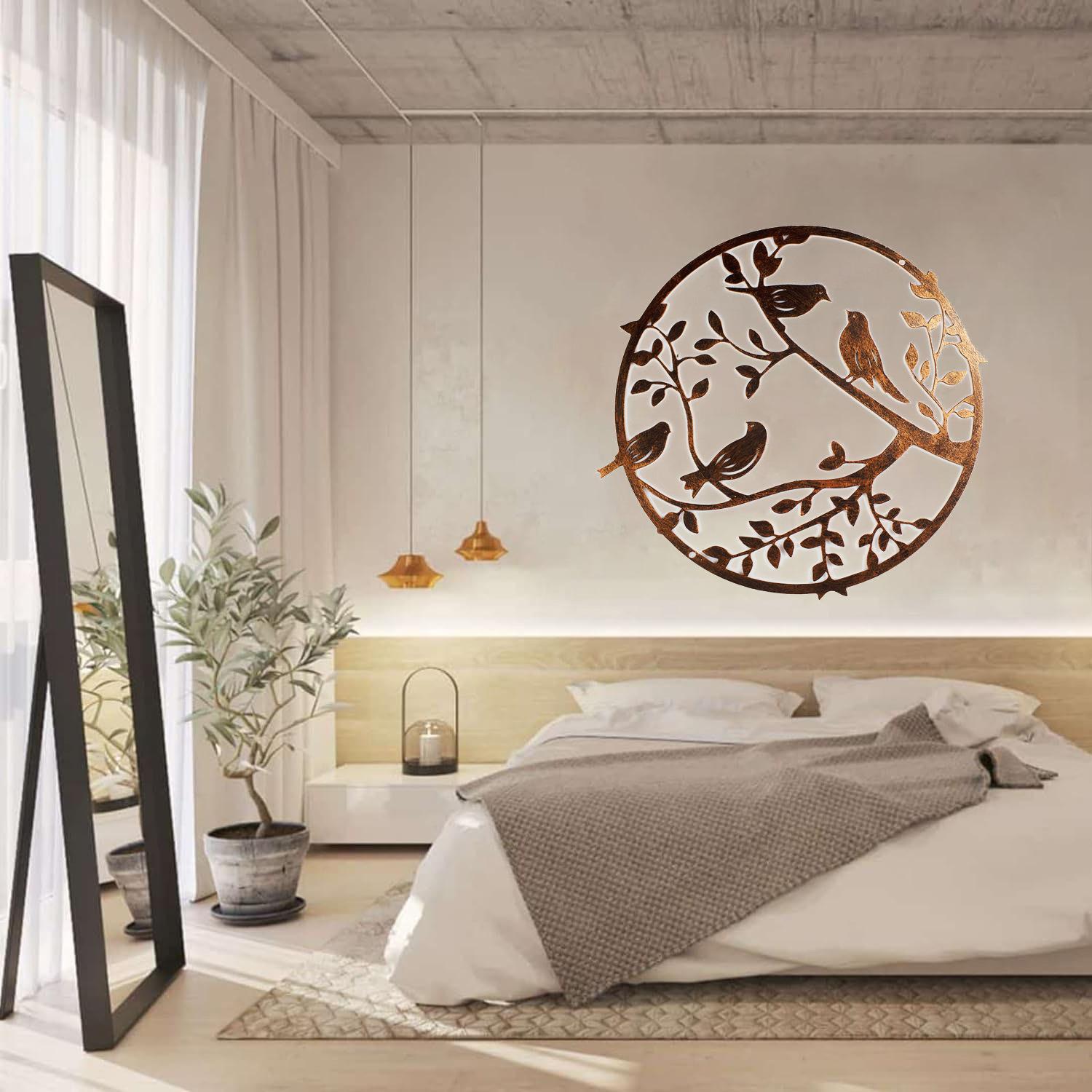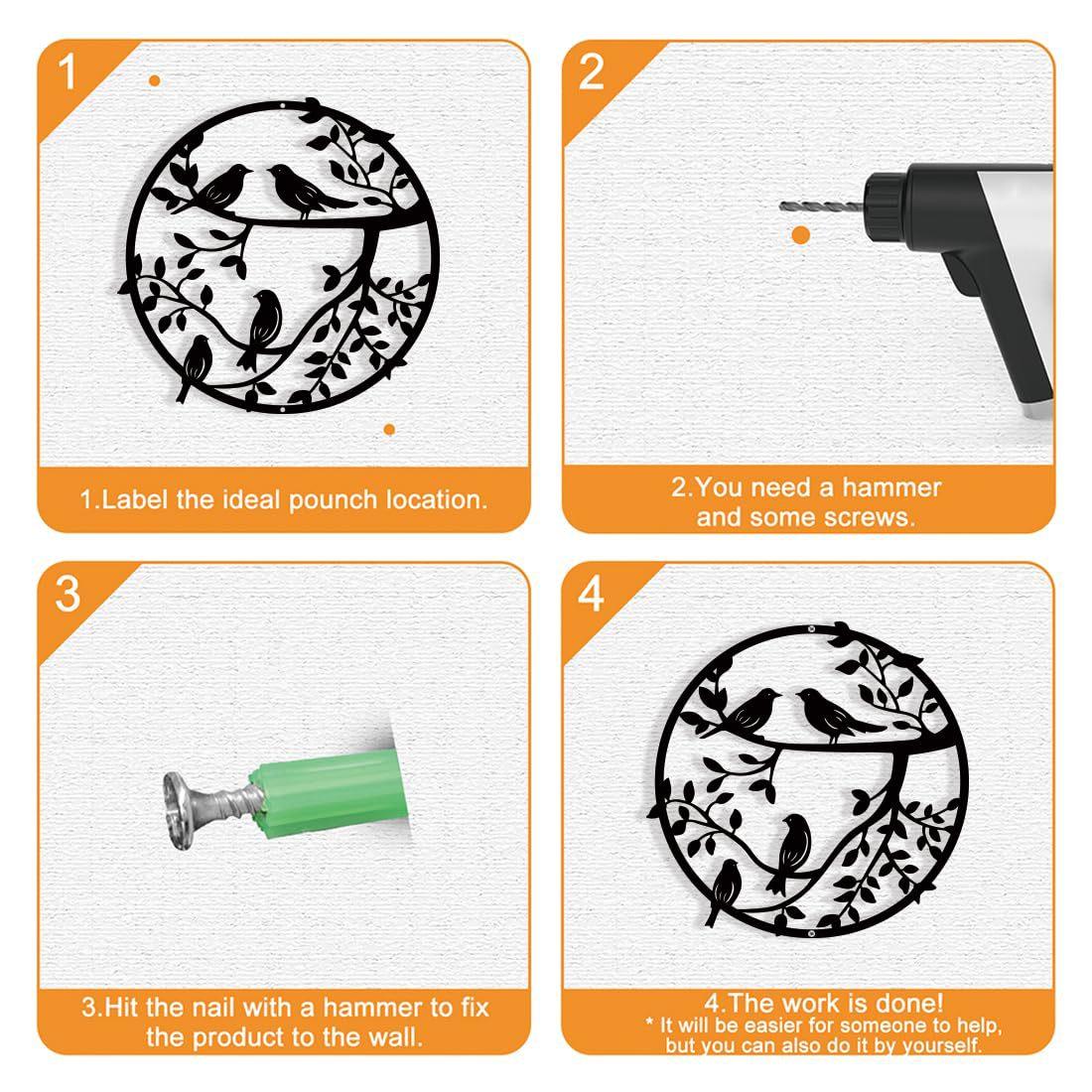 Estación independiente transfronteriza SHEIN Artesanía de hierro Rama Pájaro Decoración de pared Redonda Metal Decoración de pared interior y exterior