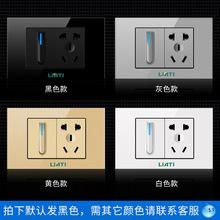 Toma de pared 16A tipo 118 oculta, panel de vidrio templado de una abertura y cinco orificios, hotel, hogar