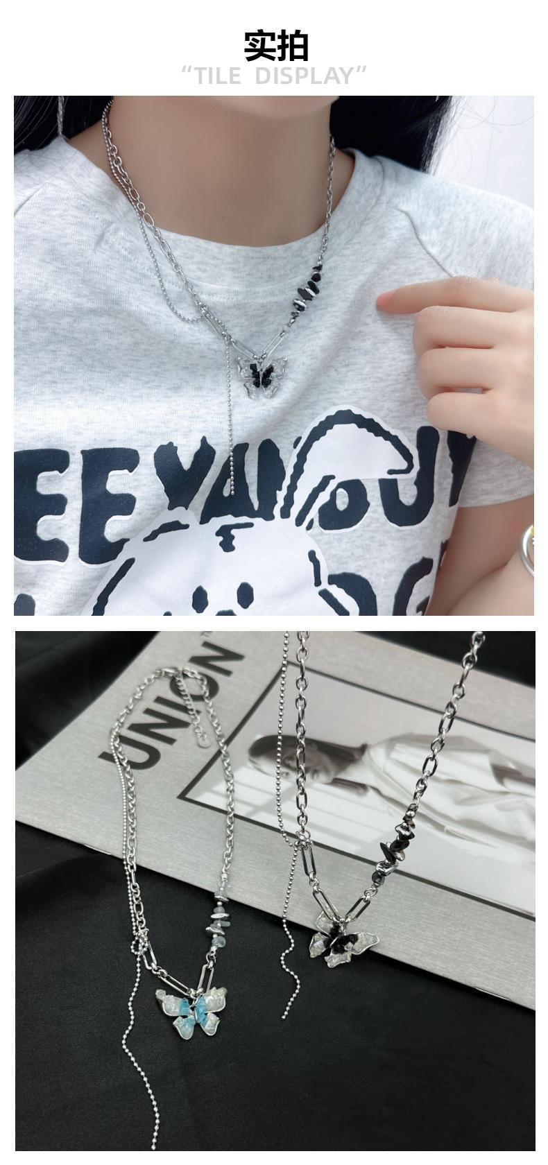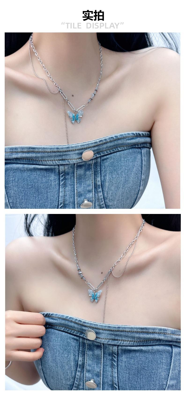 Collar de alta gama con diseño de mariposa y circonitas, combinable con todo, para mujer, 2024, nuevo, de acero de titanio, sin color, para clavícula, joyería coreana.