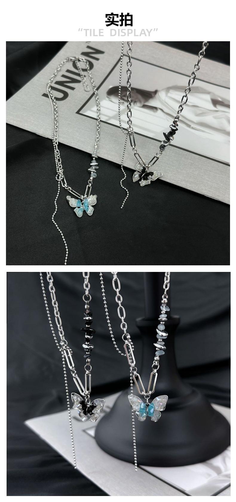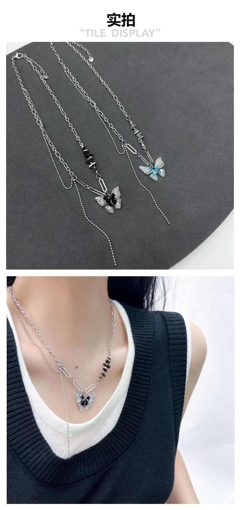 Blue butterfly zircon necklace, Black Zircon Butterfly Necklace