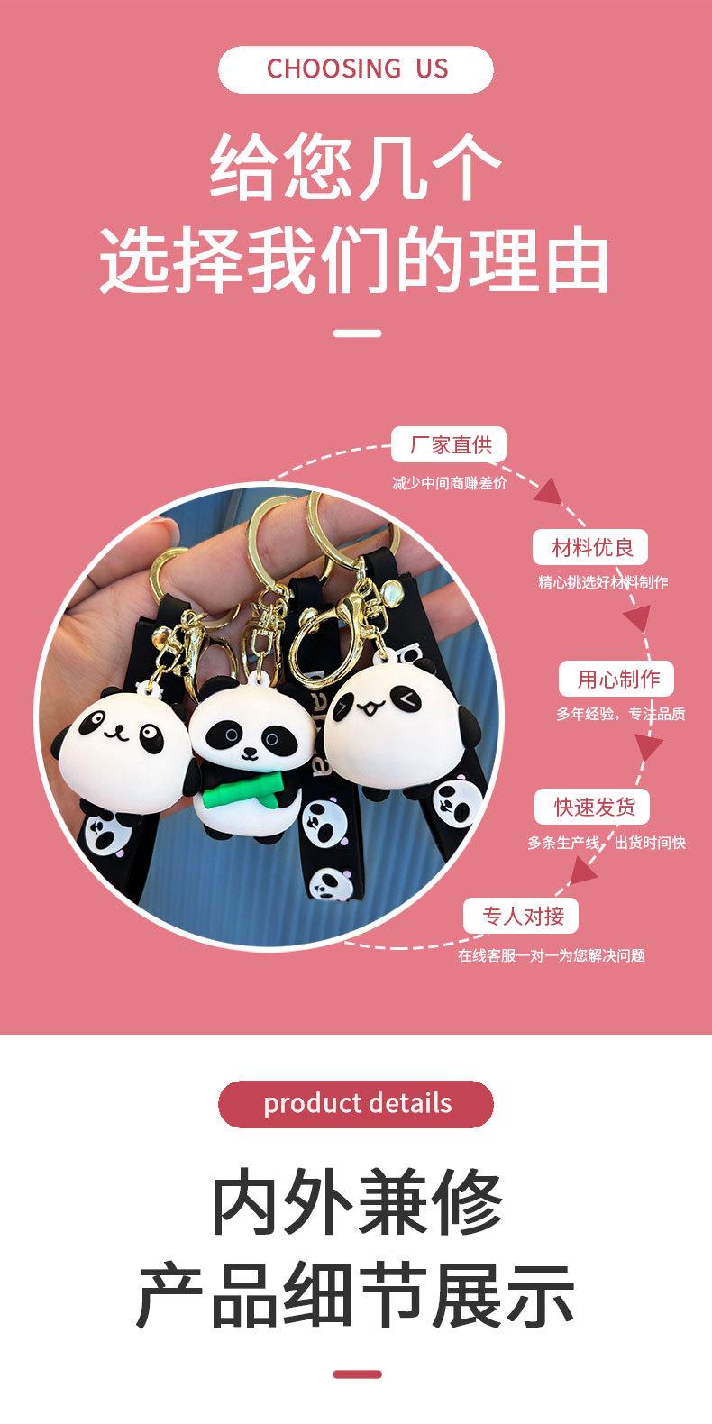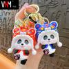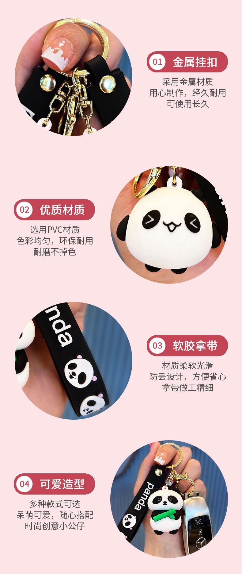 Llavero de bambú con forma de panda de dibujos animados, cadena creativa para coche, muñeco 3D, mochila escolar, colgante, regalo pequeño para pareja