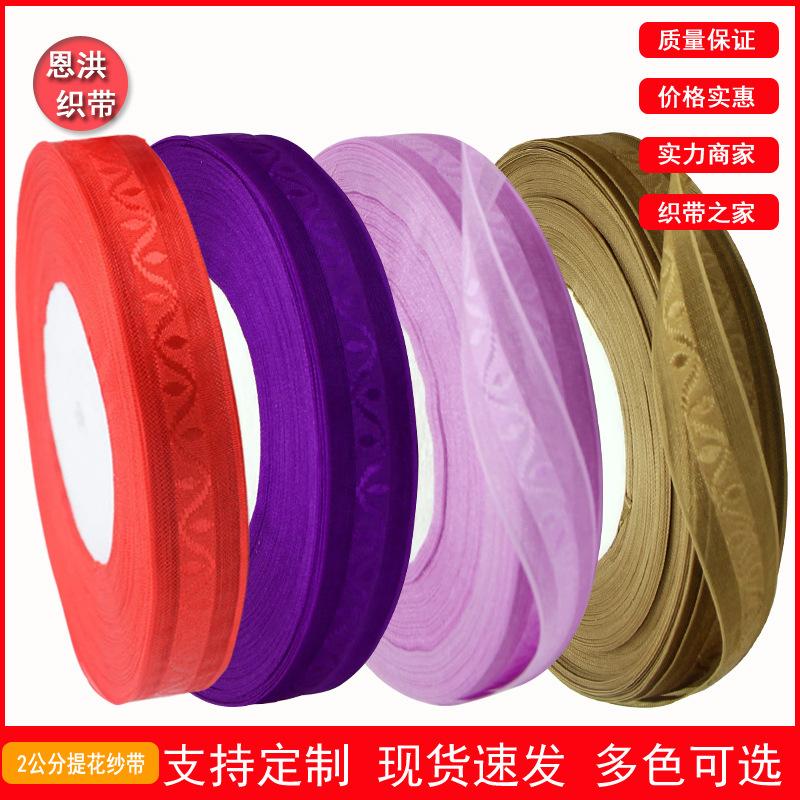 Nuestros productos incluyen: cinta de raso, cinta de raso con borde dorado, cinta de gasa, cinta de gasa con borde dorado, cinta de gasa de borde grueso, cinta de gasa de borde ancho, cinta de gasa jacquard, cinta de poliéster de alta calidad, cinta acanalada, cinta de cebolla dorada y plateada, cinta de terciopelo, cinta de poliéster-algodón, cinta impresa y varias cintas de formas especiales, etc. También podemos producir según muestras del cliente.