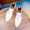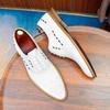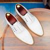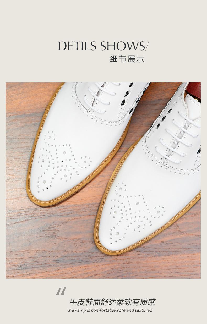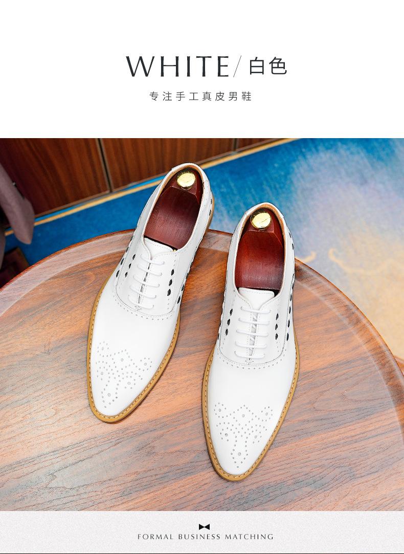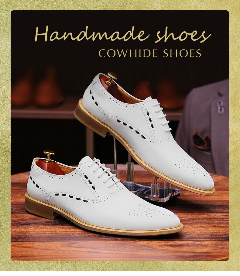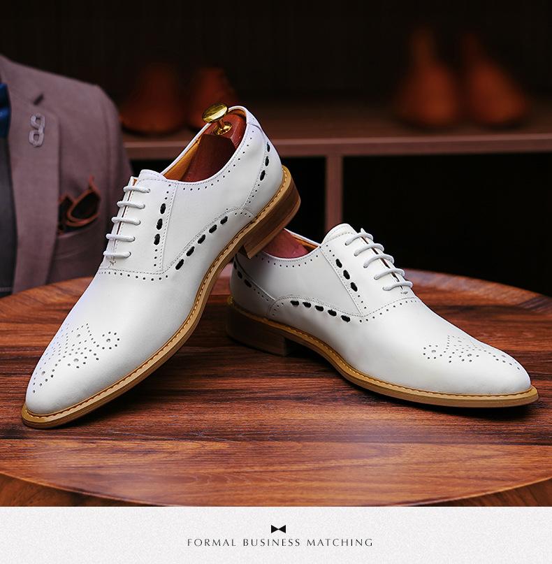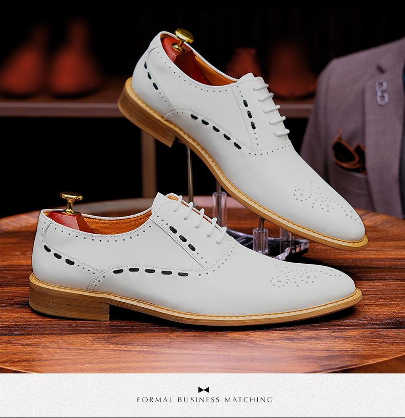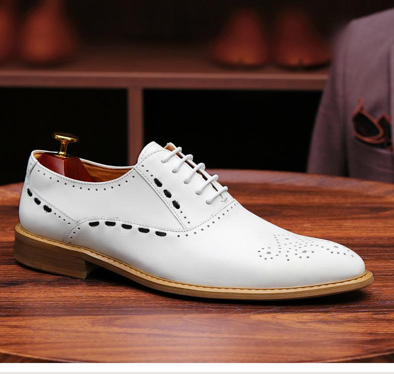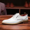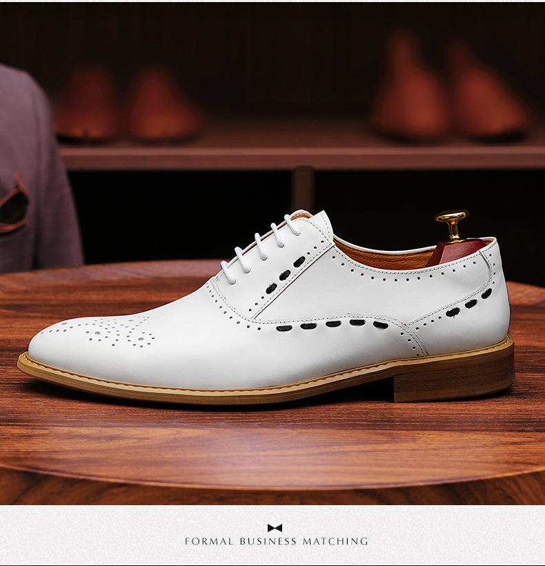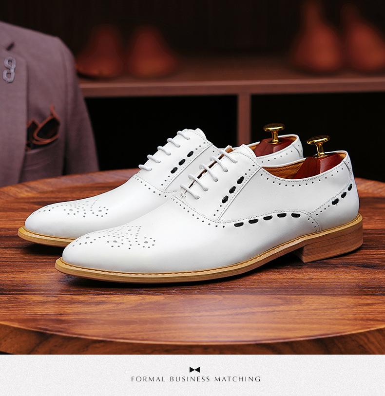 Zapatos formales de cuero para hombre, de estilo británico, de cuero genuino, blancos, para boda, novio, padrino, con brogue tallado.
