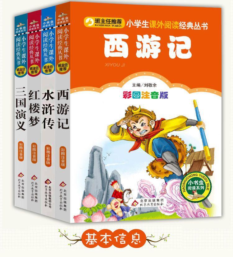 Edición para alumnos Zhuyin Tabla de colores 4 Libro Viaje al Oeste Un sueño en las mansiones rojas Romance de los Tres Reinos Margen de agua [Recomendado por el director]
