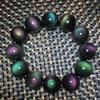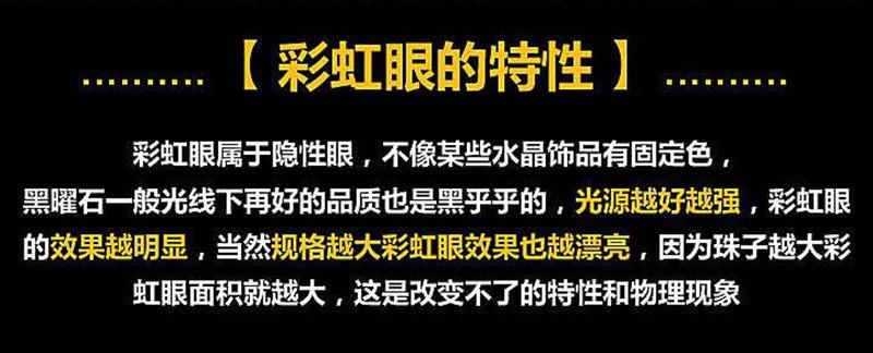 Cada cuenta tiene su propio color. Los ojos de color de la obsidiana natural son invisibles. Debe girar la cuenta bajo luz fuerte o la linterna de un teléfono móvil para ver claramente los ojos de arcoíris de doble cara. Bajo luz natural, es negra.