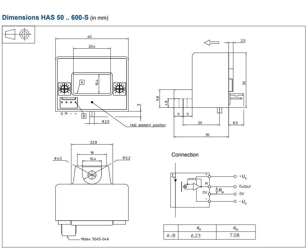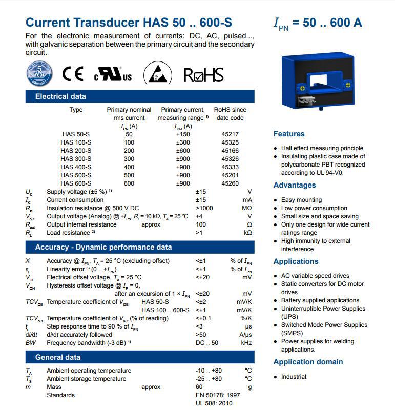 Has200-S Lem/Llem Transformador de Corriente Hall Sensor de Corriente de Anillo Abierto Nominal 200A Nuevo