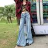 Pantalones vaqueros ajustados de cintura alta para mujer, pantalones acampanados estilo Hong Kong de corte entallado y cintura alta para estudiantes en primavera y otoño de 2021.