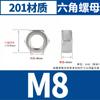 | Tuerca de acero inoxidable 201, tuerca hexagonal exterior, DIN934, tapa de tornillo, tapa de perno M3/M4/M5/M6 |