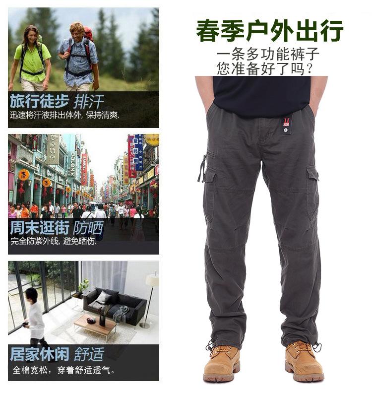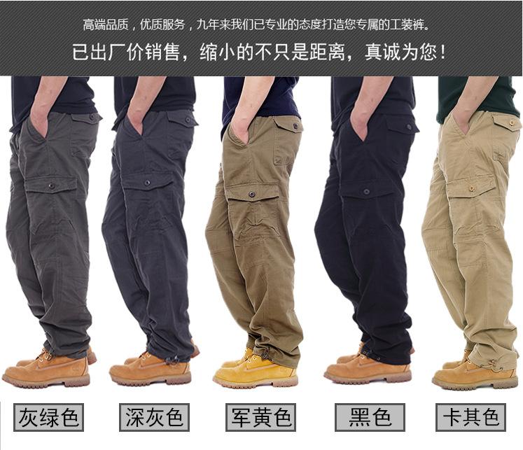 Pantalones casuales de algodón de comercio exterior para hombre, pantalones de cintura elástica de talla grande, pantalones holgados con múltiples bolsillos, pantalones de obra