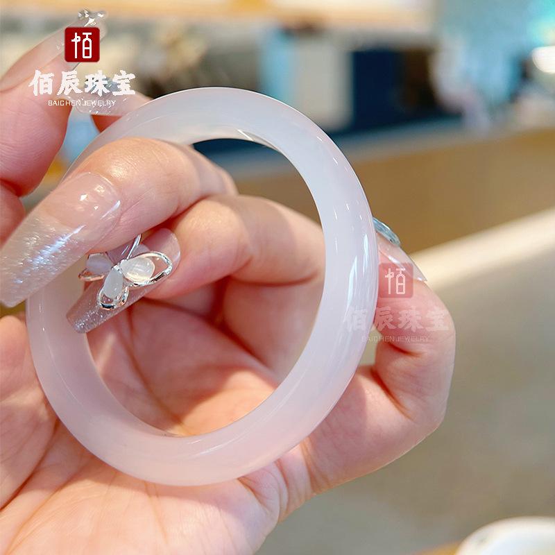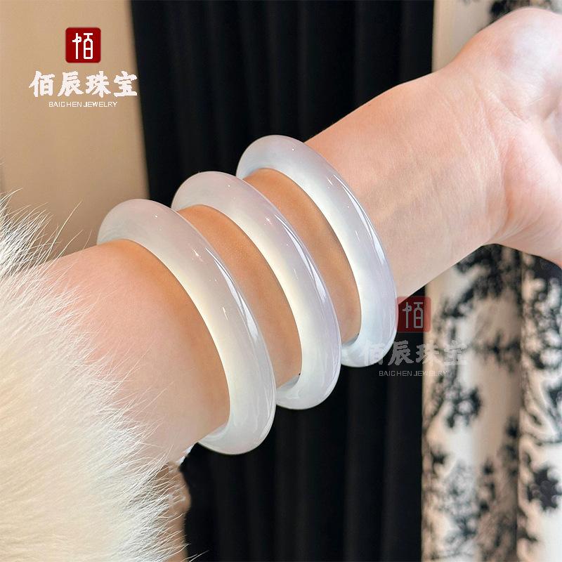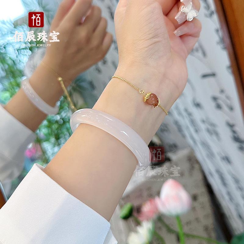 Pulsera de Calcedonia Luz de Luna Blanca Natural, Pulsera de Jade Hielo, Pulsera de Ágata Gelatina de Lichi, Pulsera de Jade para Mujer Estilo Chino