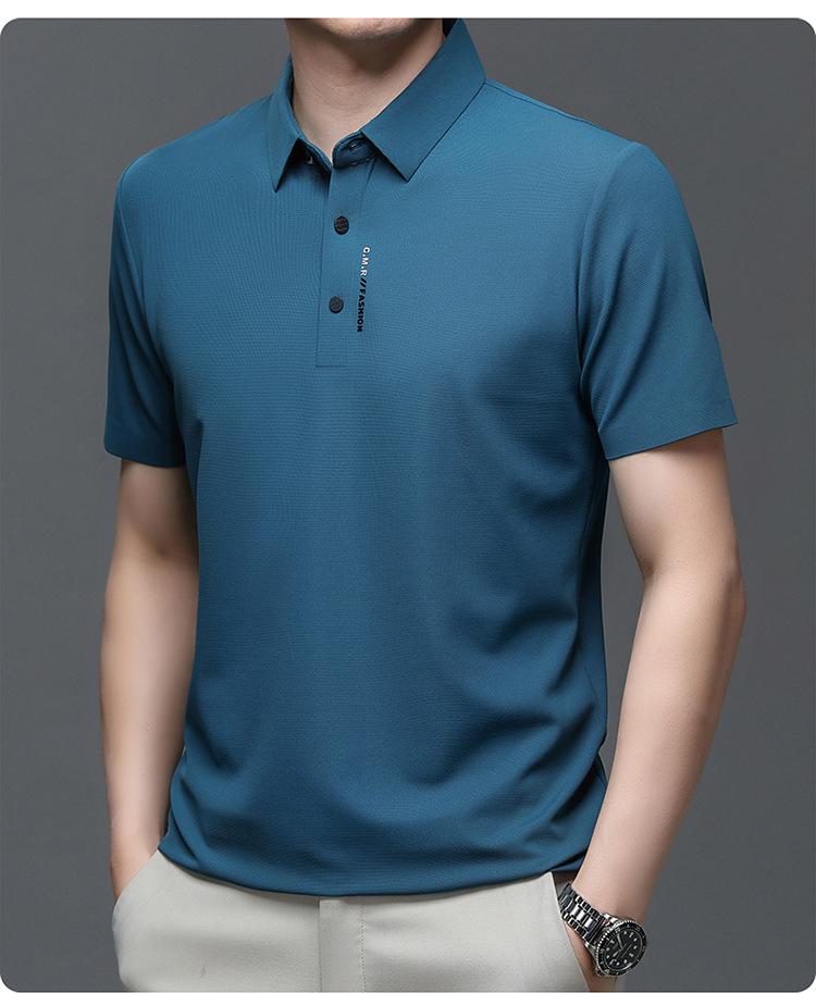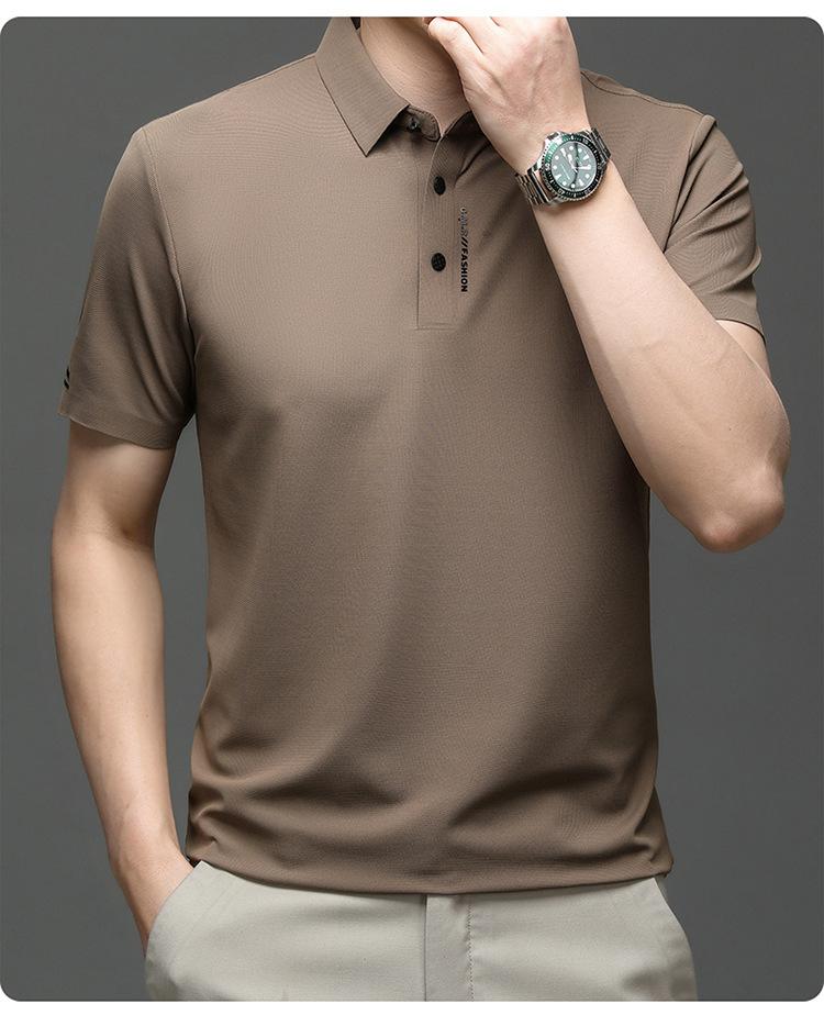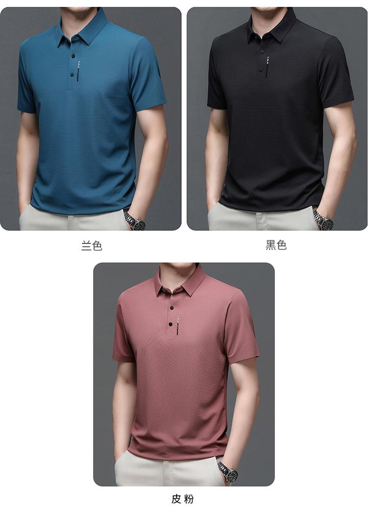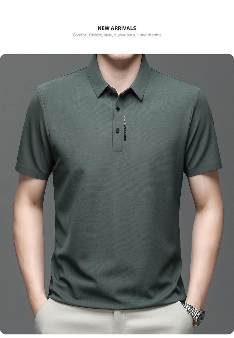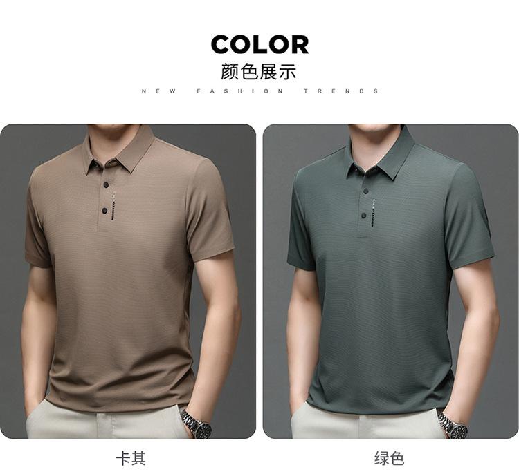 Polo de manga corta para hombre, verano 2023, nueva camiseta de seda de hielo fina y ajustada con solapa para hombre, marca de moda.