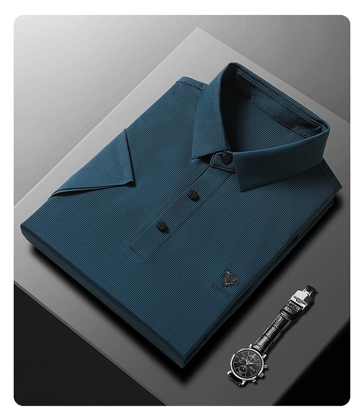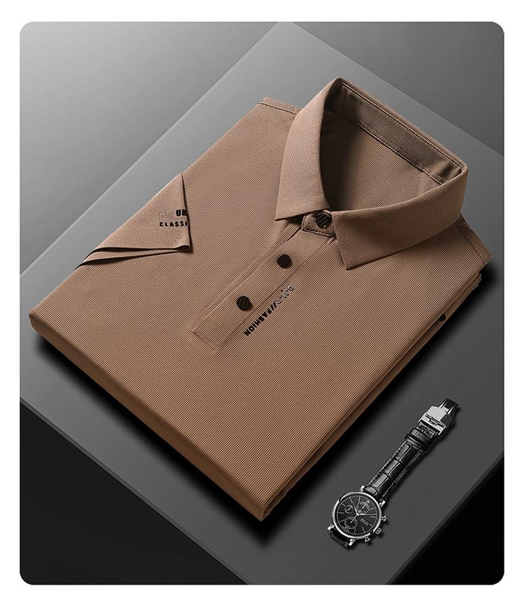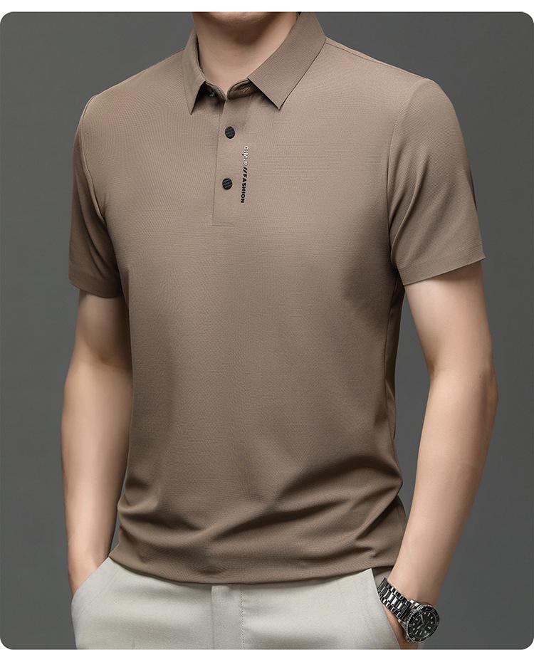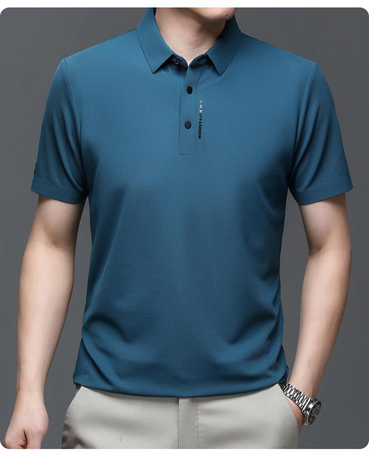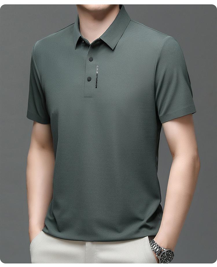 Polo de manga corta para hombre, verano 2023, nueva camiseta de seda de hielo fina y ajustada con solapa para hombre, marca de moda.