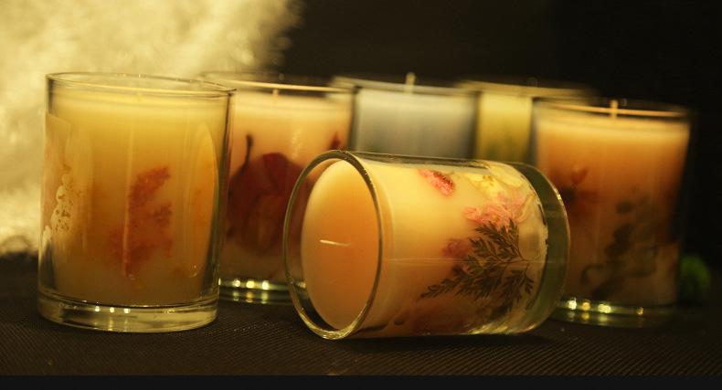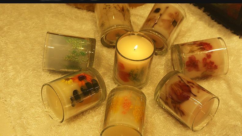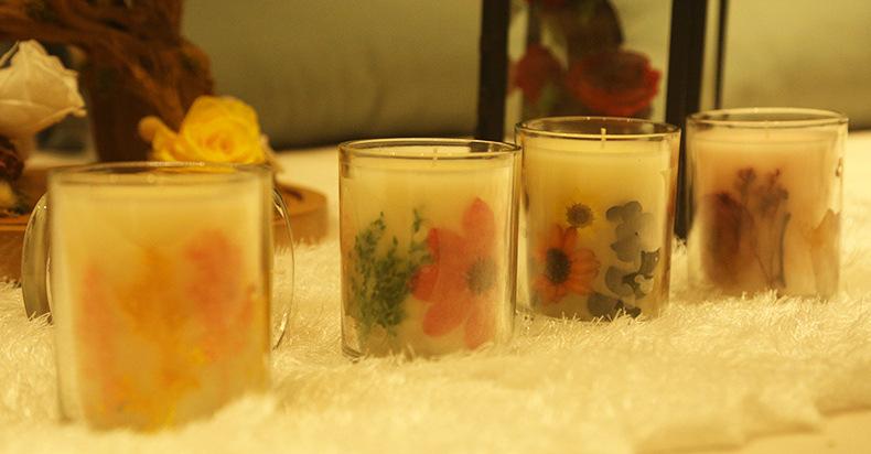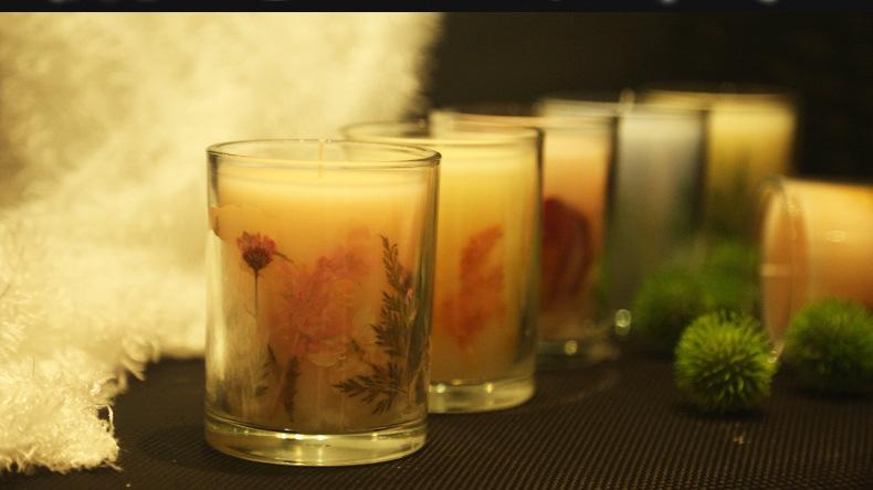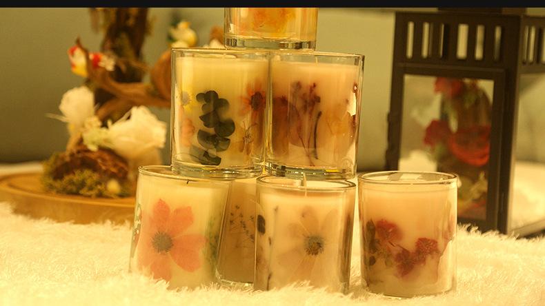Vela de aromaterapia de cera de soja de vidrio, vela floral, vela aromática para festivales, bodas y celebraciones, se puede hacer como regalo.