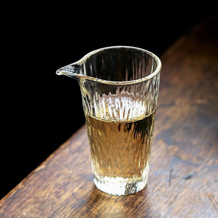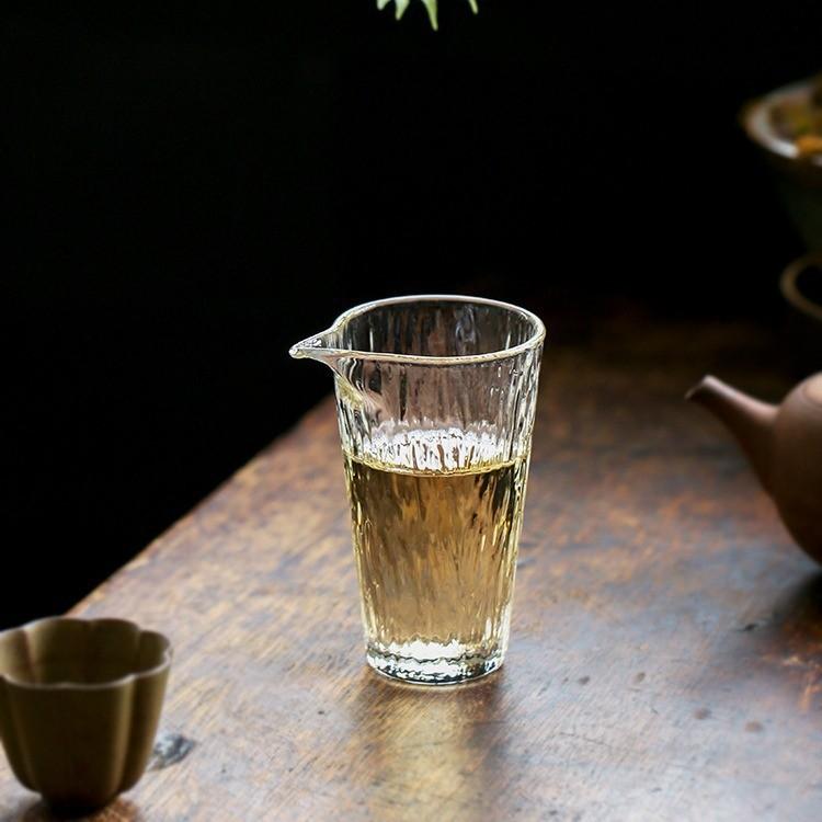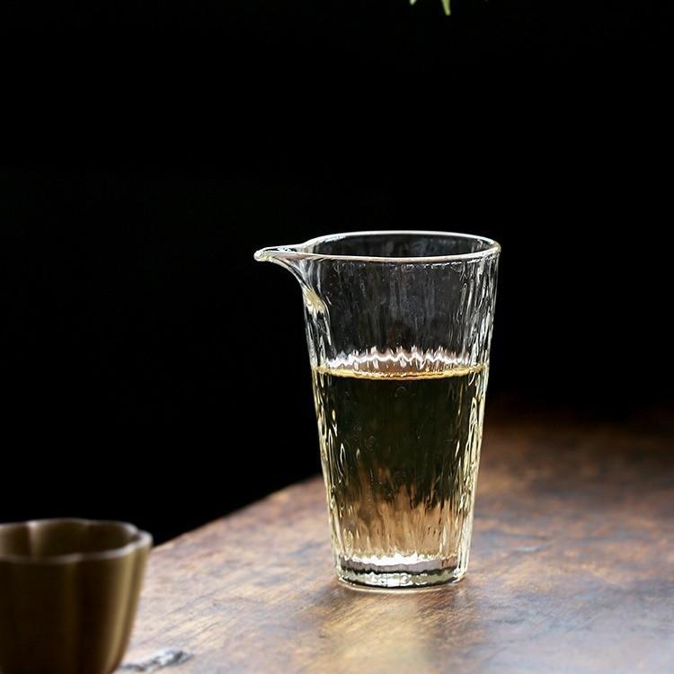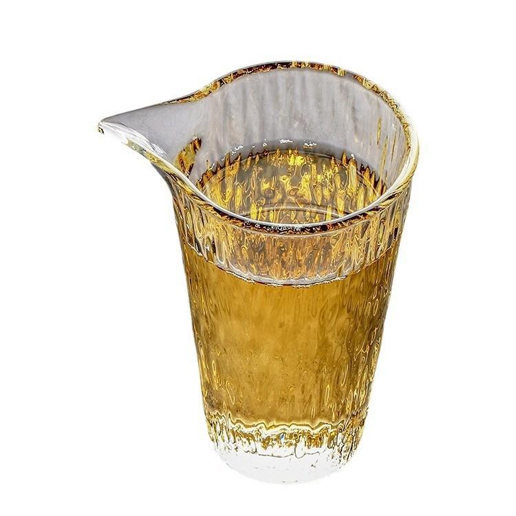 Dispensador de té de vidrio de borosilicato al por mayor de fábrica, juego de té de kung fu para el hogar, patrón creativo de corteza, patrón de martillo de mar, taza de feria