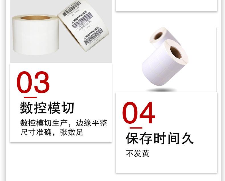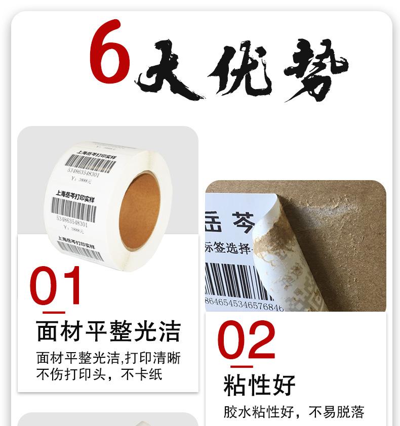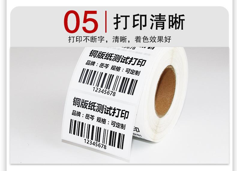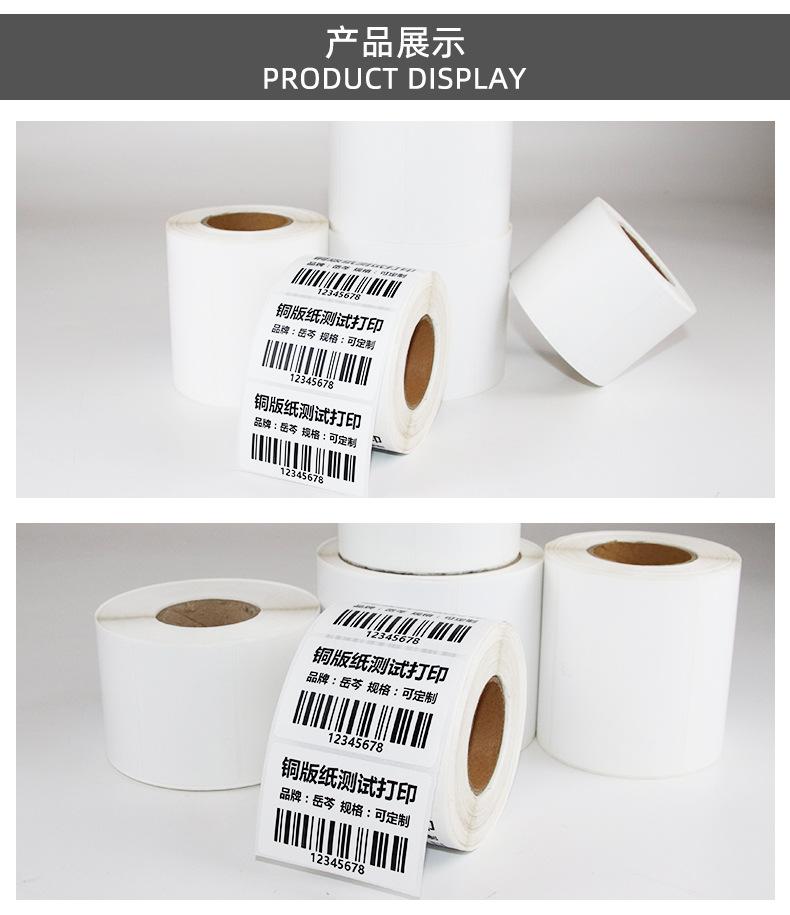 Etiqueta adhesiva de papel recubierto en blanco 100 90 80, etiqueta de código de barras, papel, certificado de ropa, cinta adhesiva de impresión de carbono