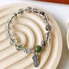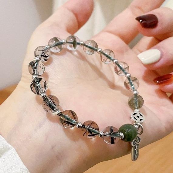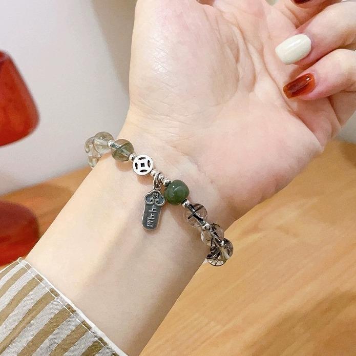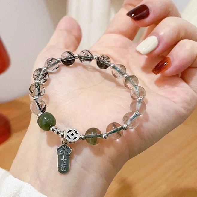 Pulsera de jade hetiano de cristal de cabello negro fantasma verde natural para mujer, plata esterlina, símbolo Jiyun, estilo nacional, nueva pulsera china, regalo
