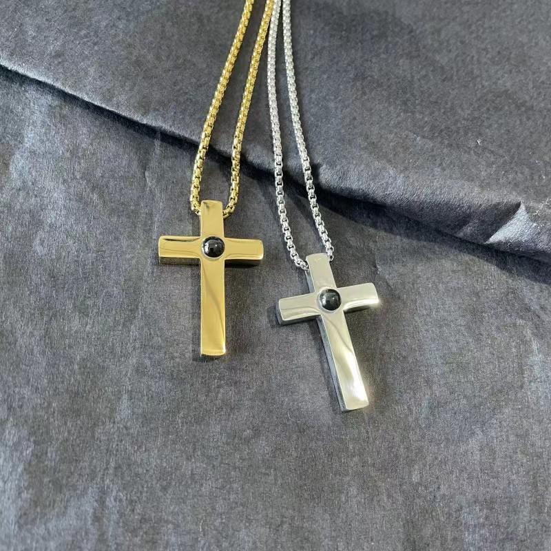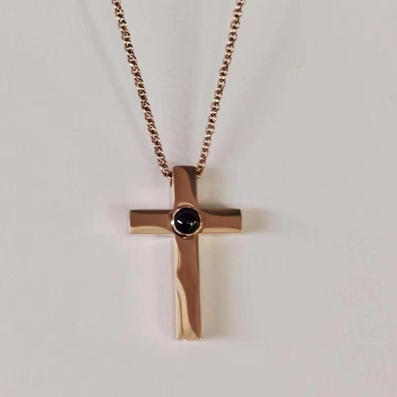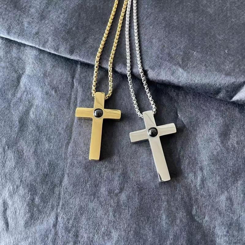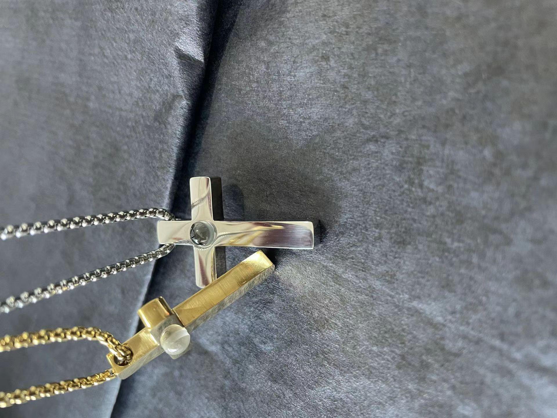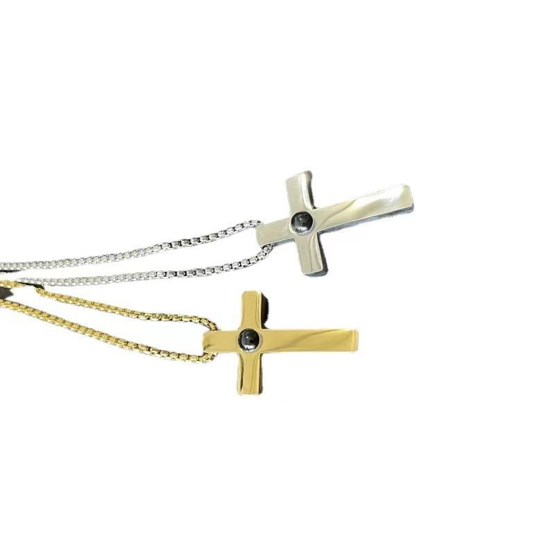 Collar con proyección cruzada de acero de titanio de gran venta en Europa y América, con personalización gráfica de "Te amo" en 100 idiomas, cadena de clavícula para pareja