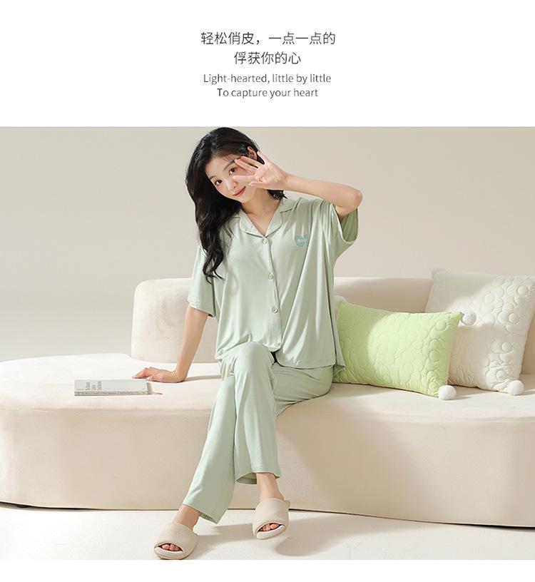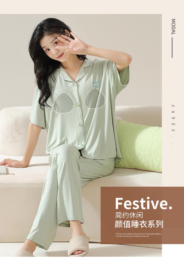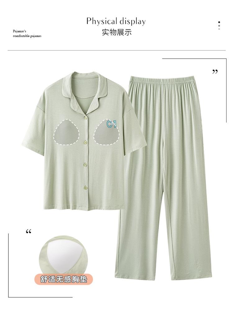 Pijamas con almohadilla para el pecho, pantalones de verano de modal de manga corta para mujer, ropa de abrigo informal sencilla, ropa de casa, traje al por mayor