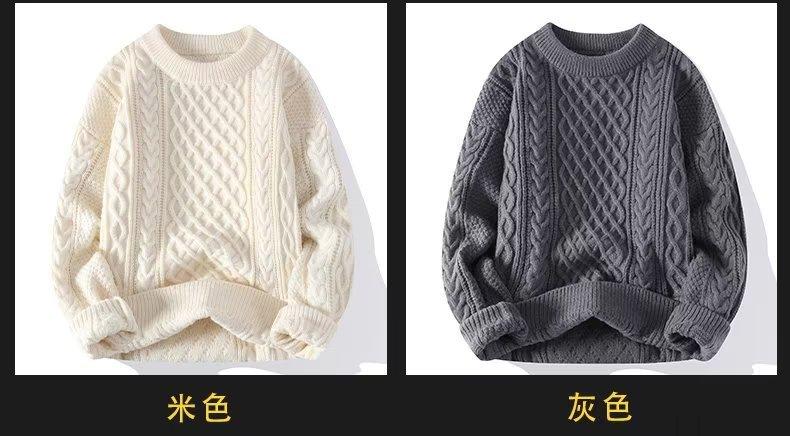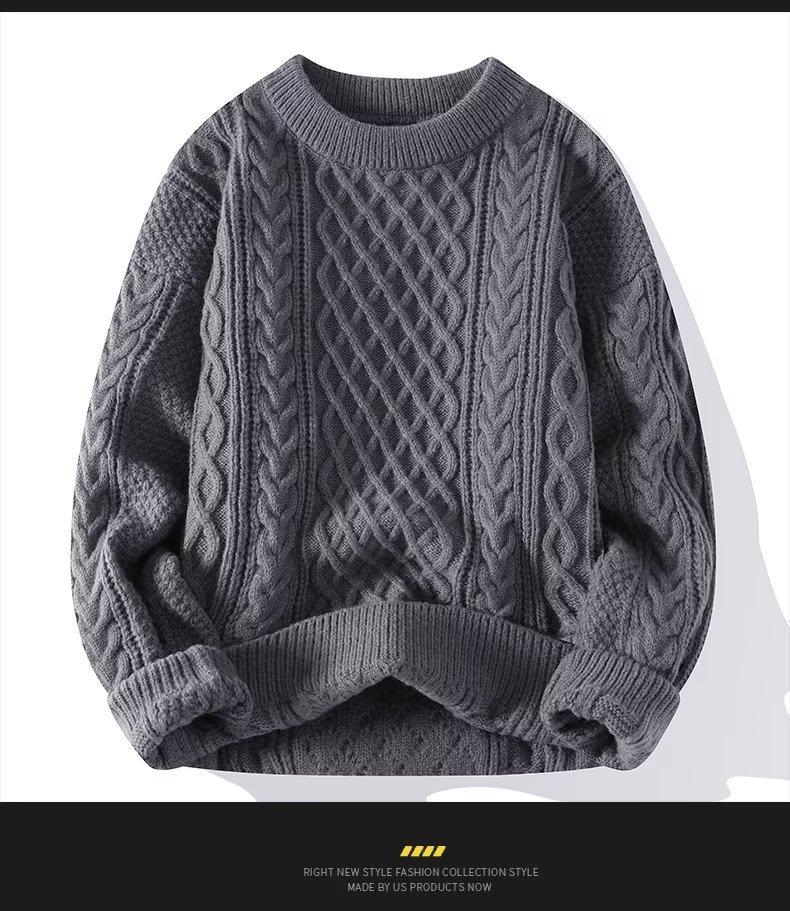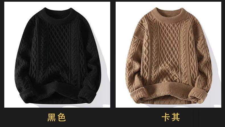 Otoño e Invierno nuevo suéter de punto trenzado para hombre casual que combina con todo estilo maduro ligero suéter de color sólido para hombre cuello redondo jersey top