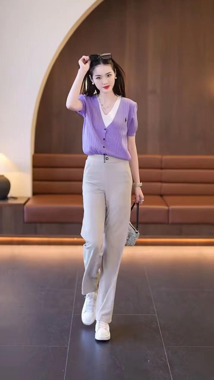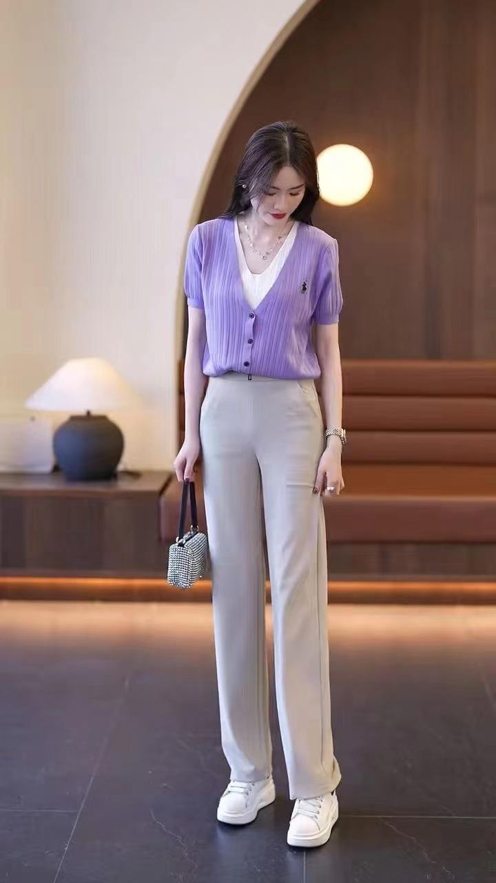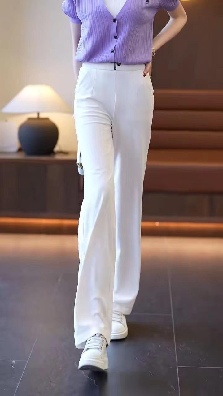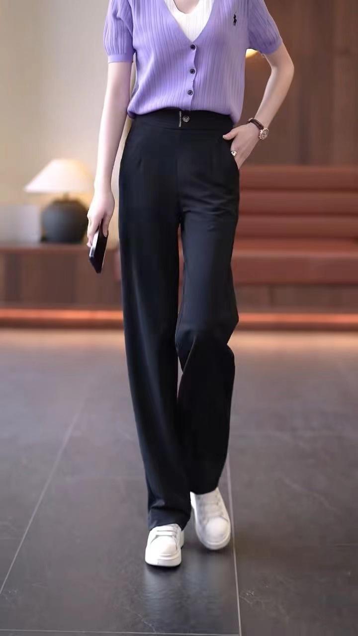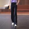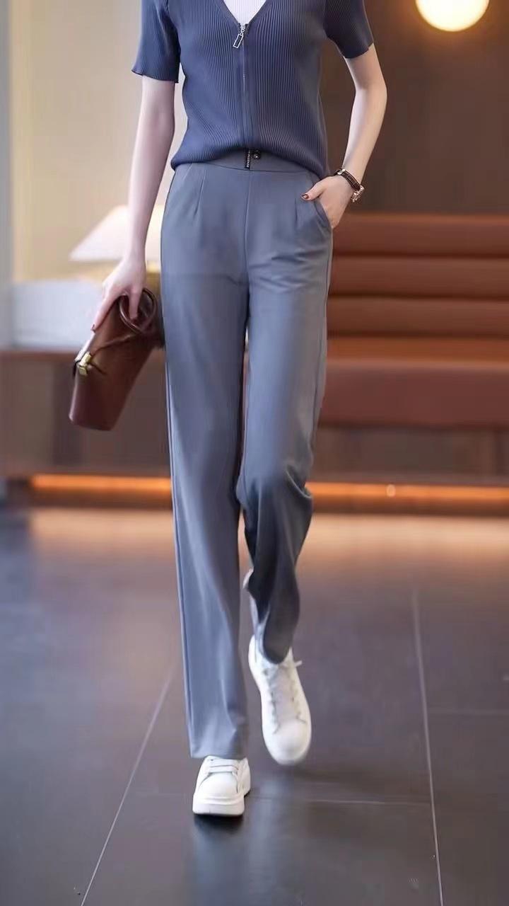 Pantalones anchos y estrechos para mujer, verano 2024, nuevos pantalones adelgazantes de cintura alta para pantalones rectos de seda fina de hielo pequeños.