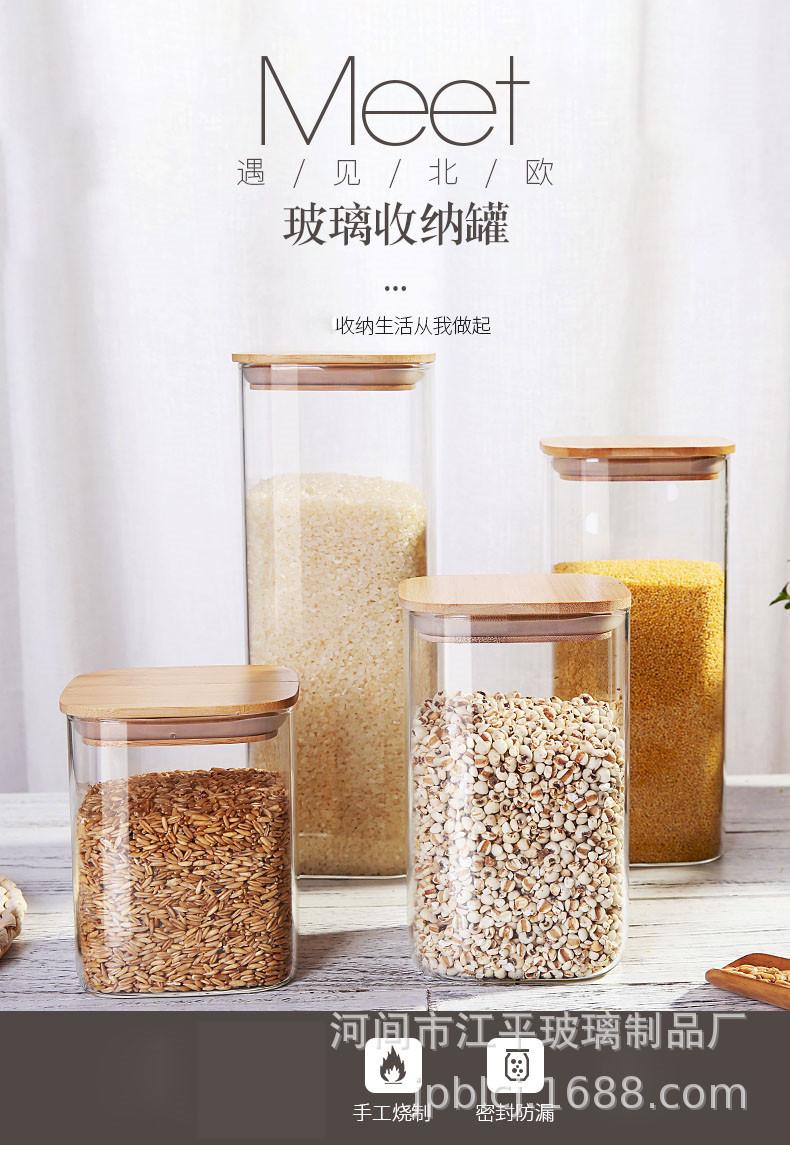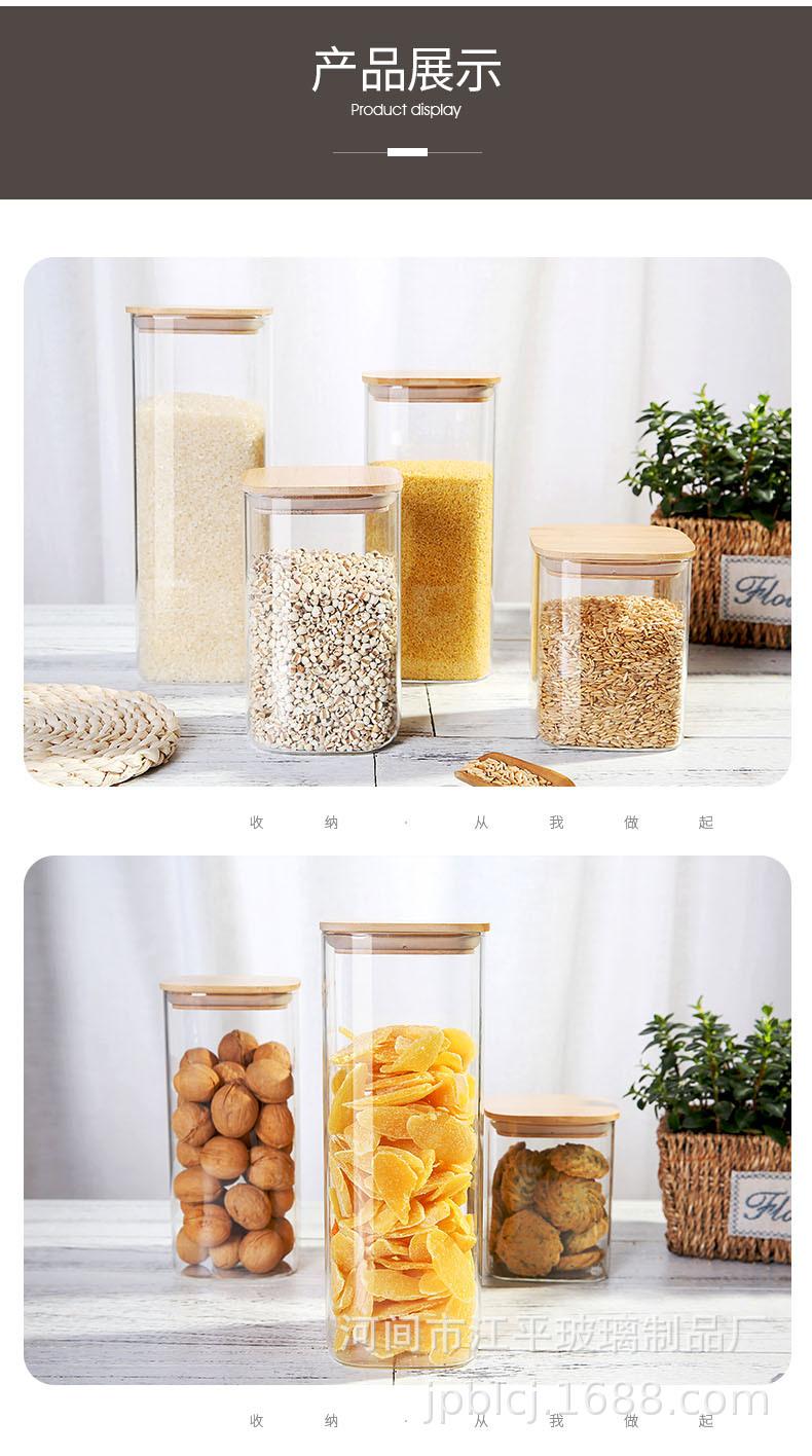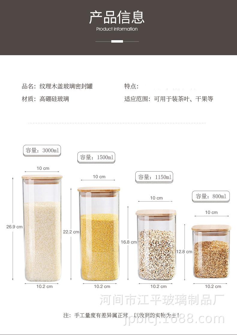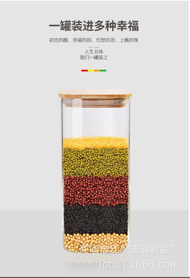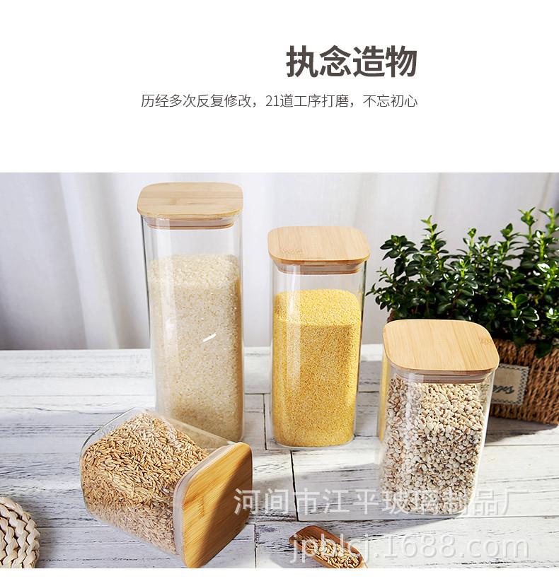 Tarro cuadrado de vidrio sellado para almacenamiento de té en la cocina del hogar, con tapa, tarro de almacenamiento multigrano a prueba de humedad, transparente