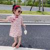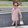 (Liquidación) Falda Cheongsam para Niñas 2025 Verano Nuevo Estilo Nacional Infantil Dinastía Han Manga Abullonada Vestido Floral