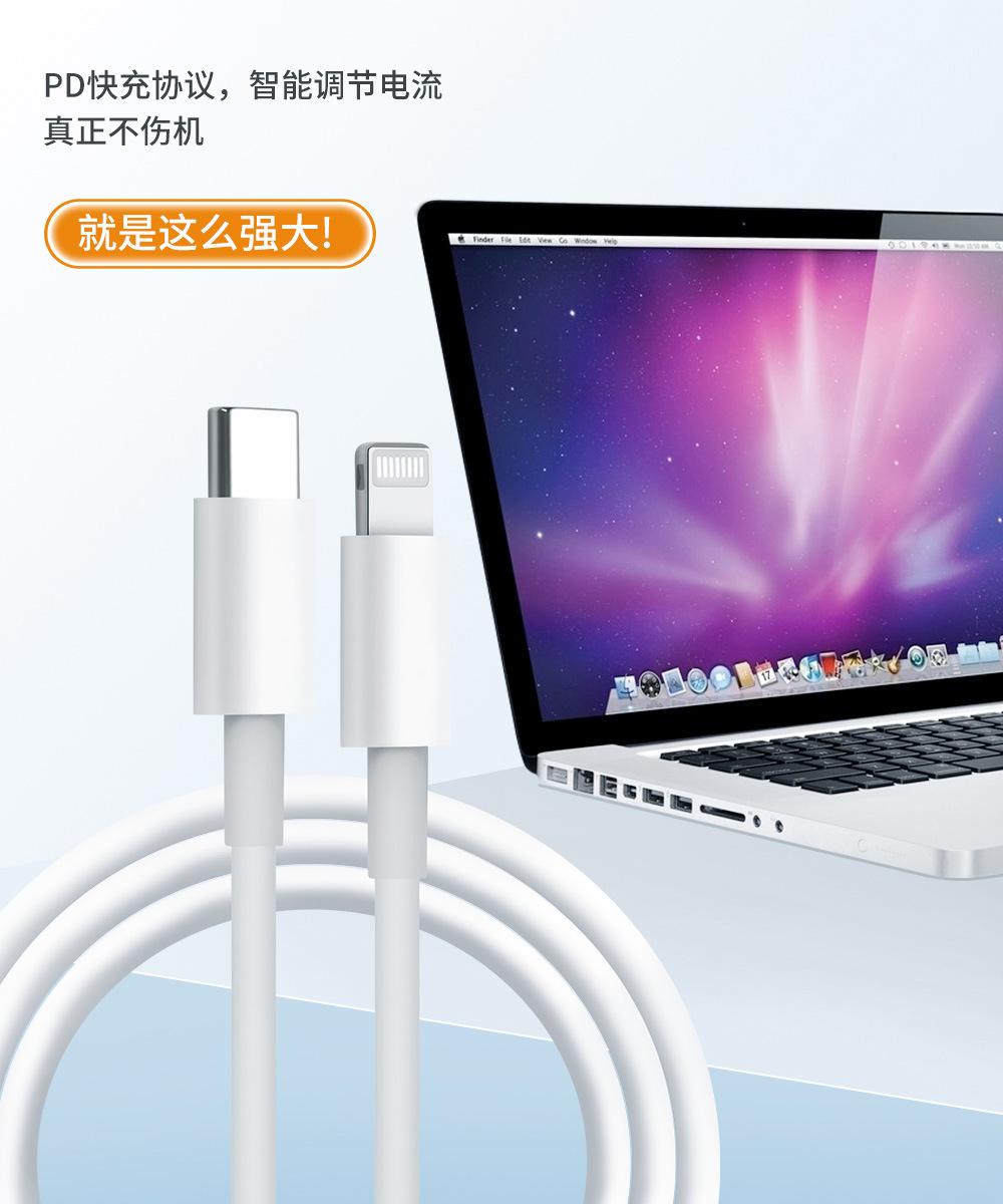 Cable de Carga Rápida PD Cargador de 20W Adecuado para iPhone13 Cable de Datos Cable de Carga Lightning Apple USB