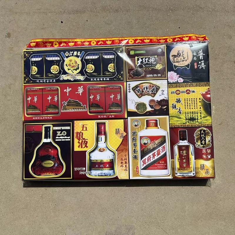 Caja de regalo al por mayor de fábrica, tabaco, vino, dulces, fruta, suministros para sacrificios ancestrales, papel para quemar en el Día de los Caídos del quinto al séptimo aniversario.
