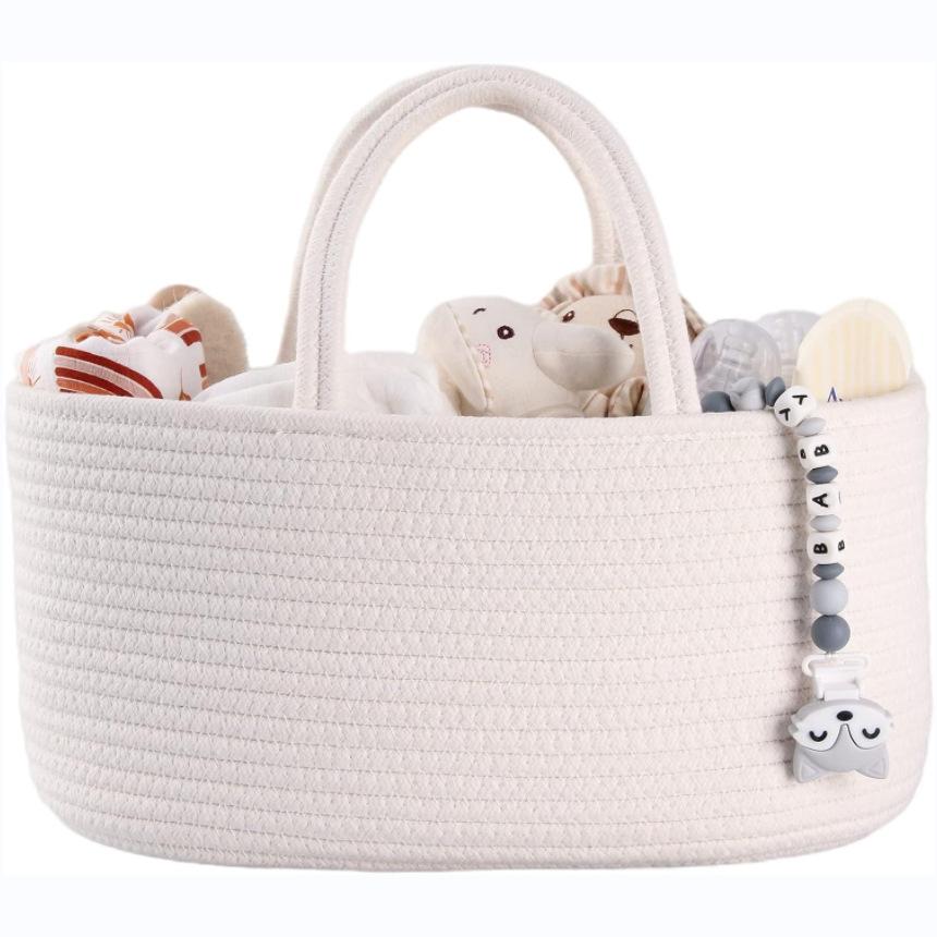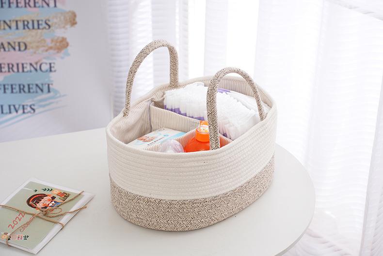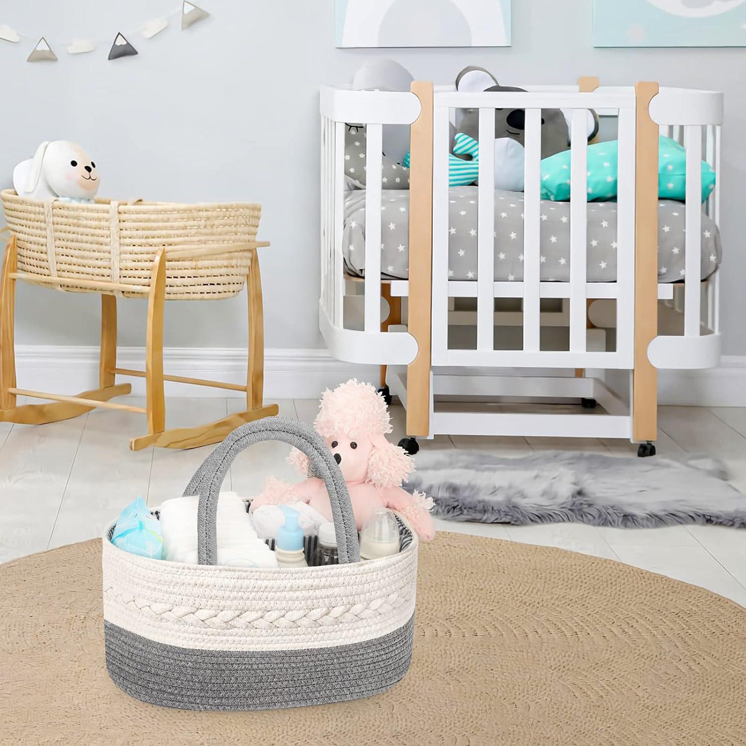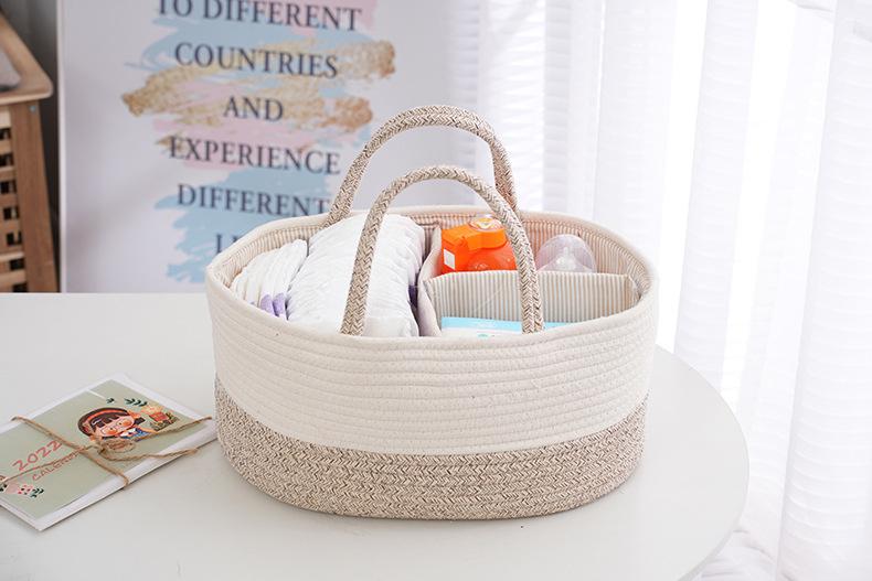 Caja de almacenamiento de pañales, cesta grande de algodón para bebé, organizador portátil para coche, partición extraíble