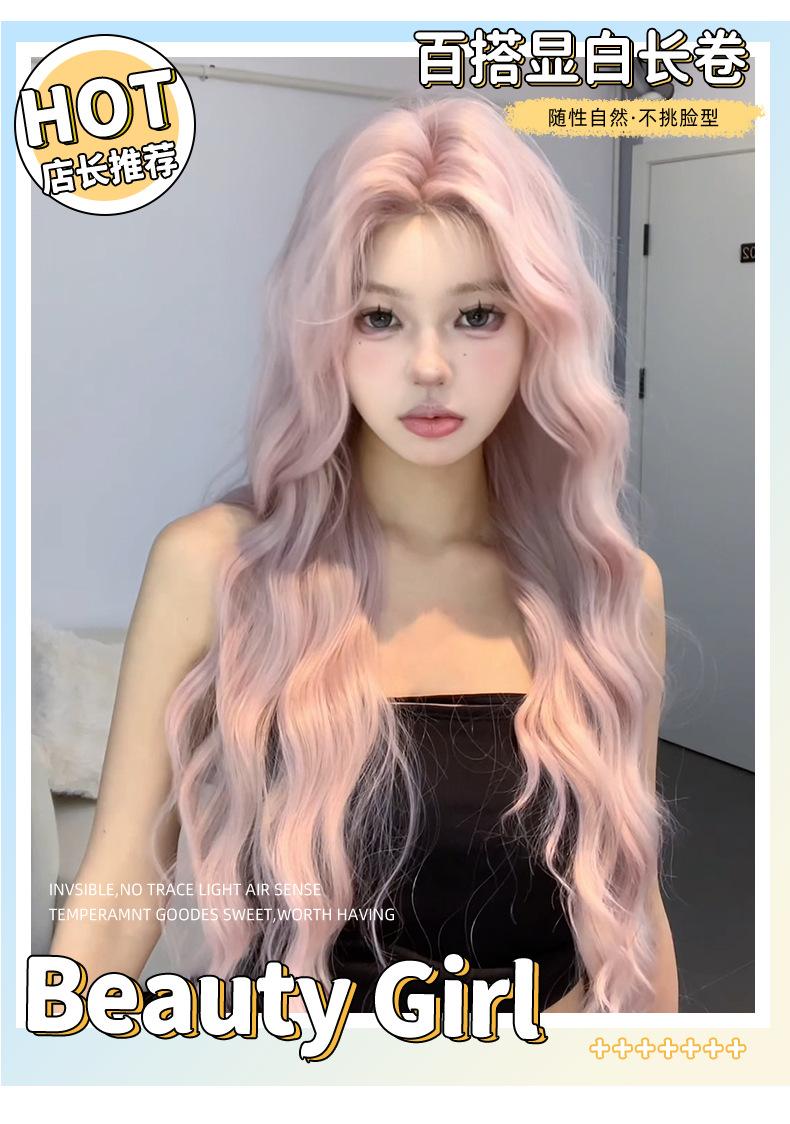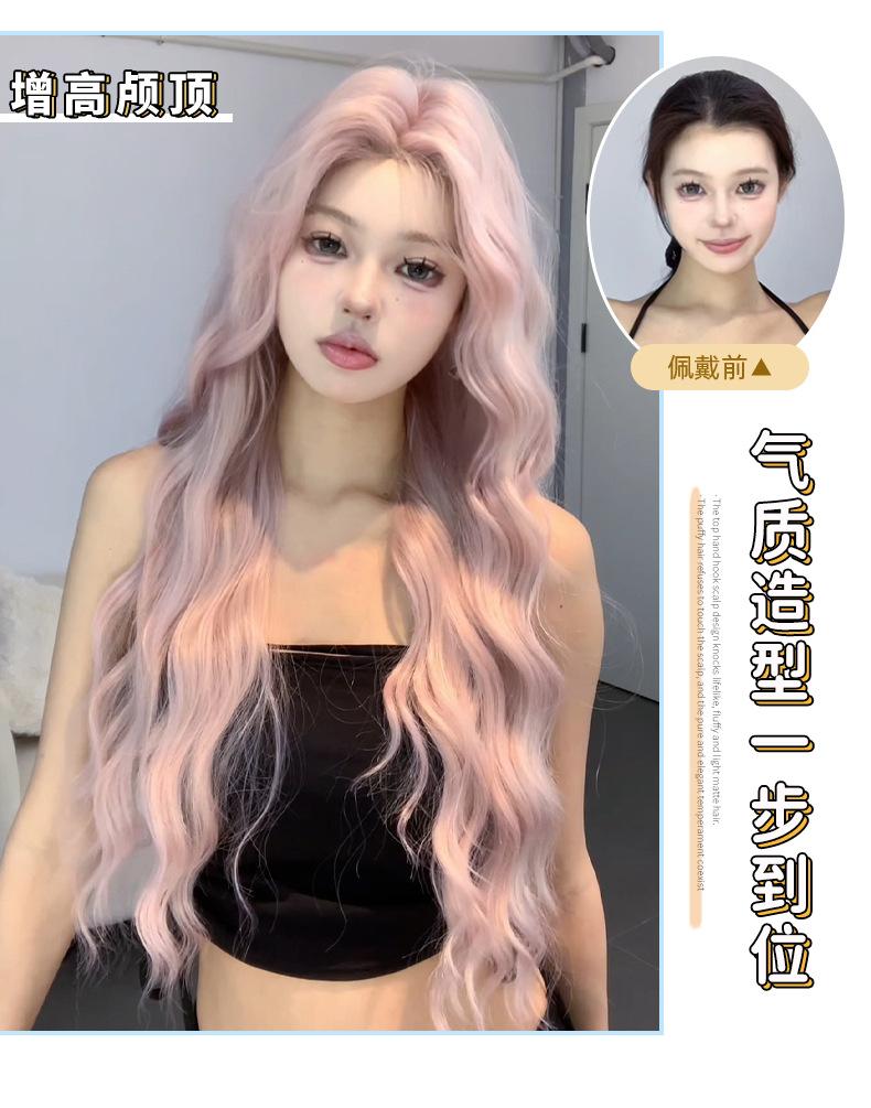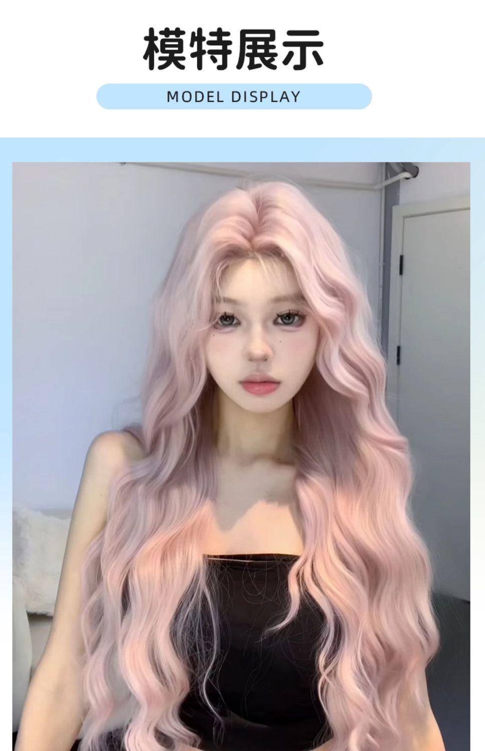 Peluca de encaje frontal para mujer, cabello largo ondulado, estilo coreano, con simulación de temperamento, peluca de estilo coreano de ensueño natural, cubierta completa para la cabeza.