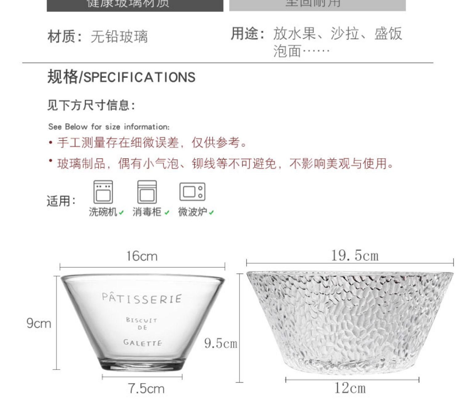 Tazón de vidrio para el hogar, tazón de fideos instantáneos, tazón de fideos individual, plato de ensalada para el hogar, lindo tazón de ensalada de frutas, tazón de sopa, vajilla