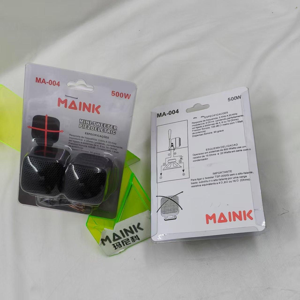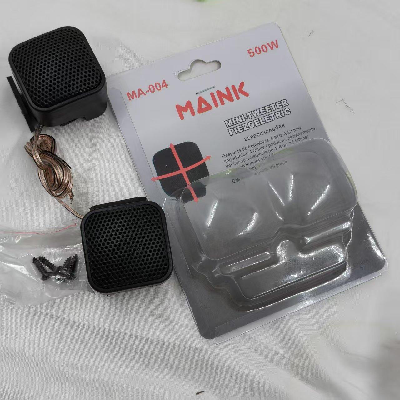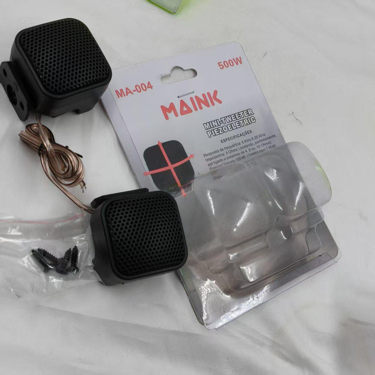 Modelo de producto MA-004A tweeter de coche con pies, se puede fijar, utilizando materiales de bobina de alta calidad, sonido nítido, por favor usar con altavoces para mejor efecto, este tweeter generalmente se pide más para comercio exterior. Este producto viene con tornillos, embalaje blíster, una pieza contiene 200 pares, tamaño de la caja 56*33*44, gran cantidad puede contactar directamente para un precio más favorable. ¡Gracias!