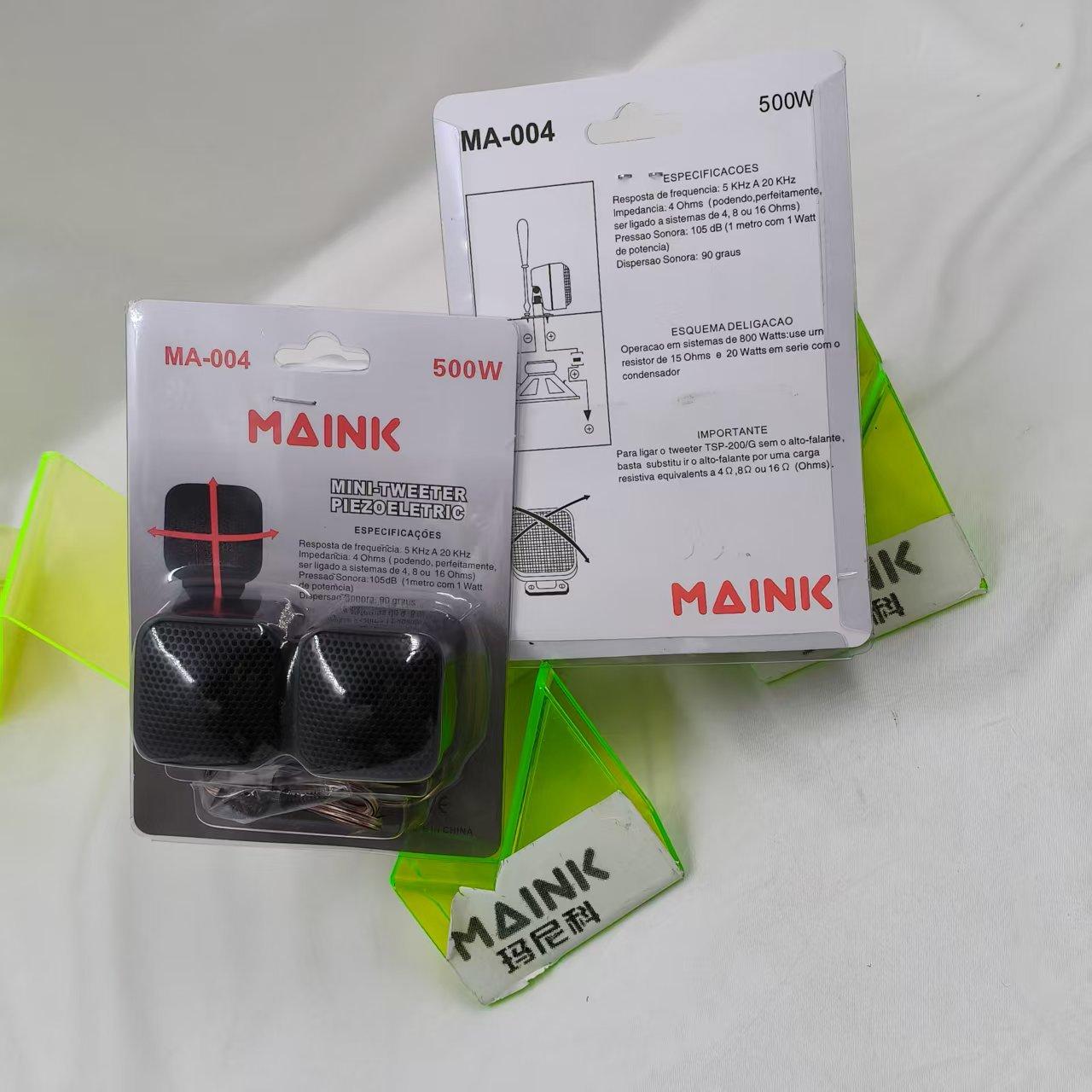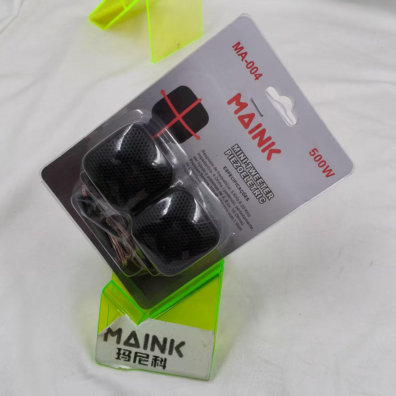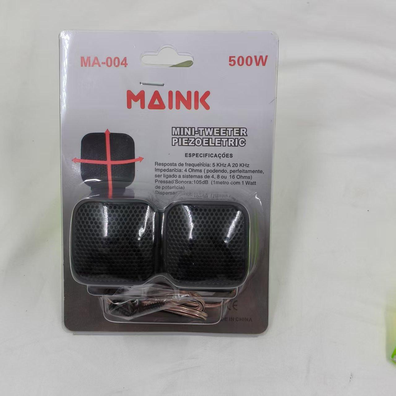 Modelo de producto MA-004A tweeter de coche con pies, se puede fijar, utilizando materiales de bobina de alta calidad, sonido nítido, por favor usar con altavoces para mejor efecto, este tweeter generalmente se pide más para comercio exterior. Este producto viene con tornillos, embalaje blíster, una pieza contiene 200 pares, tamaño de la caja 56*33*44, gran cantidad puede contactar directamente para un precio más favorable. ¡Gracias!