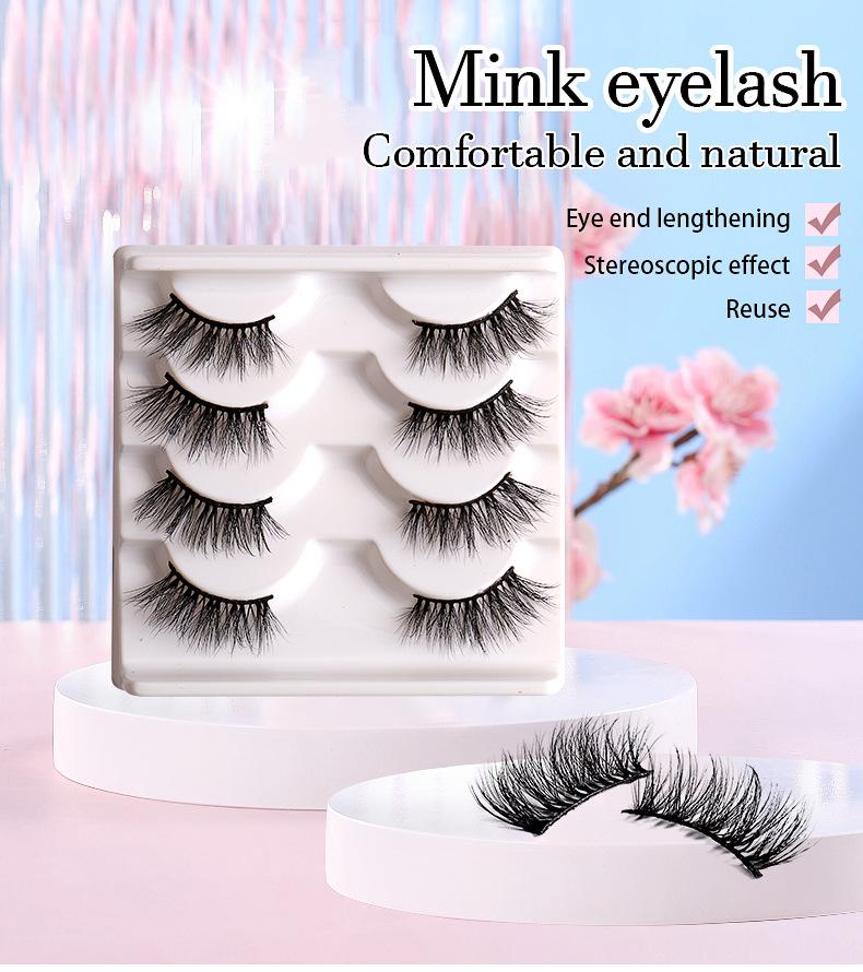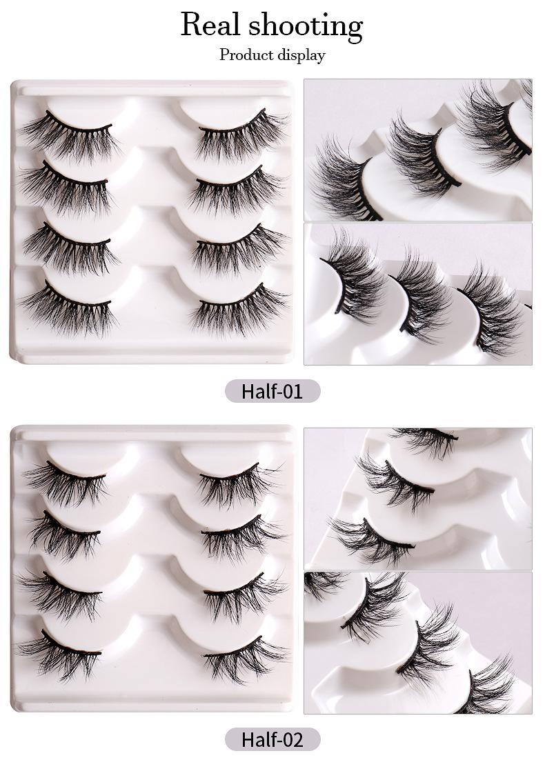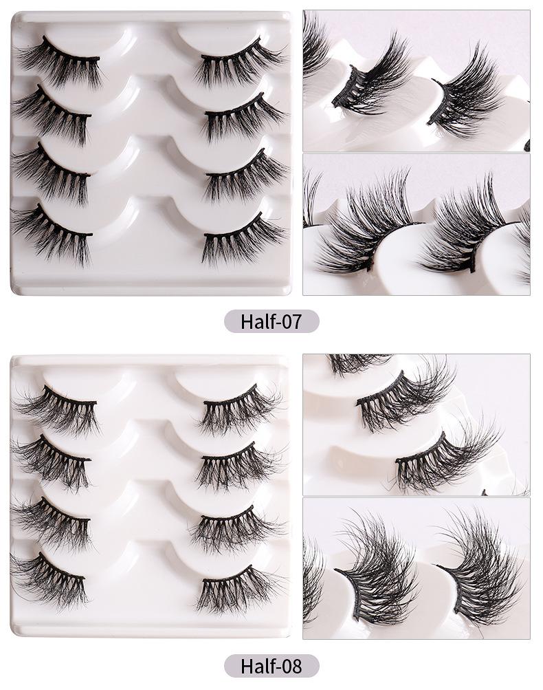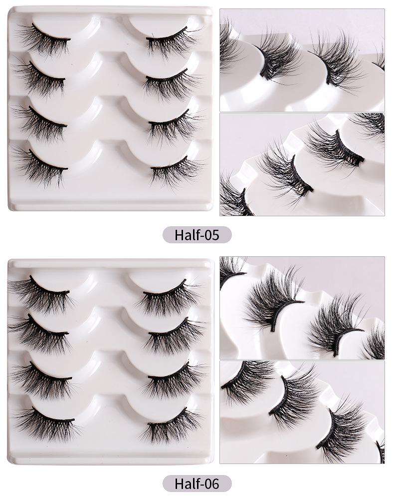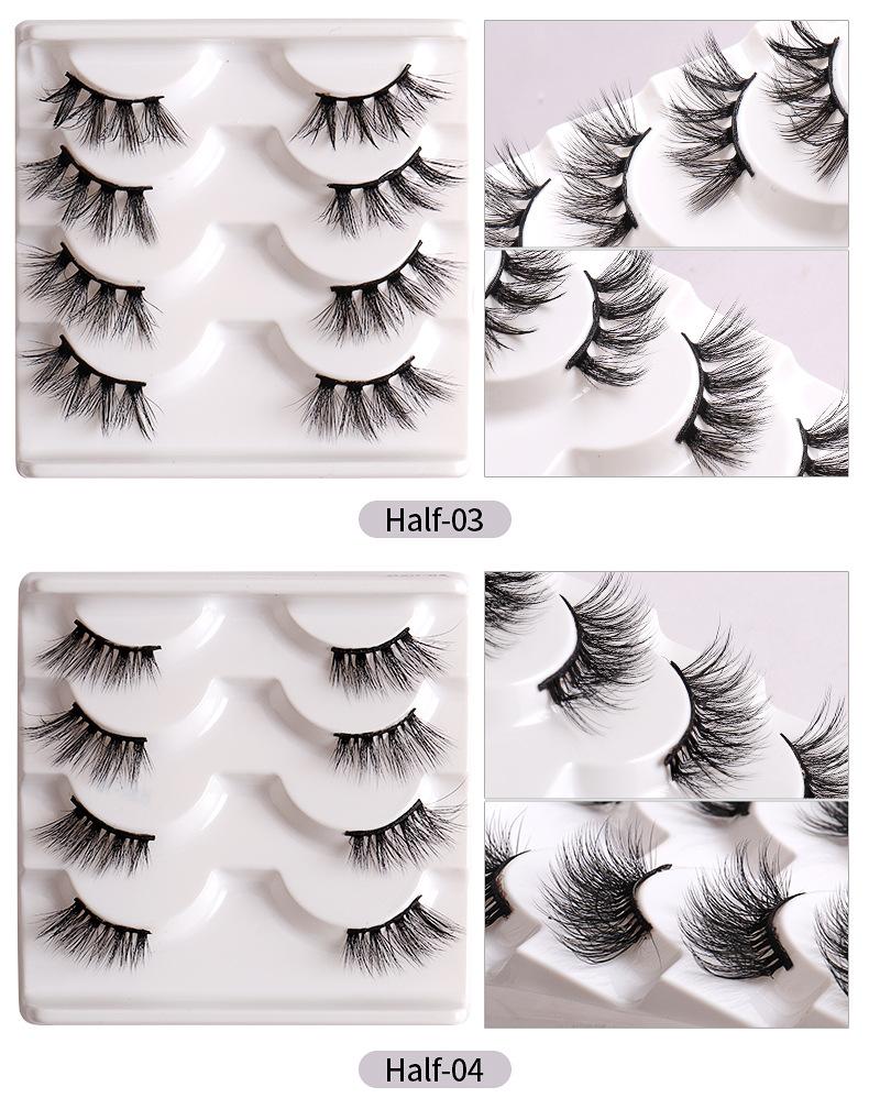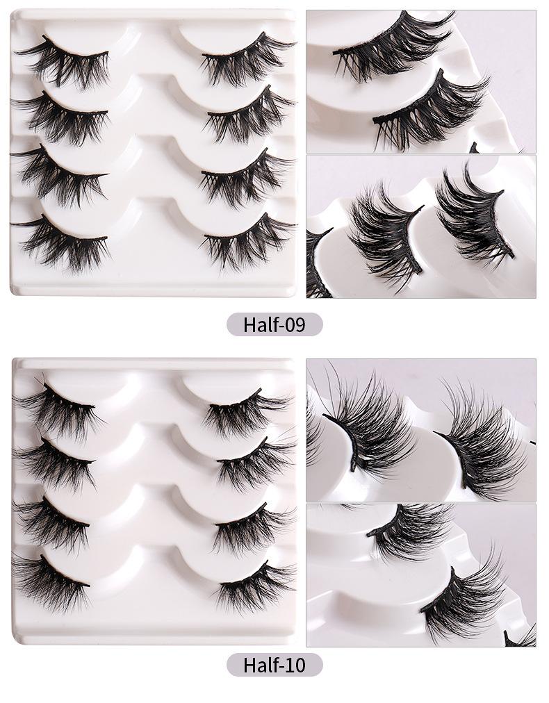 Pestañas Postizas Cola de Golondrina Medio Ojo 4 Pares de Pestañas de Visón de Imitación Natural Pequeño Diablo Ojo Cómico Extensión de Cola Pestañas Superiores