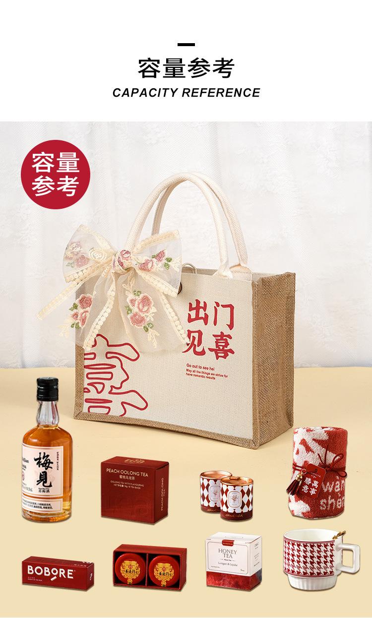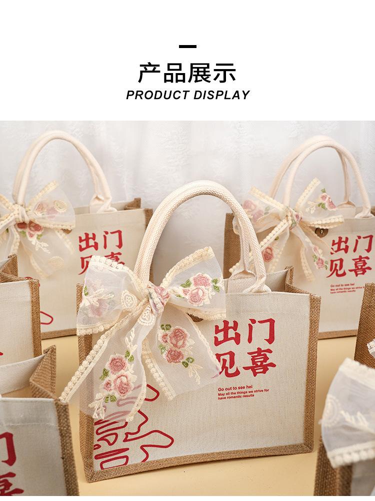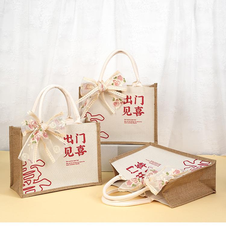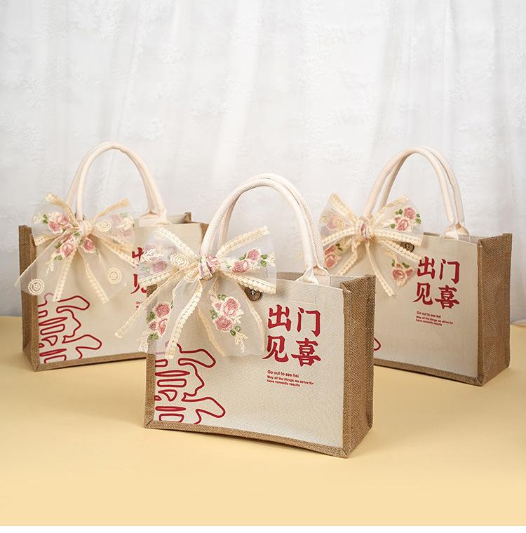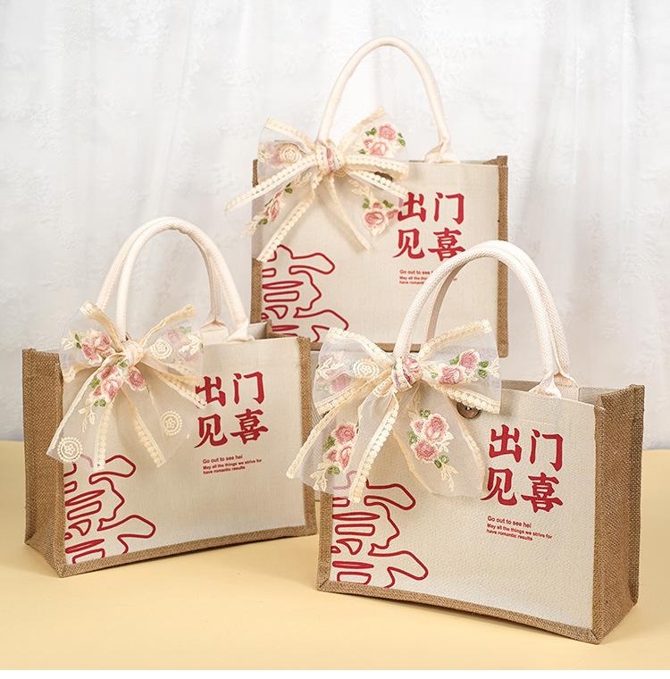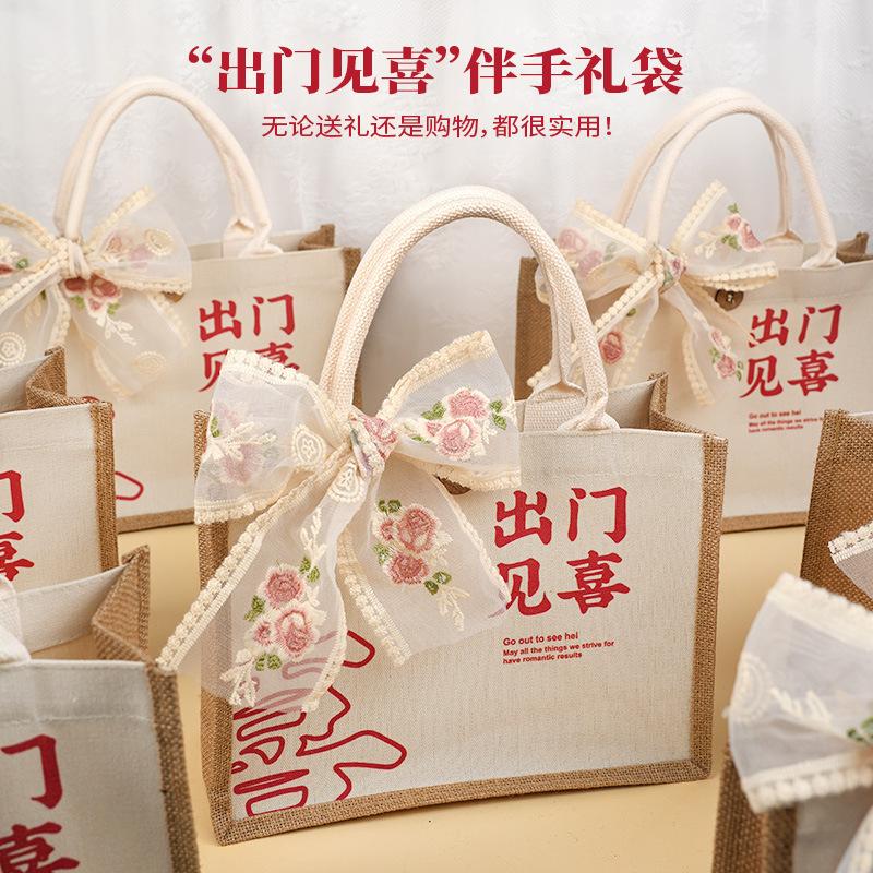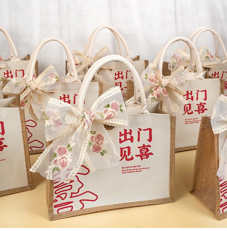 Nueva bolsa de regalo de acompañamiento, caja de regalo, regalo de devolución para damas de honor de alta gama, embalaje de boda, bolsa de regalo de lino al por mayor