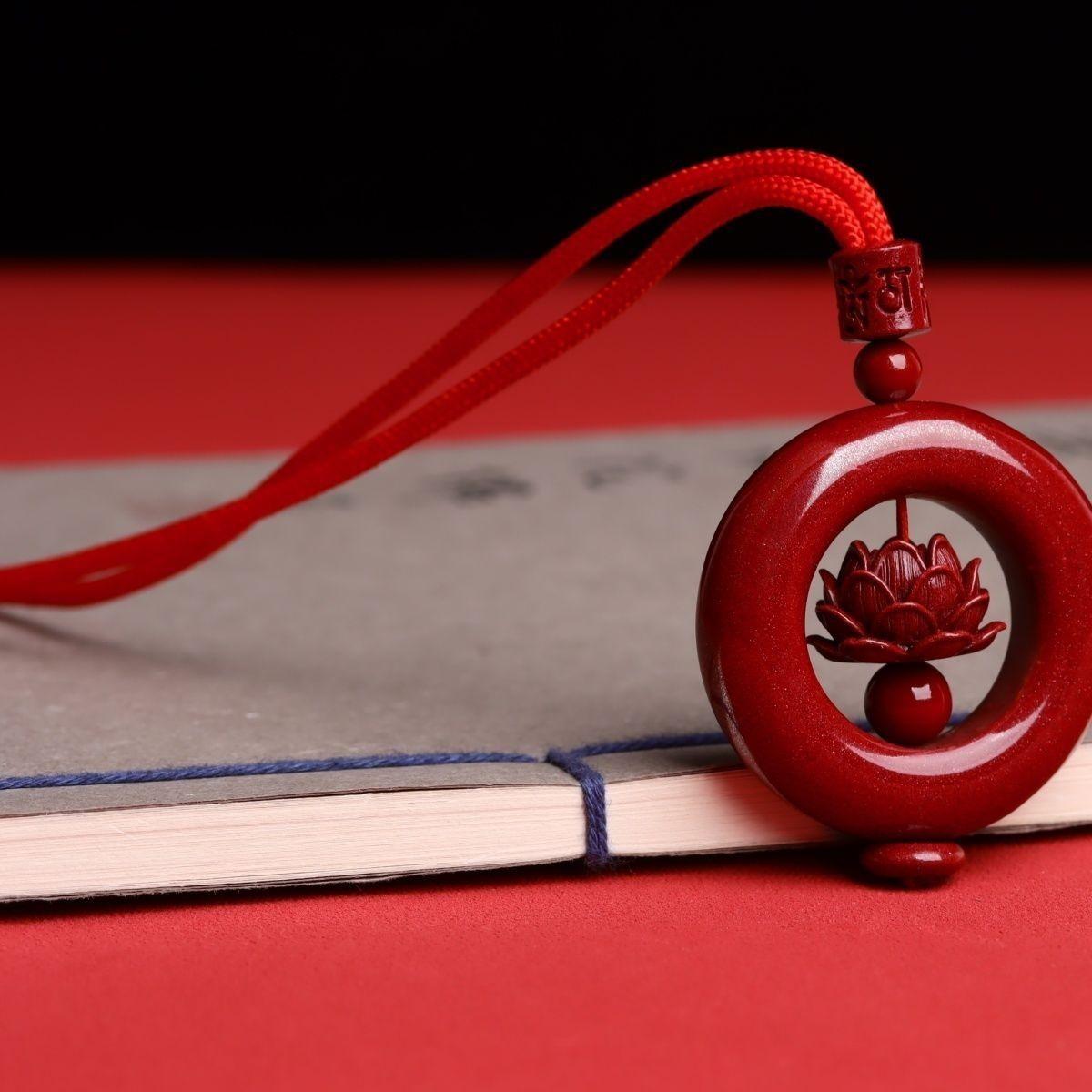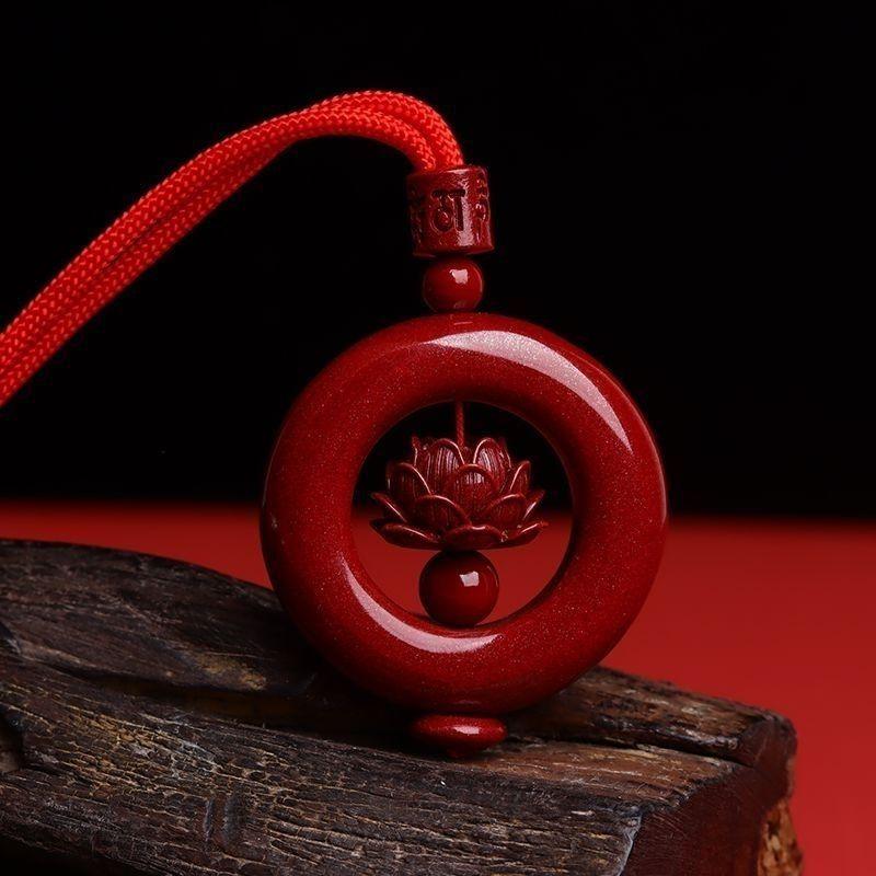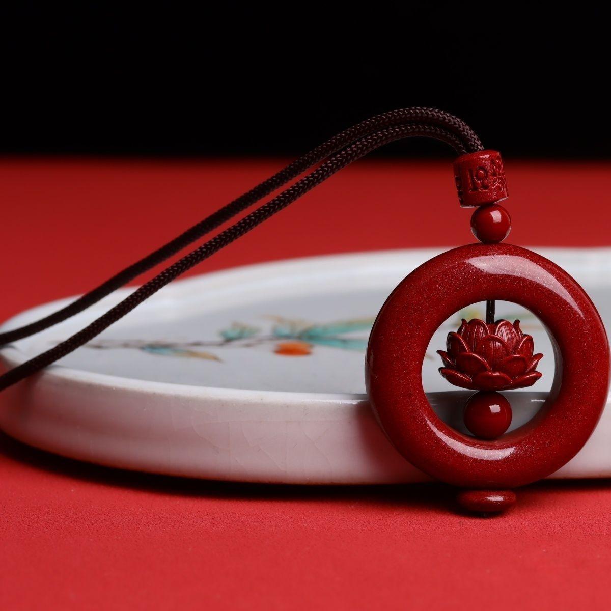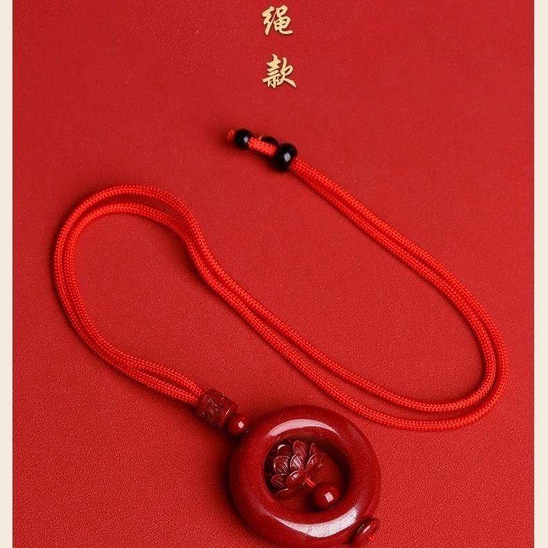 Colgante con hebilla de seguridad de loto de cinabrio natural para hombre y mujer, collar con colgante de cadena de suéter con año animal, regalo para pareja, joyería