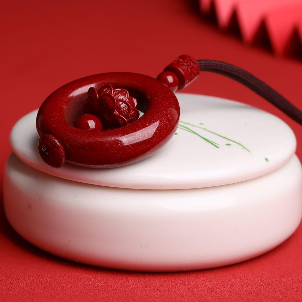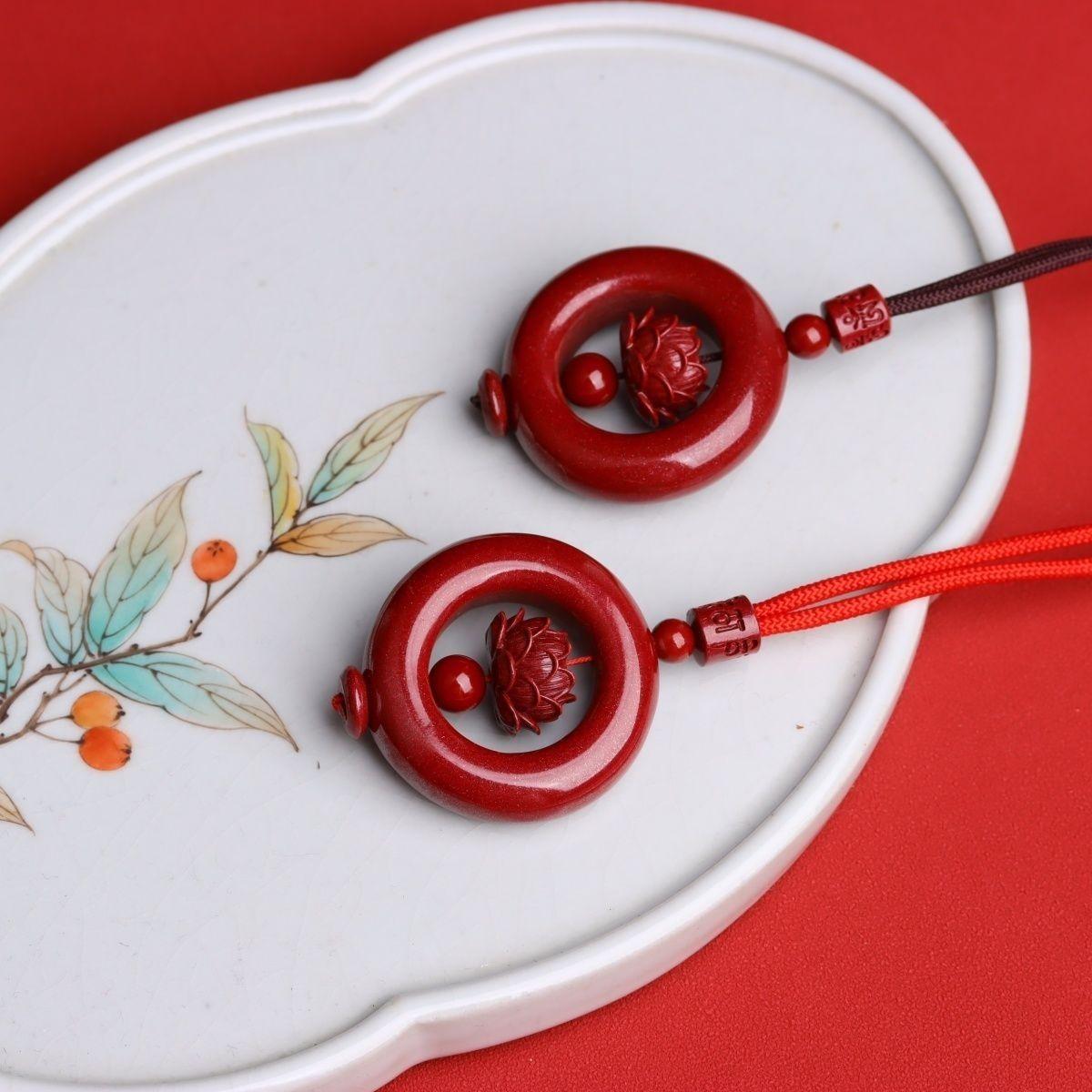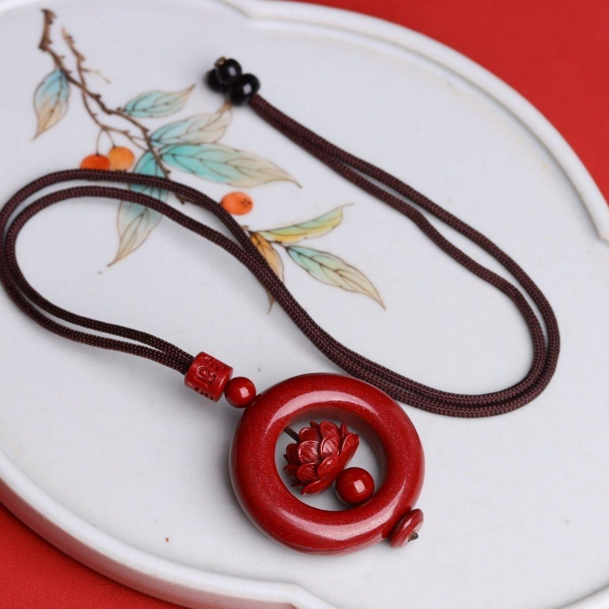 Colgante con hebilla de seguridad de loto de cinabrio natural para hombre y mujer, collar con colgante de cadena de suéter con año animal, regalo para pareja, joyería