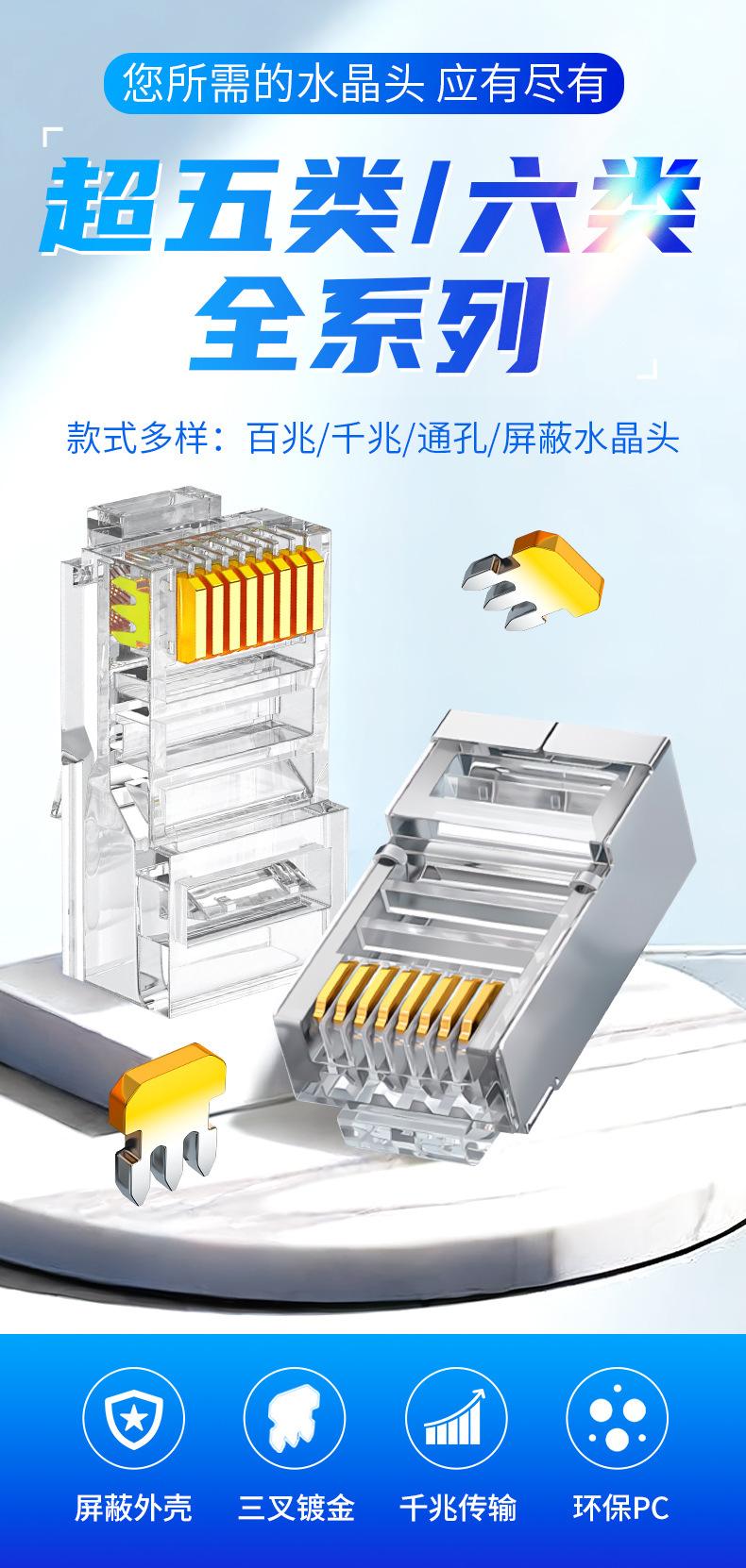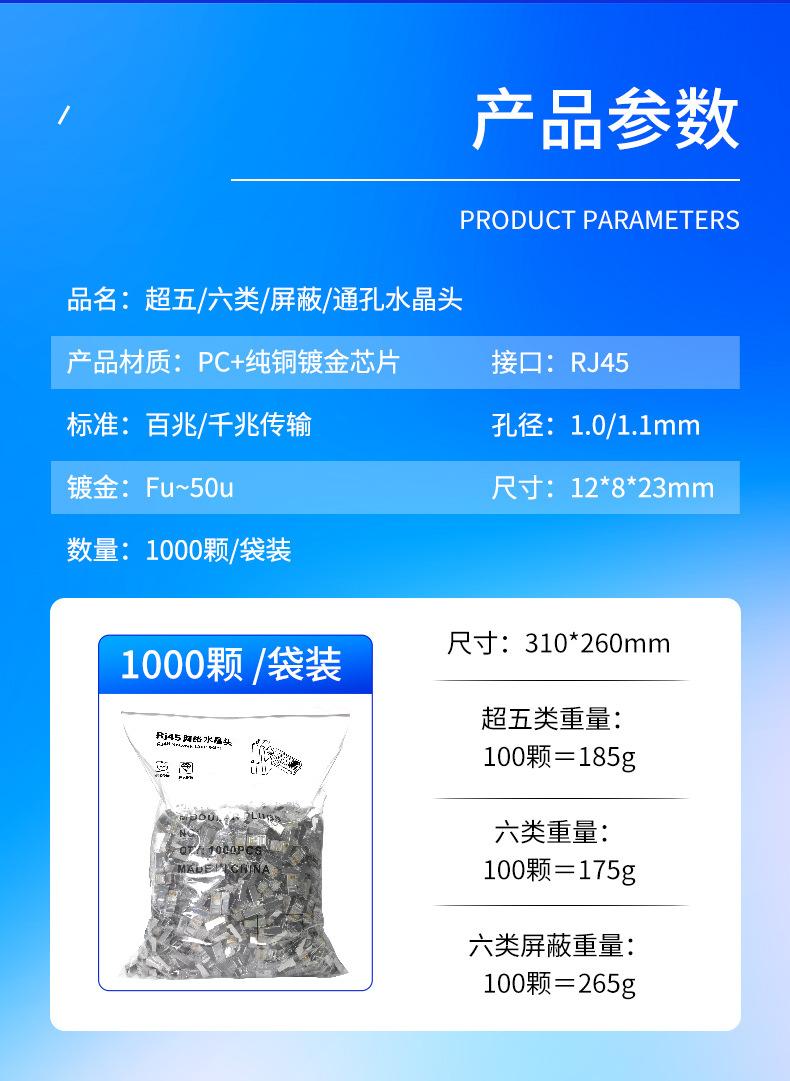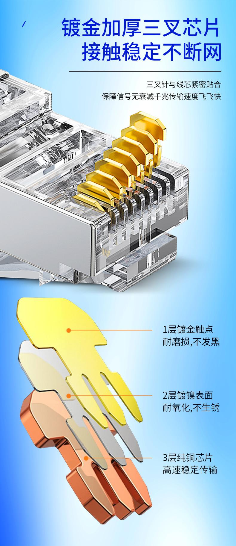 Category 5e small three-prong 0.25 pure copper chip (1000 pieces/pack), Category 5e small three-prong 0.35 pur...