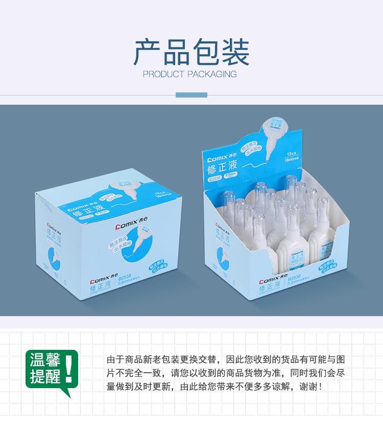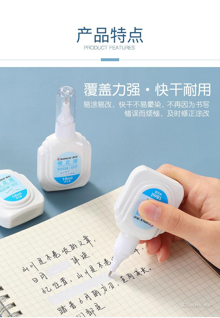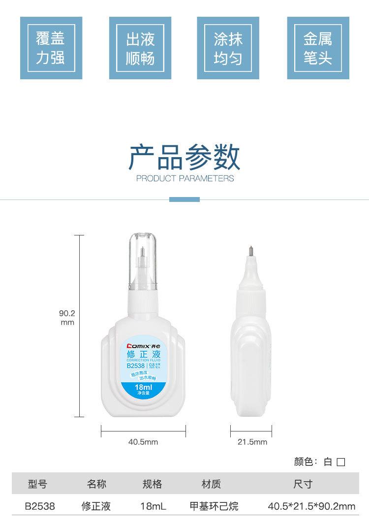 B2538 correction fluid 18ml-1 bottle, B2537 correction fluid 12ml-1 bottle, B2536 correction fluid 8ml-1 bottle